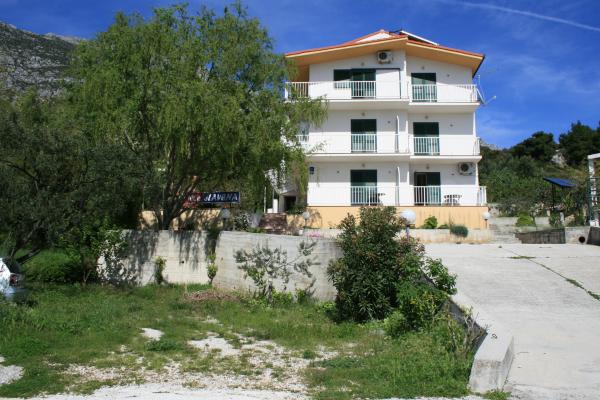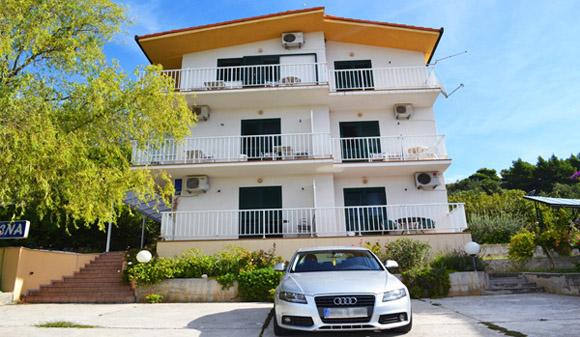 Vila Slavena este situată într-o parte turistică liniștită din Gradac, la 5 minute de mers pe jos de plajă, centru, restaurante și alte facilități necesare pentru o vacanță activă de vară. . Casa este formată din 7 apartamente de studio, dintre care 1 duble, 4 triple, 2 cvadruple, iar în partea de sus a casei există un apartament mare pentru 6-10 persoane cu 3 dormitoare separate, 2 toalete, bucătărie și un balcon în jurul apartamentului cu frumoasa vedere la mare. Acest apartament are, de asemenea, o mașină de spălat și o mașină de spălat vase. Apartamentele sunt echipate complet și modern. Fiecare apartament are aer condiționat, internet Wi-Fi, TV-sat. antenă. În plus față de conținutul apartamentului, oaspeții au la dispoziție utilizarea curții pentru cinele și socializarea în aer liber în fața casei și utilizarea șemineelor, iar în fața casei parcare privată numai pentru oaspeți.