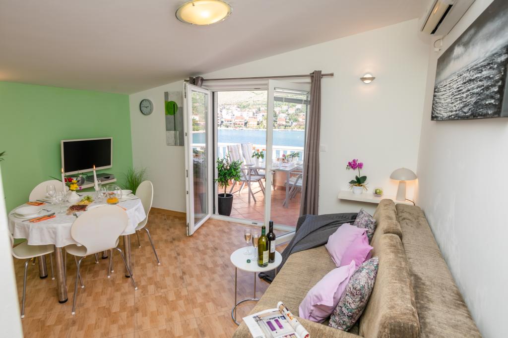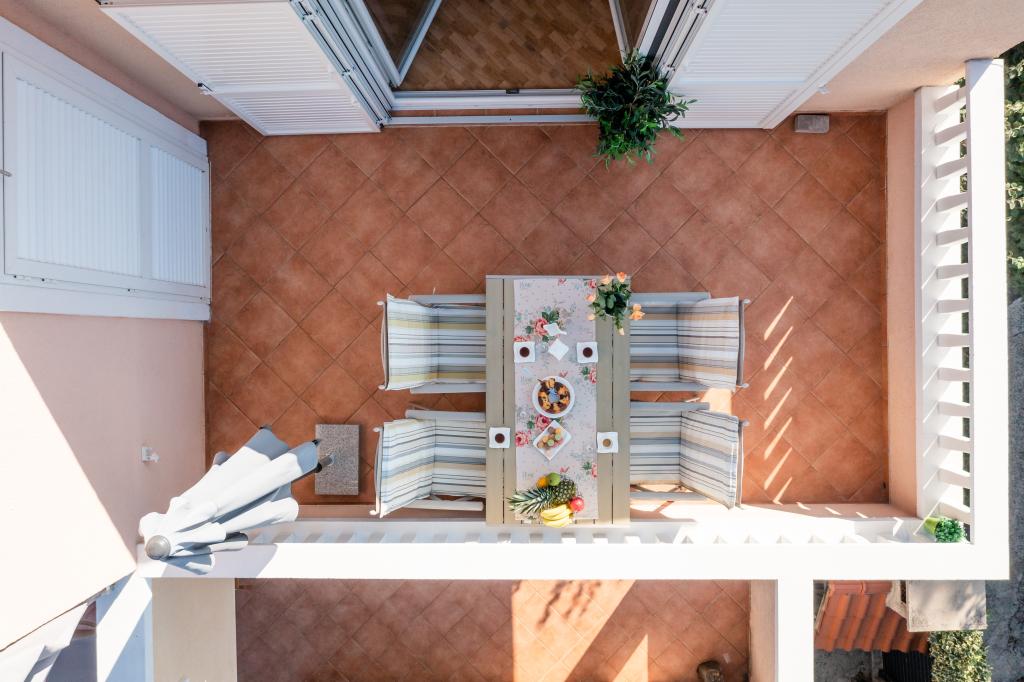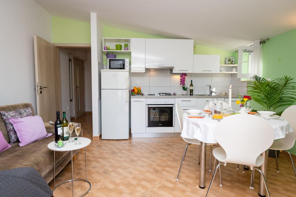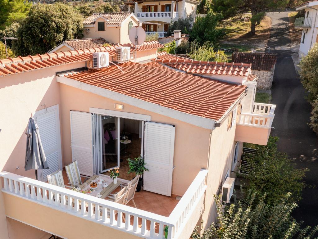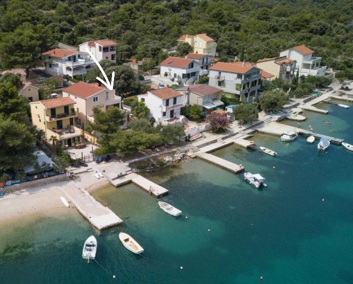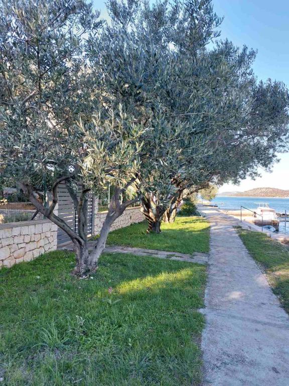 Proprietatea este situată în primul rând la mare, sub dealul Jelinjak, pe partea de sud a unui golf lung și frumos, între așezările Grebaštica și Šparadić. Aceste așezări sunt conectate prin drumul principal, precum și printr-o potecă bine întreținută de-a lungul mării, potrivită pentru plimbări, jogging și ciclism. Proprietatea este construită recent. Apartamentul are o terasă cu vedere la mare și la așezarea Grebaštica. Plaja este din beton și pietriș, cu locuri la umbra măslinilor.