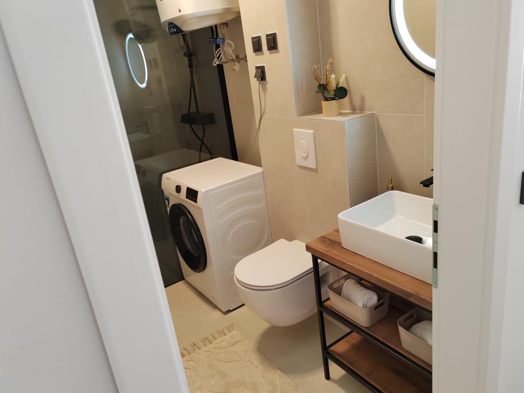 Apartament complet mobilat intr-un bloc nou la doar 20 m de plaja. Suntem la o plimbare de 5 minute de centru. Aproape de magazine, restaurante și cafenele. Pe plajă, un bar pe plajă cu șezlonguri, umbră naturală și un parc acvatic. Imobilul dispune de parcare proprie chiar in fata terasei.