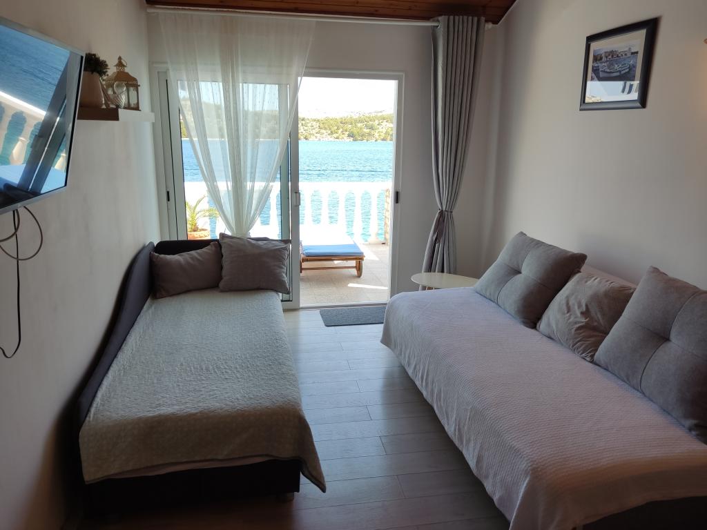 O casă cu trei apartamente este de închiriat într-o locație excelentă, la 7 m de plajă, în liniștitul oraș turistic Šparadić. Două apartamente au propriile terase spațioase cu o vedere frumoasă la mare, iar apartamentul de la parter are o curte împrejmuită. Oaspeții au, de asemenea, o terasă mare deasupra mării, cu grătar și două mese de grădină, unde pot petrece timpul împreună la umbra smochinilor și a viței de vie. Proprietarii nu locuiesc în casă. Toate apartamentele au aer condiționat, parcare gratuită, TV, WiFi, șezlonguri și umbrele gratuite pe plajă și pe terase. Există un loc de acostare pentru bărci în fața casei. Un loc ideal pentru vacanța în familie. Bine ați venit.