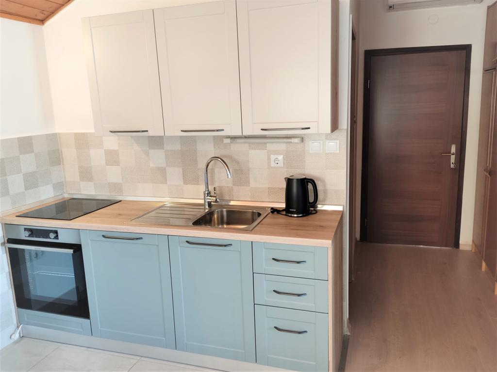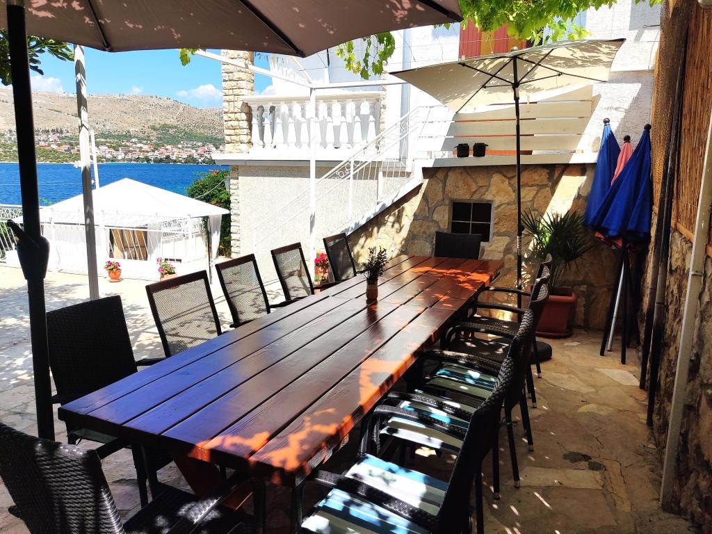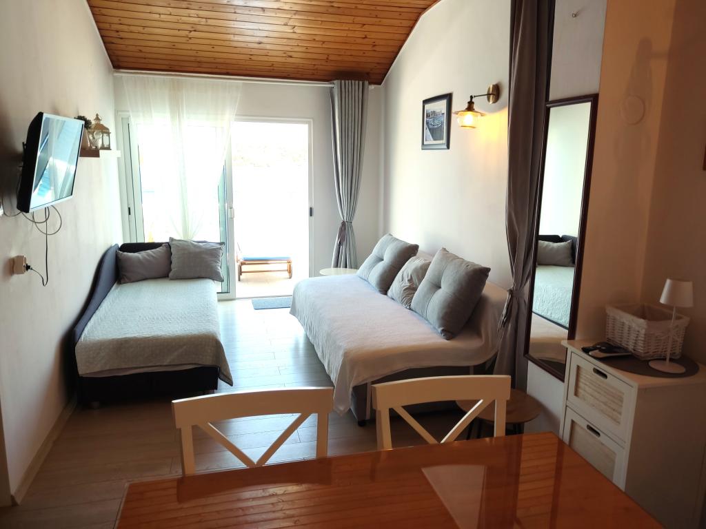 Casa se află într-o locație super - la câțiva metri de mare. Eram familii de copaci - toată casa era a noastră. Aveam propriul nostru litoral, șezlonguri, umbrele, o curte mare și cu bucătărie exterioară - toate erau incluse în prețul acestor apartamente. Totul a fost curat, spațiu suficient. Proprietarul a fost incredibil și de mare ajutor. Ne-a întâlnit cu băuturi reci de bun venit, locuri recomandate pentru a lua cina. Înainte de călătoria noastră a trimis fotografii cu apă, plajă pentru copii etc. ce am cerut. În acest loc nu sunt magazine, dar în fiecare zi sunt localnici, care aduceau pâine, înghețată și legume în fiecare dimineață.