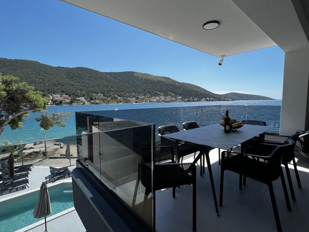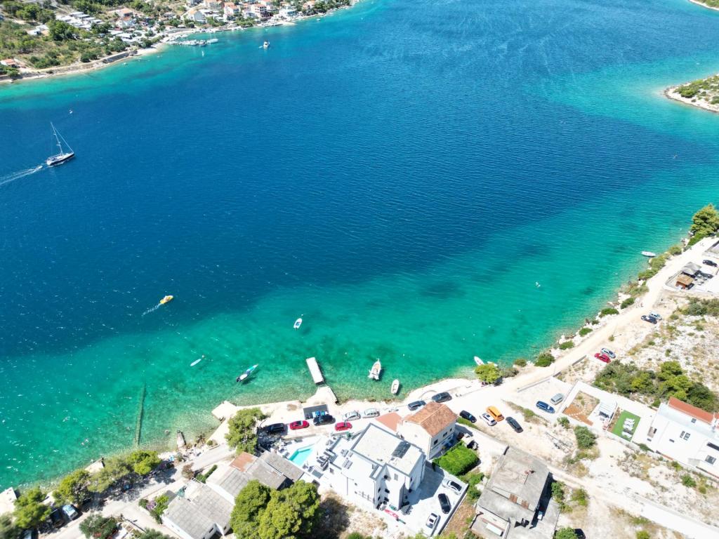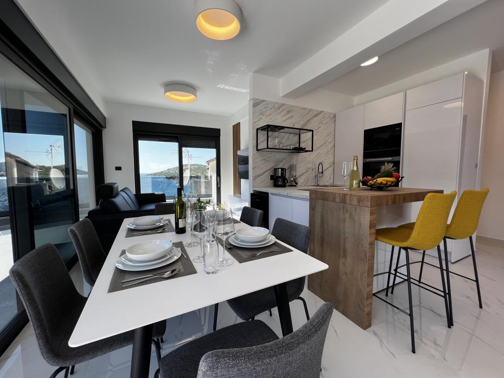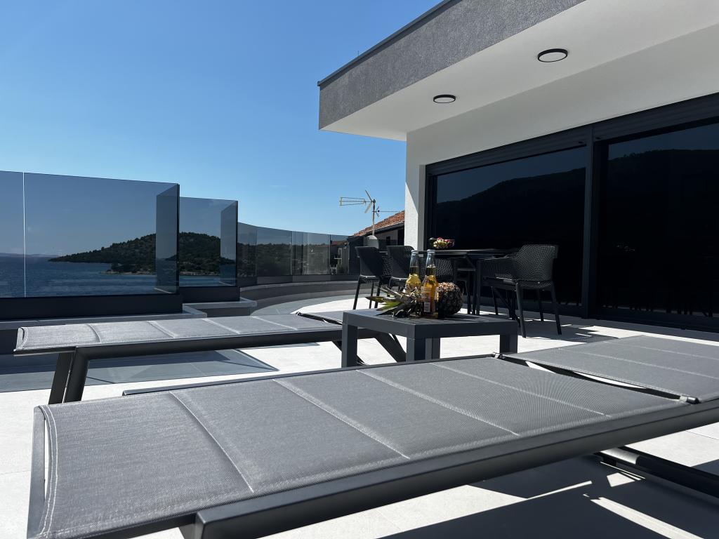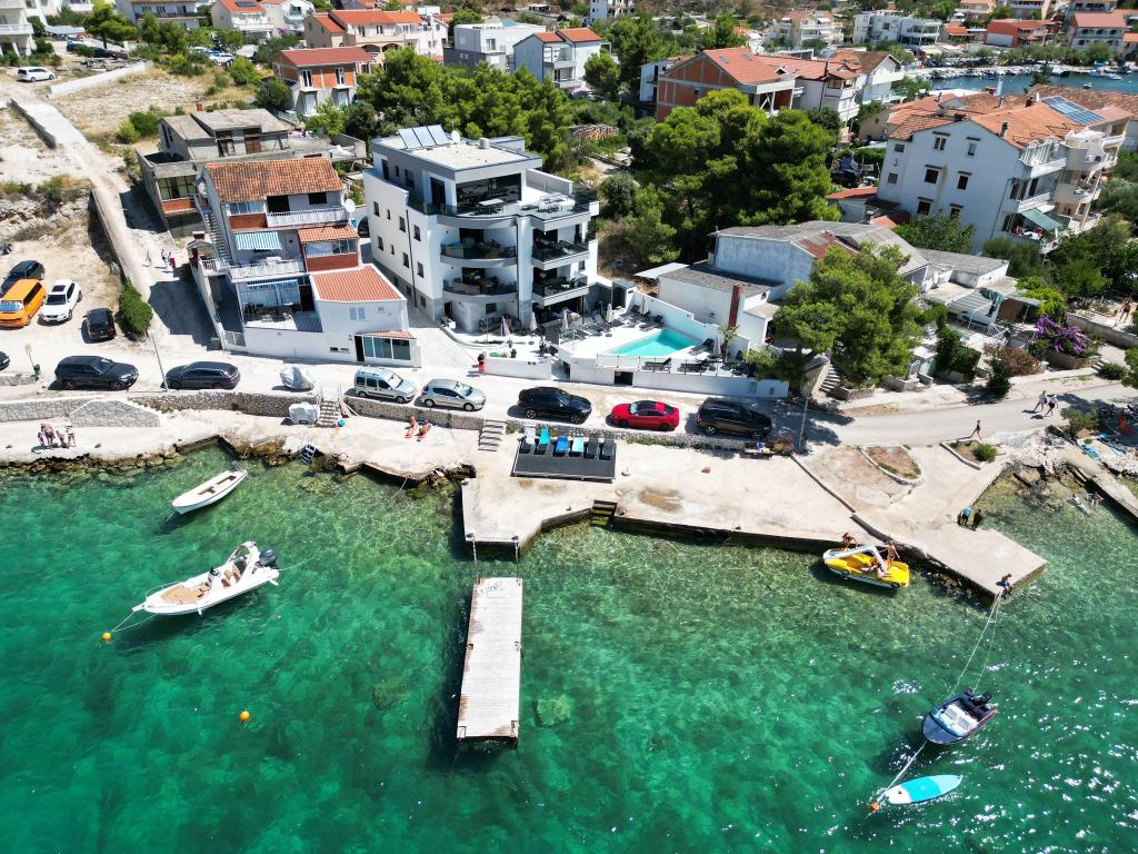 Villa White Pearl este situată chiar pe plajă, în golful liniștit Grebaštica, la doar 15 minute de orașul istoric Šibenik, care este protejat de UNESCO. Vila a fost construita in anul 2023 si contine 6 apartamente de lux cu o capacitate totala de cazare de 28 de paturi. Fiecare apartament este echipat cu mobilier de înaltă calitate de la mărci renumite și include WiFi gratuit și TV prin satelit. Pe lângă apartamente, toți oaspeții noștri au la dispoziție o piscină exterioară încălzită sezonier cu hidromasaje, șezlonguri pe plajă, echipamente pentru grătar și parcare privată fără costuri suplimentare. Balcoanele apartamentelor oferă, de asemenea, o vedere frumoasă la mare și la piscină. La doar câțiva pași de proprietate se află frumoasa plajă Banovci, magazine, restaurante, baruri și alte facilități necesare unei vacanțe perfecte în familie. Vă recomandăm cu siguranță să vă folosiți șederea în apartamentul nostru pentru a explora numeroasele atracții din împrejurimile noastre și pentru a vă aminti amintiri de neuitat din vacanța dumneavoastră.