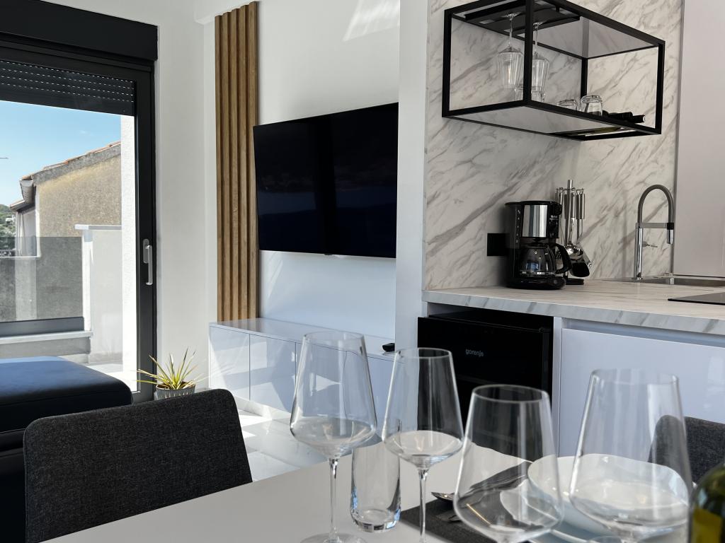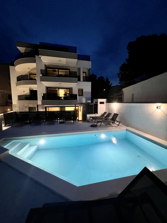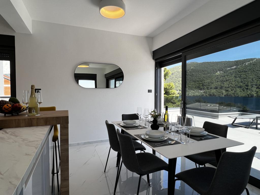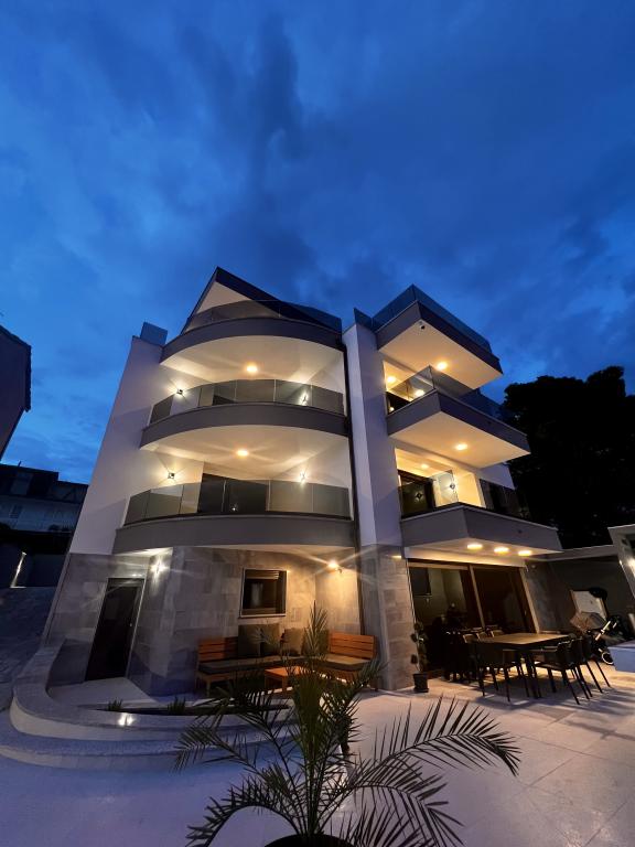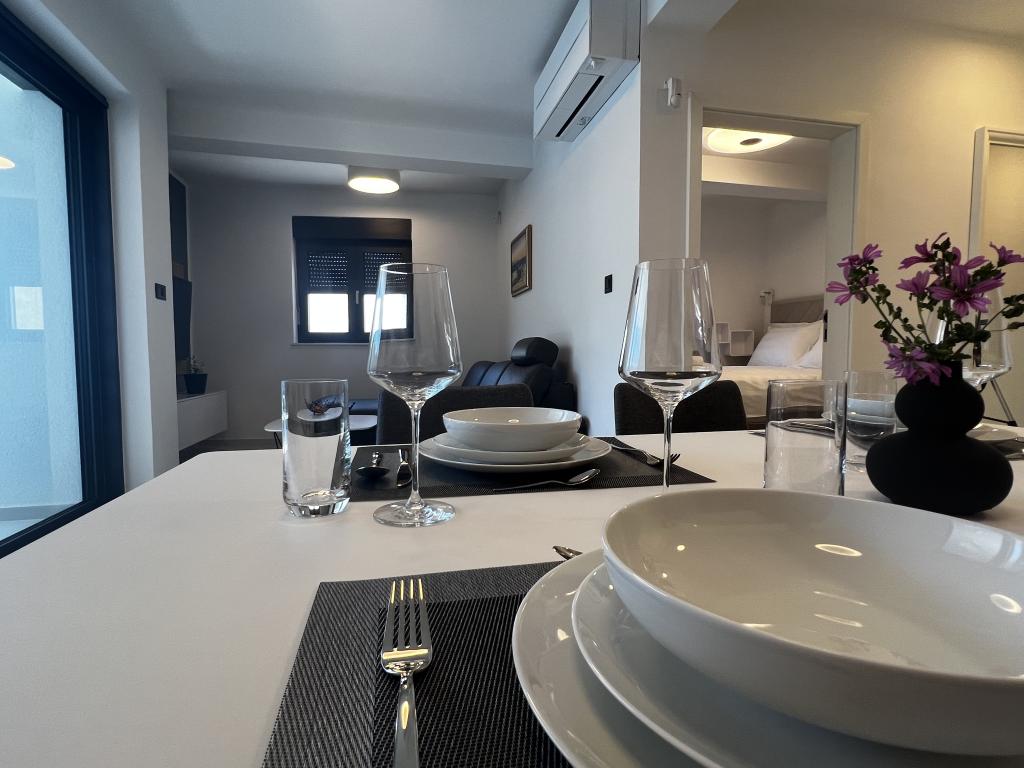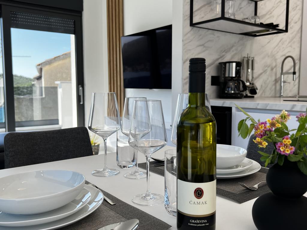 Villa White Pearl este situată chiar pe plajă, în golful liniștit Grebaštica, la doar 15 minute de orașul istoric Šibenik, care este protejat de UNESCO. Vila a fost construita in anul 2023 si contine 6 apartamente de lux cu o capacitate totala de cazare de 28 de paturi. Fiecare apartament este echipat cu mobilier de înaltă calitate de la mărci renumite și include WiFi gratuit și TV prin satelit. Pe lângă apartamente, toți oaspeții noștri au la dispoziție o piscină exterioară încălzită sezonier cu hidromasaje, șezlonguri pe plajă, echipamente pentru grătar și parcare privată fără costuri suplimentare. Balcoanele apartamentelor oferă, de asemenea, o vedere frumoasă la mare și la piscină. La doar câțiva pași de proprietate se află frumoasa plajă Banovci, magazine, restaurante, baruri și alte facilități necesare unei vacanțe perfecte în familie. Vă recomandăm cu siguranță să vă folosiți șederea în apartamentul nostru pentru a explora numeroasele atracții din împrejurimile noastre și pentru a vă aminti amintiri de neuitat din vacanța dumneavoastră.
