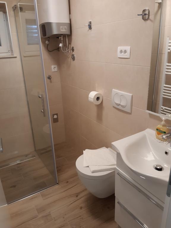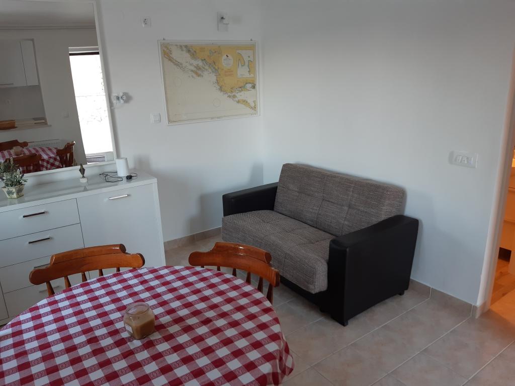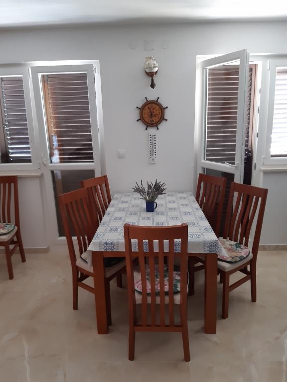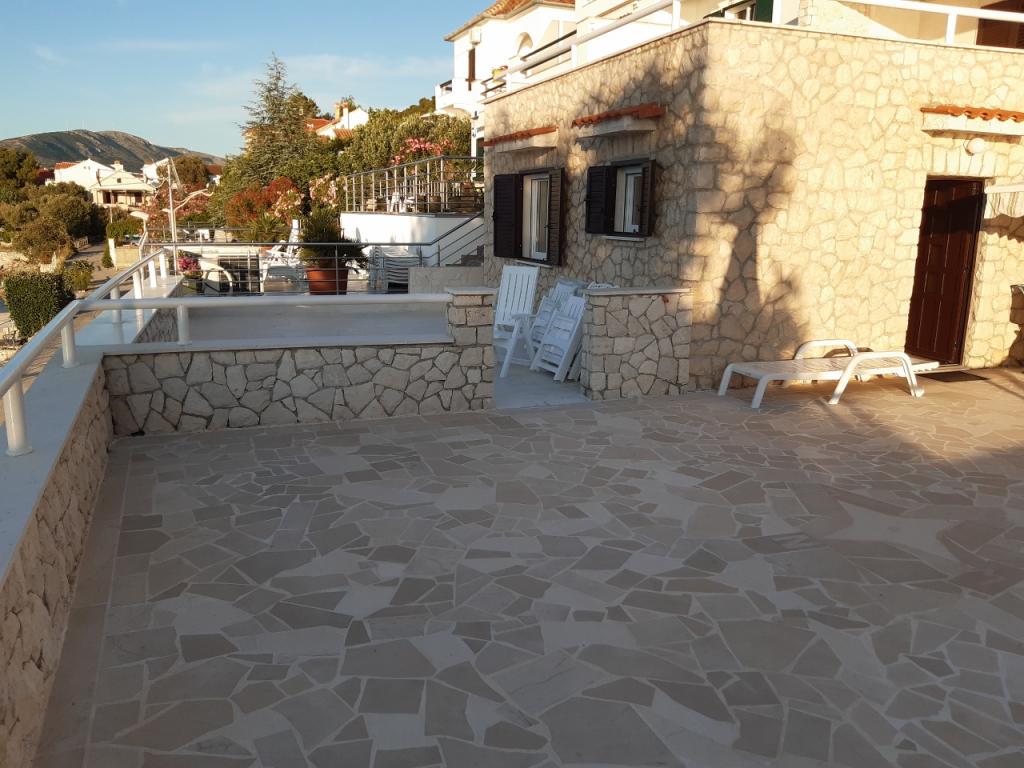 Taxa de rezidenta este inclusa in pret.Deși apartamentul inferior (A4) este cel mai mic și nu poate obține mai multe stele în clasificare, este preferatul oaspeților și toată lumea rămâne pe terasa (100 de metri pătrați) a apartamentului inferior în timpul zilei. Apartamentul are un TV cu filme și canale sportive, aer condiționat, internet și mașină de spălat, bucătărie, baie și două dormitoare pentru 4 persoane. Apartamentul superior (A8) pentru 8 persoane cu aer condiționat și internet este împărțit în două unități, inferior și superior. Unitatea inferioară are o terasă mare (45 mp), TV cu filme și canale sportive. mașină de spălat, baie, bucătărie și cameră cu două paturi, iar unitatea superioară are trei dormitoare pentru 6 persoane, bucătărie și baie și un balcon mare (16 mp) cu vedere la mare.