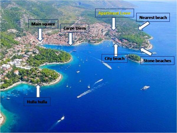 Apartamentele recent mobilate sunt situate într-o casă de familie într-o parte liniștită din Hvar, la 20 de minute de mers pe jos de orașul vechi. A1 (4 persoane) se află la etajul 1 cu o terasă mare cu vedere la mare și oferă un apus minunat. A2 (4 persoane) se află la parter într-o curte împrejmuită, cu posibilitatea de a sta în fața ei. Fiecare apartament are un dormitor și un pat extrabil în camera de zi. Parcarea este gratuită, la fel și serviciul WiFi. Cea mai apropiată plajă cu pietricele naturale se află în golf, la 200 de metri distanță și se poate ajunge pe jos. A doua plajă din oraș, pietricică și stâncoasă, se află la 10 minute de mers pe jos. Cazarea este potrivită pentru vacanțe în familie, este în siguranță pentru copii (gard), iar o companie de până la 8 persoane este binevenită. Puteți ajunge la Hvar cu catamaranul direct din Split (1 oră de mers cu mașina) sau cu feribotul (2 ore de mers cu mașina) prin Orașul Vechi de la care se află un autobuz local (20 de minute cu mașina) până în centrul orașului Hvar. Cel mai apropiat aeroport este în Split. Catamaranii merg și în Korcula, Mljet și Dubrovnik.