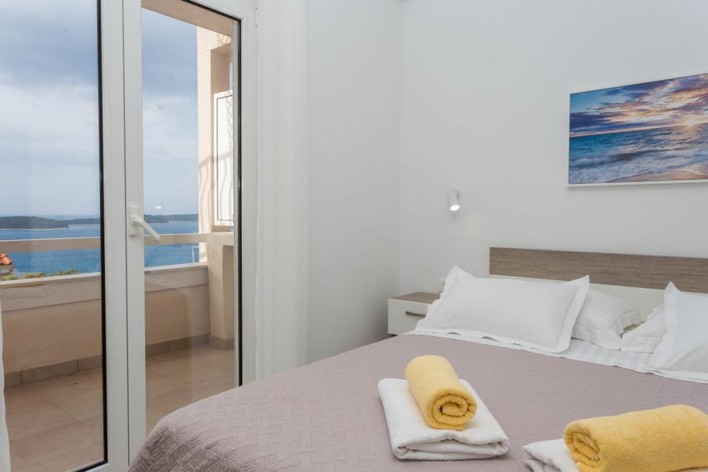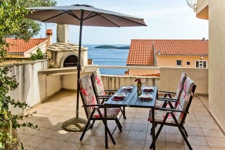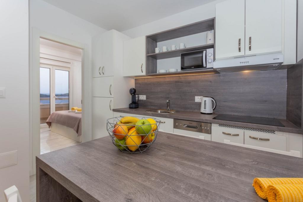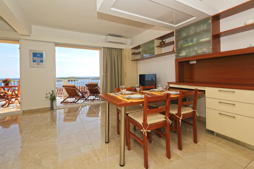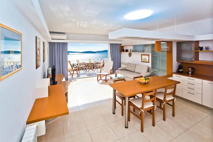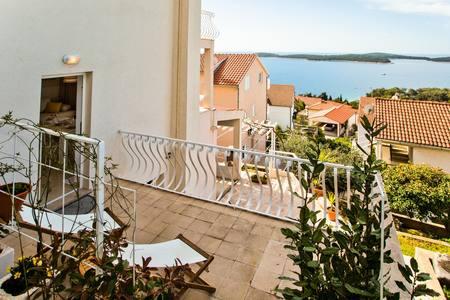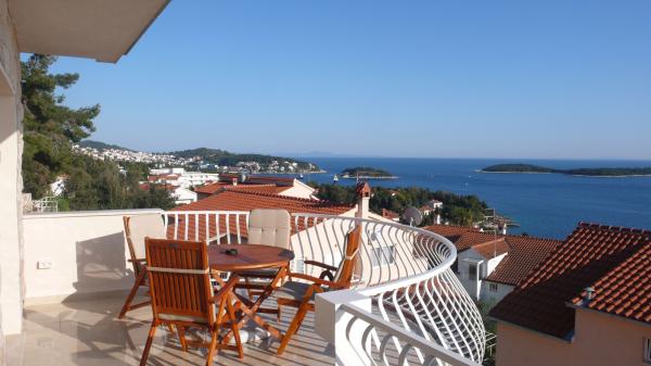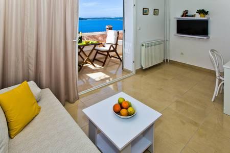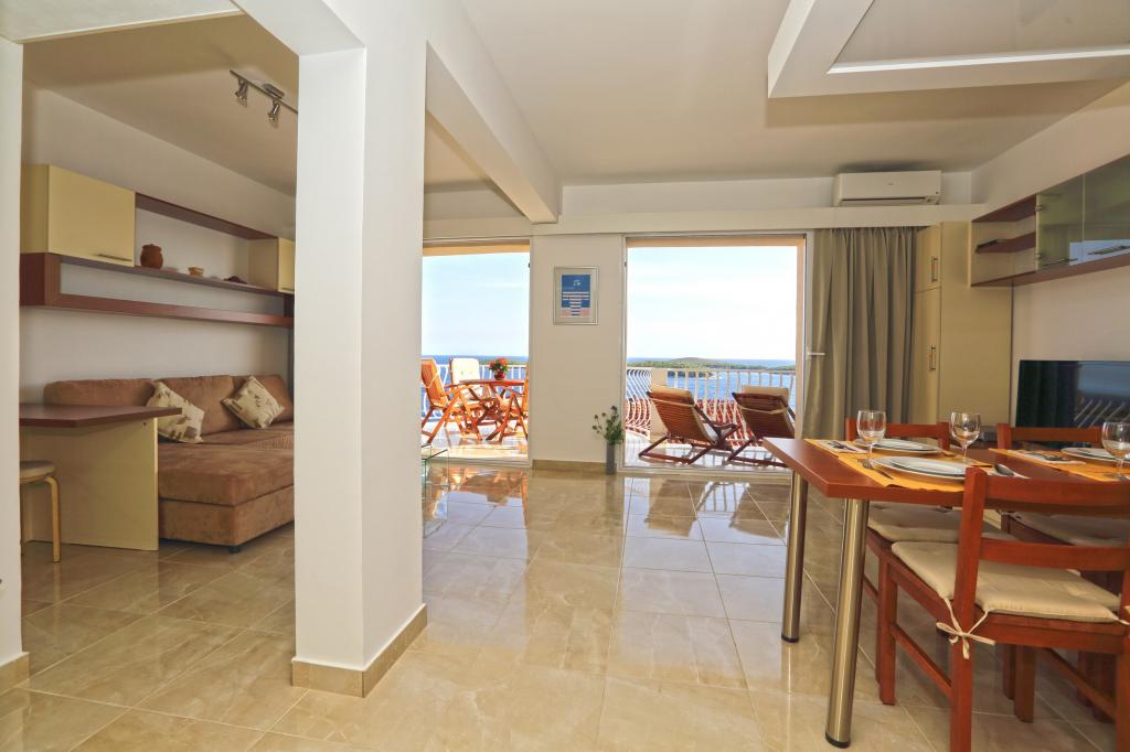 Apartamente Dominis moderne și contemporane, cu o vedere panoramică incredibilă de 180 de grade, care vă va tăia respirația. Oferim oaspeților noștri 4 apartamente moderne, complet echipate cu toate facilitățile necesare pentru o vacanță plăcută. Apartamentul Blue Peace cu 4 stele, apartamentul Blue Horizon cu 4 stele, apartamentul White cu 4 stele și apartamentul Green cu 3 stele. Apartamentele sunt dotate cu mașini de spălat sau mașini de spălat vase, televizoare prin satelit, toate sunt climatizate și au conexiune rapidă la internet wifi. Oaspeții noștri au la dispoziție parcare pentru vehiculele lor și un grătar unde își pot pregăti diverse delicatese din pește și carne. Bucurați-vă de răsărituri și apusuri de soare de pe terasele noastre spațioase în compania celor dragi, ascultând doar sunetul mării, iar când simțiți că doriți să părăsiți agitația orașului, o plimbare plăcută vă va duce în centrul orașului în doar 15 minute. În zilele fierbinți de vară, căutați răcorire în marea limpede de pe plajele aflate la doar 5 minute de mers pe jos de casa noastră. BINE AȚI VENIT!!!