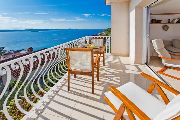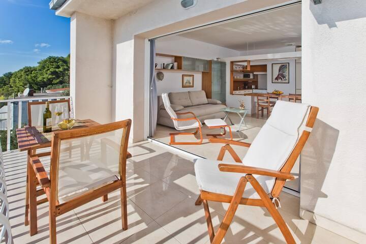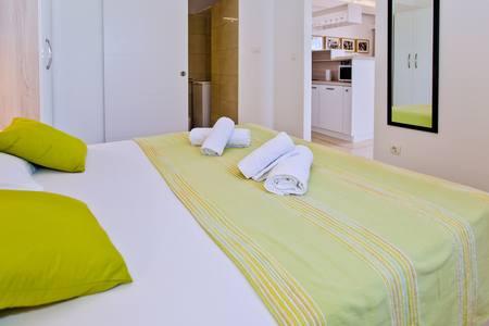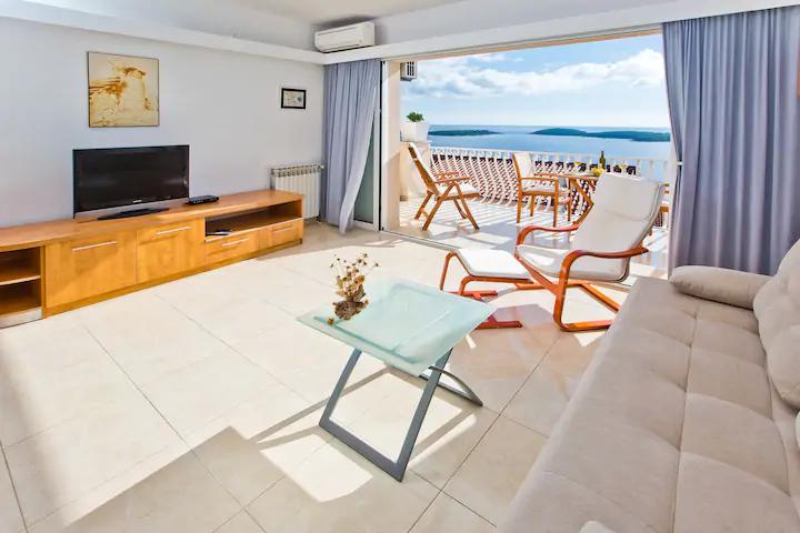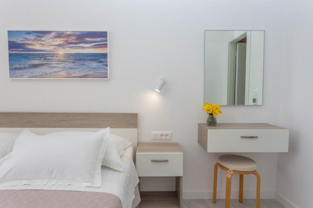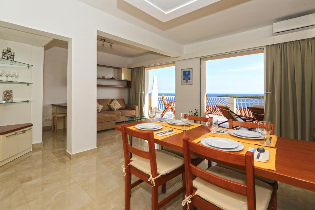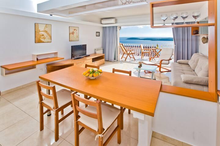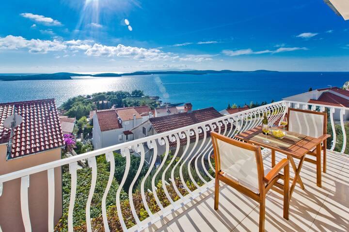 Apartamente Dominis moderne și contemporane, cu o vedere panoramică incredibilă de 180 de grade, care vă va tăia respirația. Oferim oaspeților noștri 4 apartamente moderne, complet echipate cu toate facilitățile necesare pentru o vacanță plăcută. Apartamentul Blue Peace cu 4 stele, apartamentul Blue Horizon cu 4 stele, apartamentul White cu 4 stele și apartamentul Green cu 3 stele. Apartamentele sunt dotate cu mașini de spălat sau mașini de spălat vase, televizoare prin satelit, toate sunt climatizate și au conexiune rapidă la internet wifi. Oaspeții noștri au la dispoziție parcare pentru vehiculele lor și un grătar unde își pot pregăti diverse delicatese din pește și carne. Bucurați-vă de răsărituri și apusuri de soare de pe terasele noastre spațioase în compania celor dragi, ascultând doar sunetul mării, iar când simțiți că doriți să părăsiți agitația orașului, o plimbare plăcută vă va duce în centrul orașului în doar 15 minute. În zilele fierbinți de vară, căutați răcorire în marea limpede de pe plajele aflate la doar 5 minute de mers pe jos de casa noastră. BINE AȚI VENIT!!!