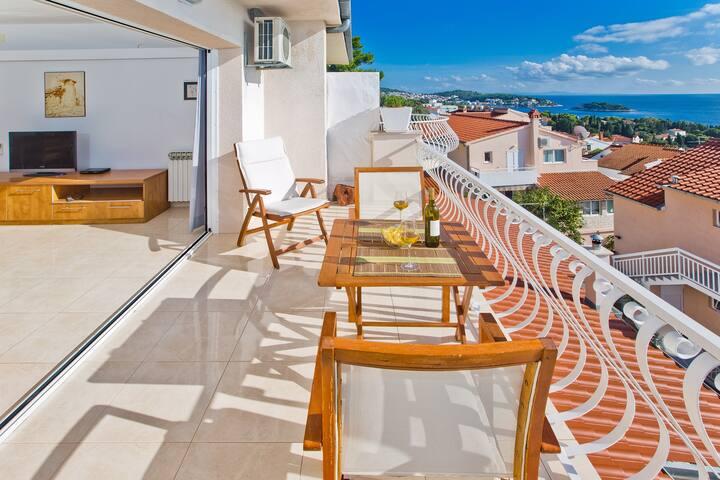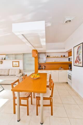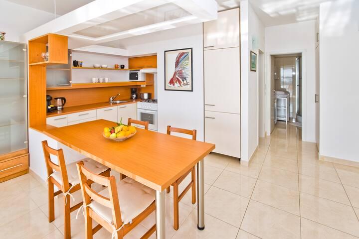 Apartament spațios frumos, bine echipat, terasă mare cu grătar și vedere frumoasă la mare. Cartier liniștit, iar gazda este foarte amabilă și întotdeauna la dispoziția dumneavoastră.