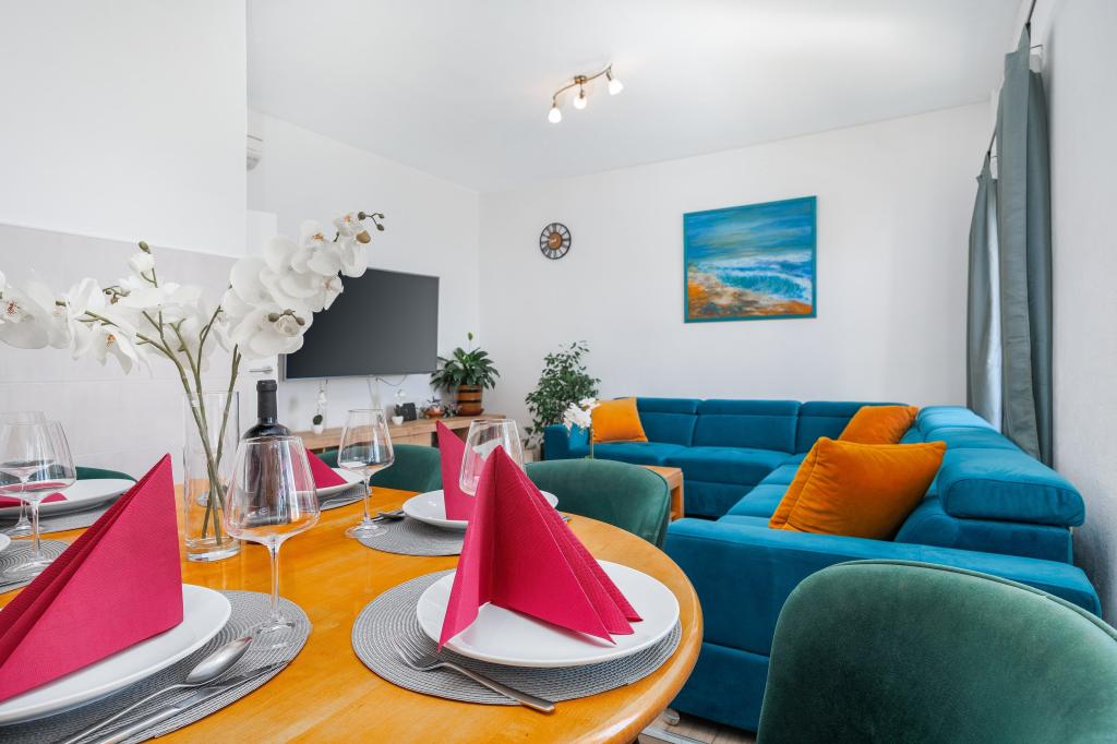 Taxa de rezidenta este inclusa in pret. Document de confirmare a rezervării la rezervareAm petrecut o vacanță grozavă în apartamentul A8 la cumpăna lunilor iunie și iulie 2022. Până la plajă câțiva pași, unde te puteai bucura de marea limpede, fără arici de mare și poluare. Promenada este ideală pentru plimbări, aproape de o brutărie, restaurant, gelaterie etc. în spatele parcării, la vreo 300 de metri, o altă plajă frumoasă, cu un loc umbrit într-o pădure de pini. Un apartament confortabil, dotat cu ustensilele necesare pentru a facilita funcționarea (mașină de spălat, frigider suplimentar, cuptor cu microunde). Singurul dezavantaj a fost ieșirea directă în stradă (trebuie să fii atent, mai ales să faci copiii sensibili să iasă afară). Un loc grozav pentru două familii 2 + 2 sau un grup de prieteni. Seara, puteam petrece timp pe terasa, care era dotata cu mese si scaune. Datorită vegetației și acoperișului, practic nu a fost nevoie să folosim aer condiționat. Proprietarul apartamentului ne-a întâmpinat cu vin de casă. Igrane este un punct de plecare excelent, am vizitat insula Hvar, Dubrovnik, Riviera Makarska, etc. Vă mulțumim pentru timpul frumos !!! Dariusz cu prietenii
