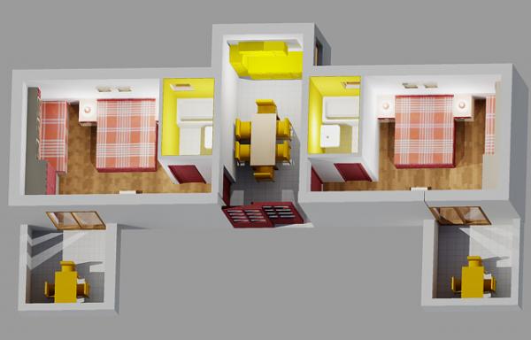 Apartament pentru patru persoane, cu două paturi suplimentare (60 m2)