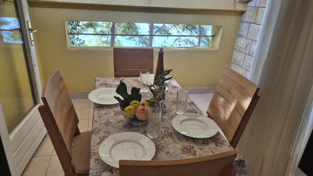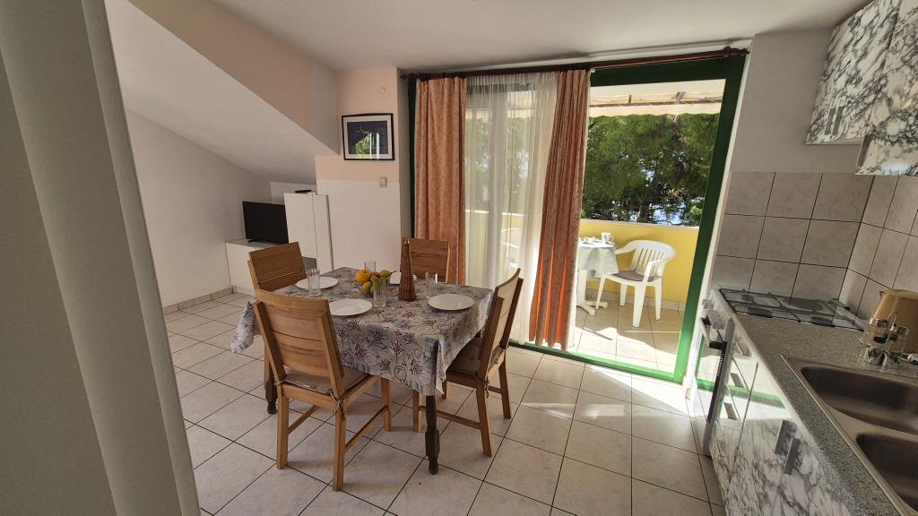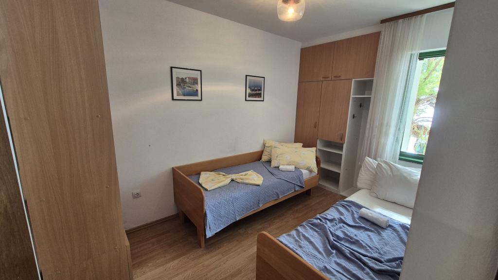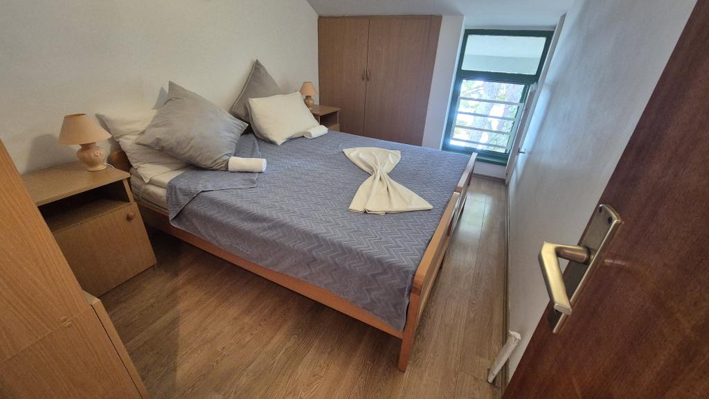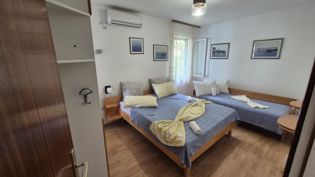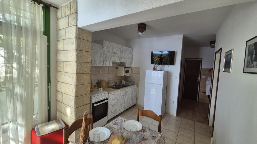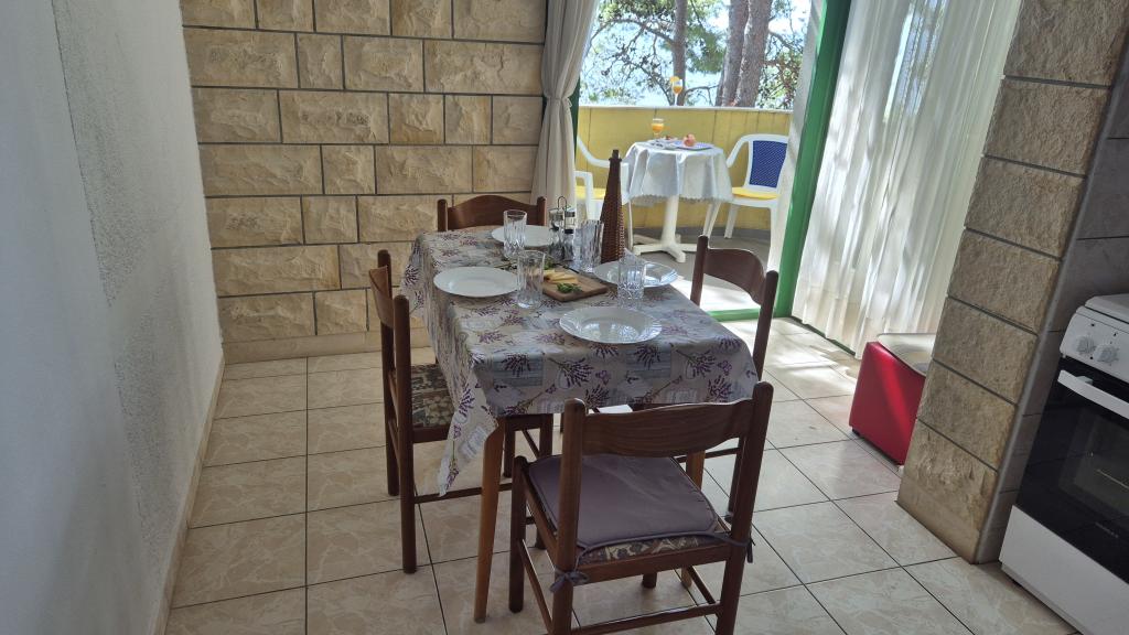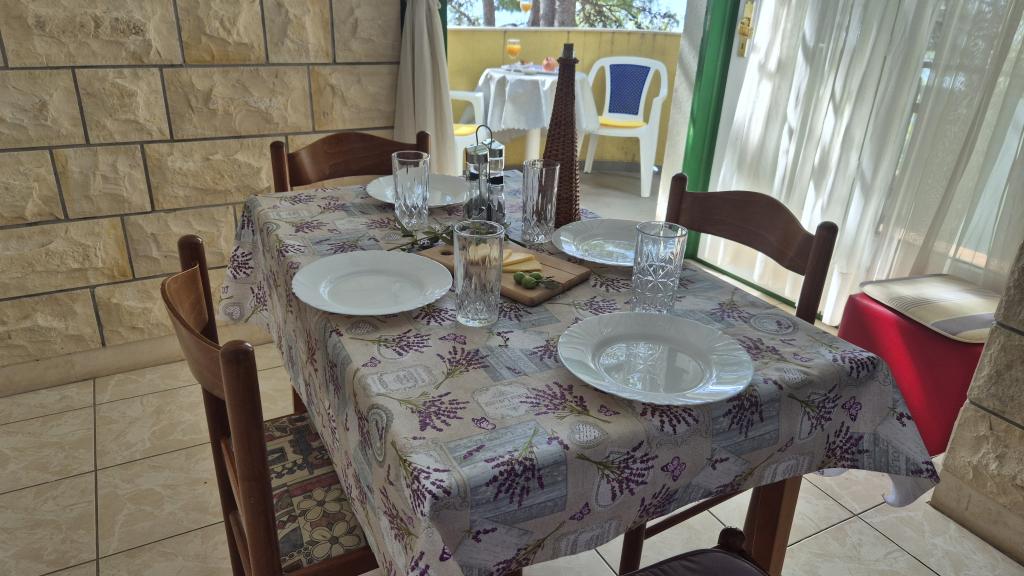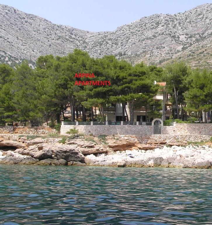 Apartamentele Arpina sunt situate într-o pădure deasă de pini, la primul rând la mare. În imediata apropiere a apartamentului se află mai multe plaje cu pietriș, în timp ce în fața casei se află o plajă de piatră la doar 10 metri. Unitatea de cazare are o curte amenajată cu șezlonguri și mese pentru oaspeți, cu vedere deschisă la mare. Parcarea și utilizarea grătarului sunt disponibile pentru oaspeți, iar la cerere, este disponibilă utilizarea unei mașini de spălat și a unui pătuț. Cazarea este formata dintr-un total de 5 apartamente, cu o capacitate totala de pana la 18 persoane. Toate apartamentele au vedere la mare, sunt dotate cu aer condiționat și bucătărie, iar internetul WI-FI este disponibil în întreaga clădire.