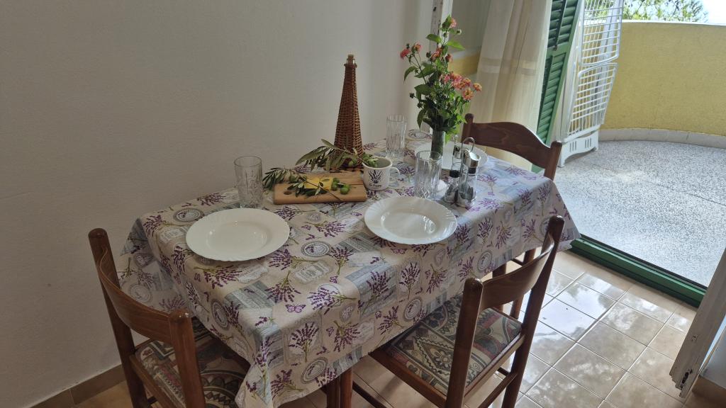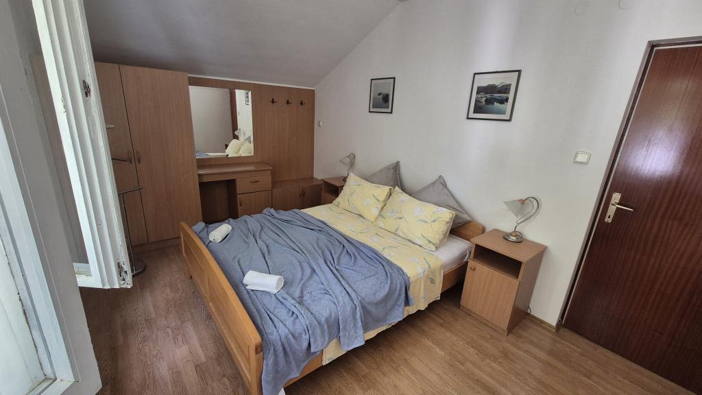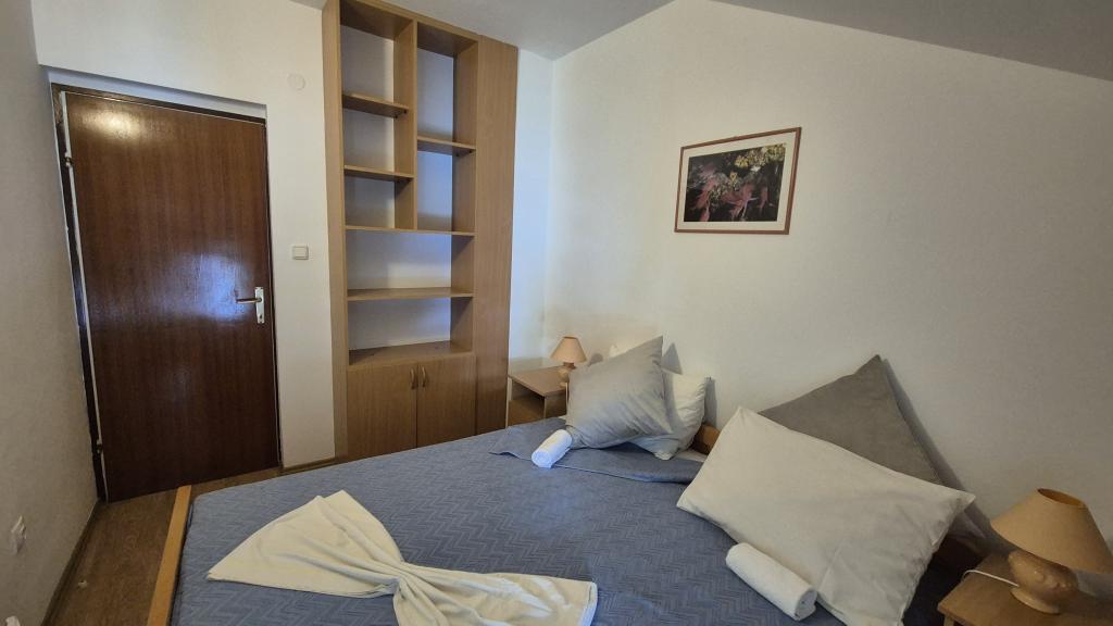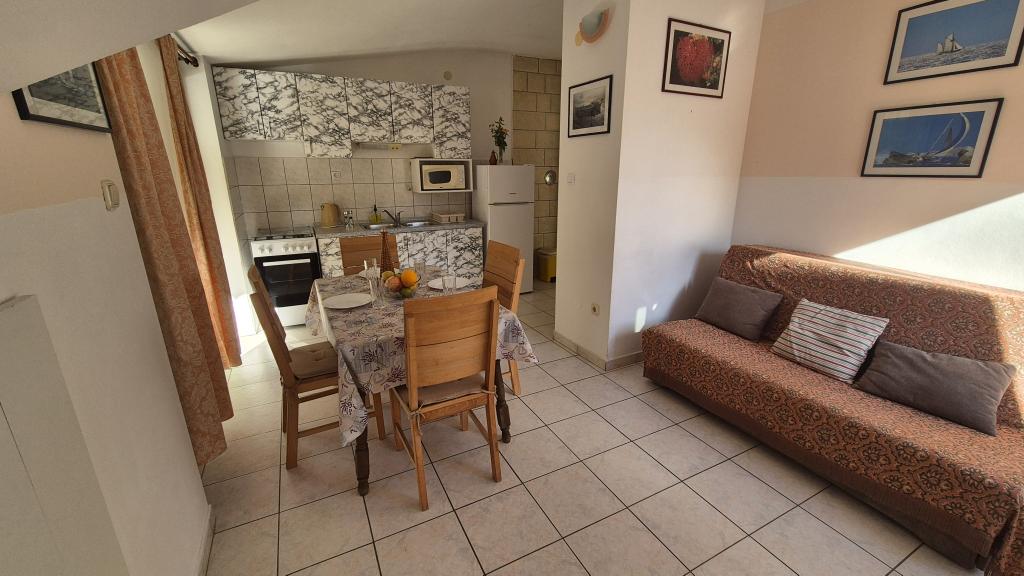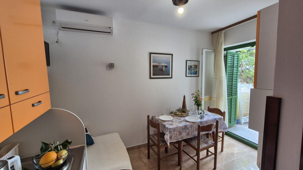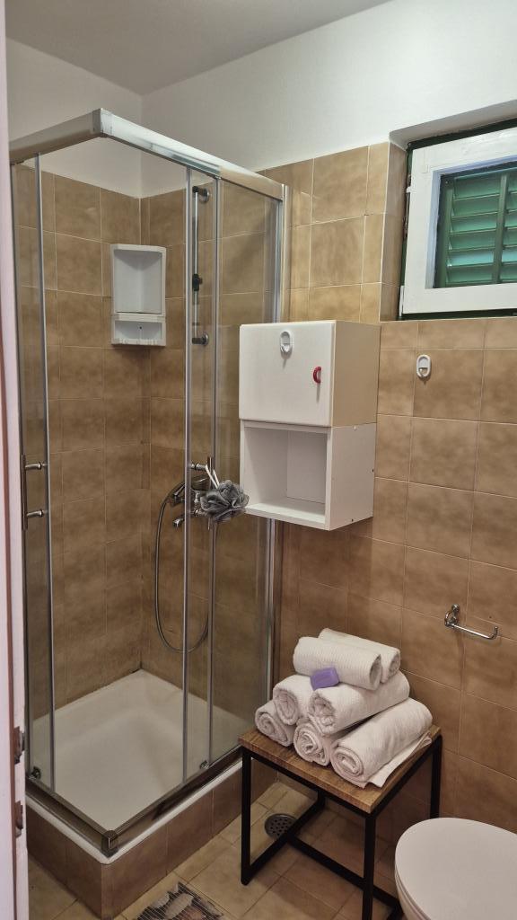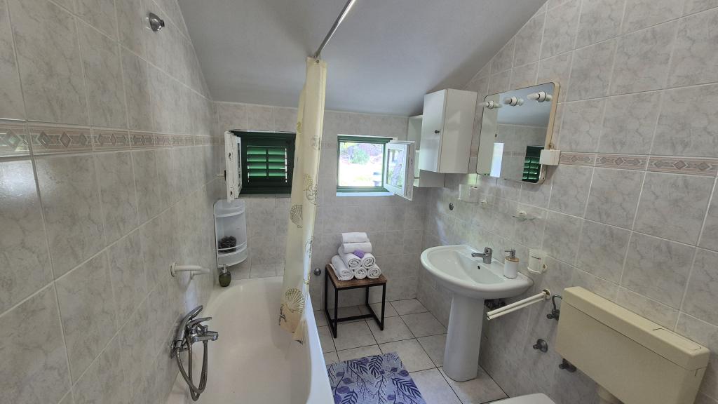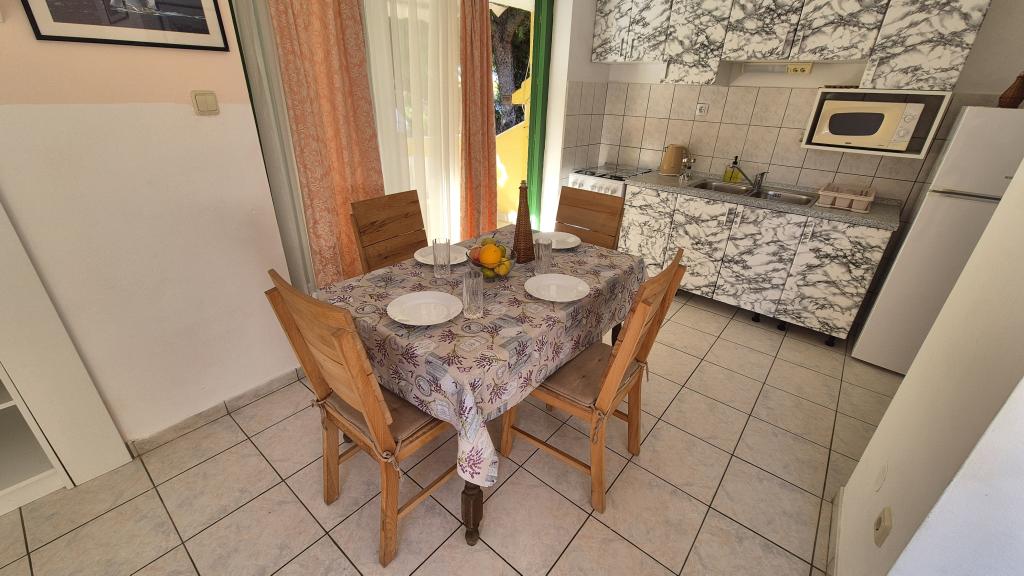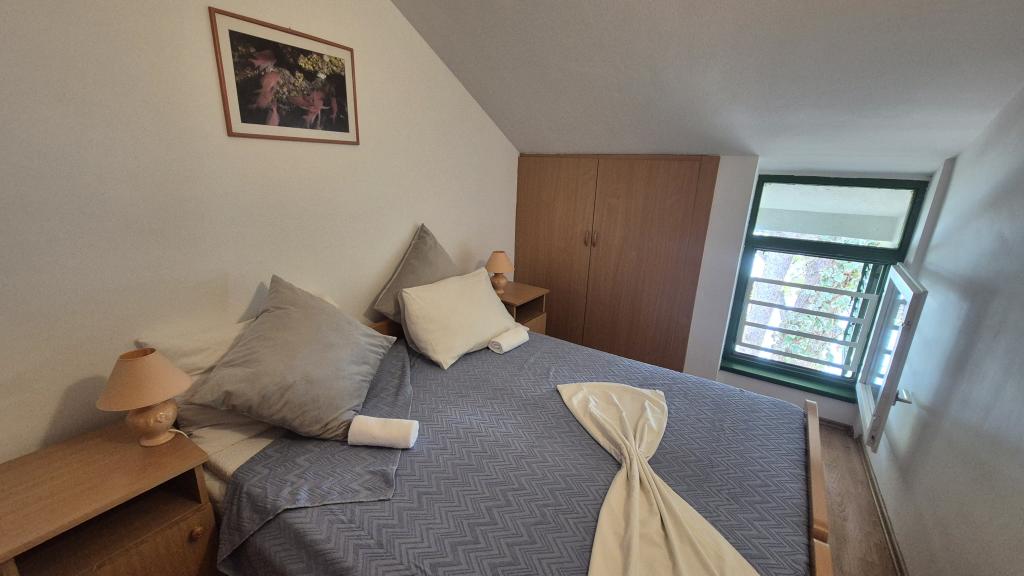 Apartamentele Arpina sunt situate într-o pădure deasă de pini, la primul rând la mare. În imediata apropiere a apartamentului se află mai multe plaje cu pietriș, în timp ce în fața casei se află o plajă de piatră la doar 10 metri. Unitatea de cazare are o curte amenajată cu șezlonguri și mese pentru oaspeți, cu vedere deschisă la mare. Parcarea și utilizarea grătarului sunt disponibile pentru oaspeți, iar la cerere, este disponibilă utilizarea unei mașini de spălat și a unui pătuț. Cazarea este formata dintr-un total de 5 apartamente, cu o capacitate totala de pana la 18 persoane. Toate apartamentele au vedere la mare, sunt dotate cu aer condiționat și bucătărie, iar internetul WI-FI este disponibil în întreaga clădire.