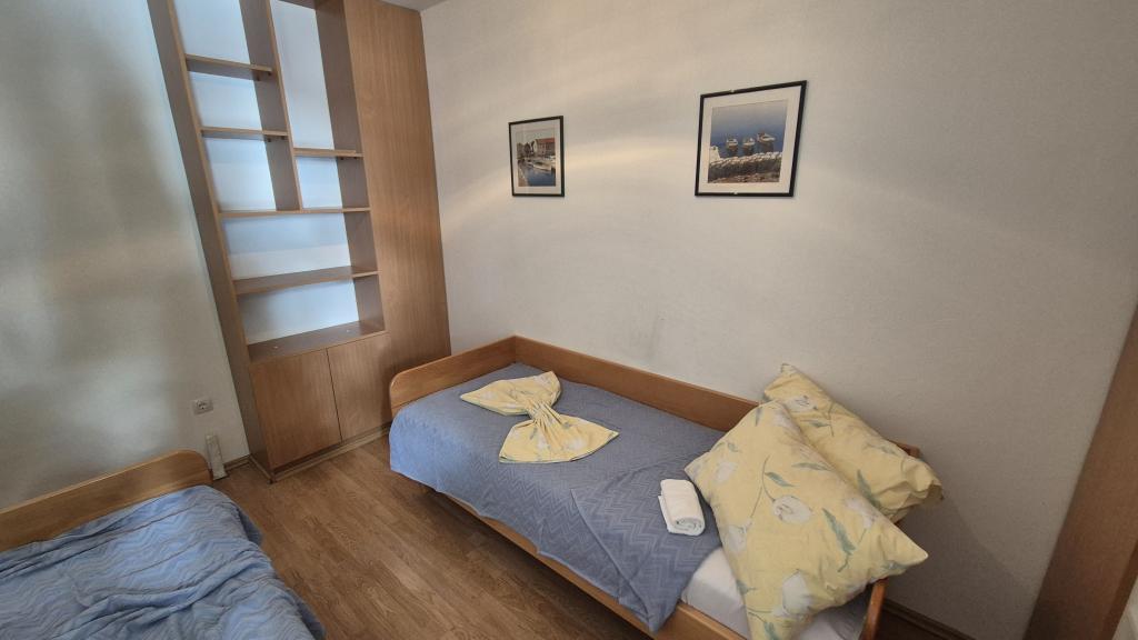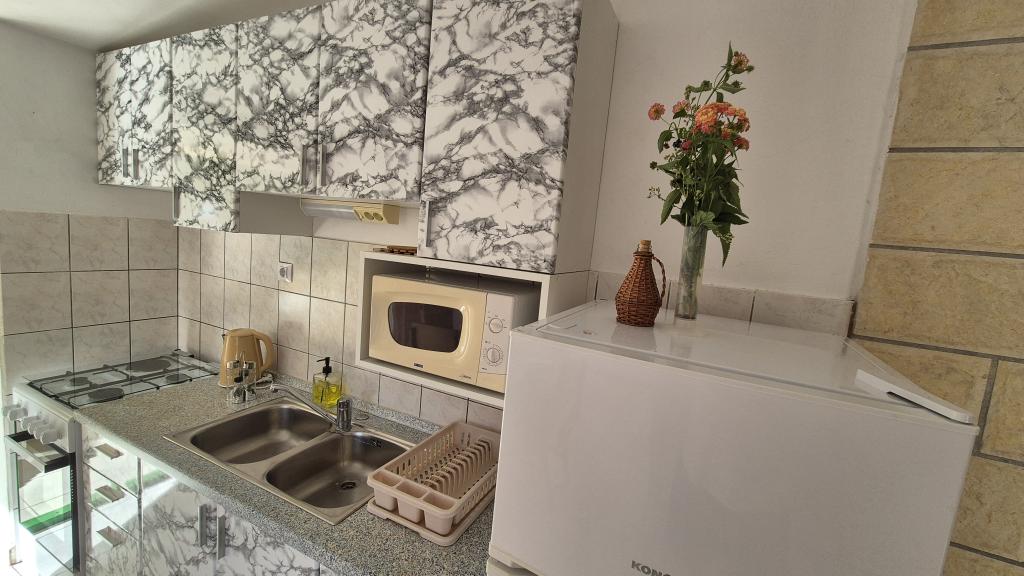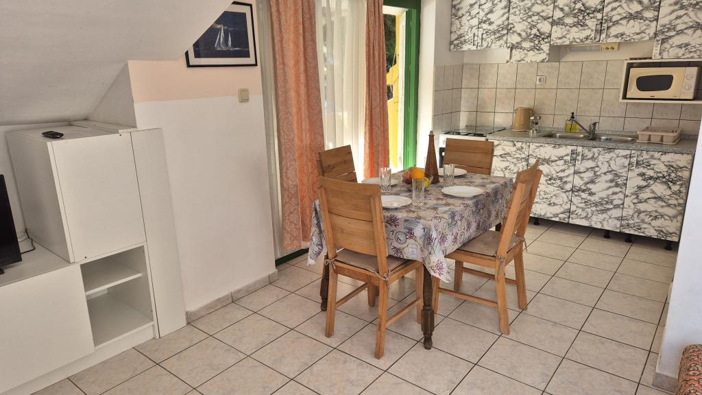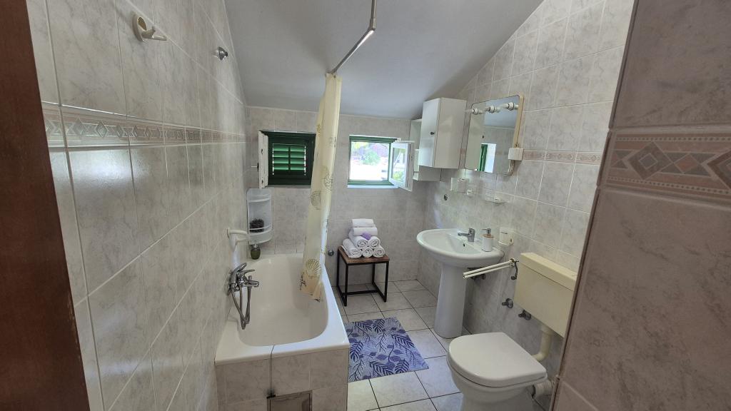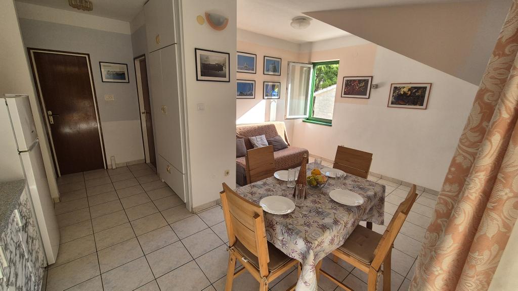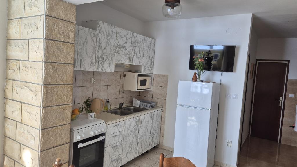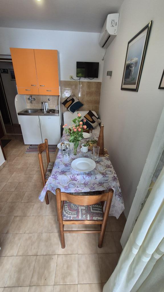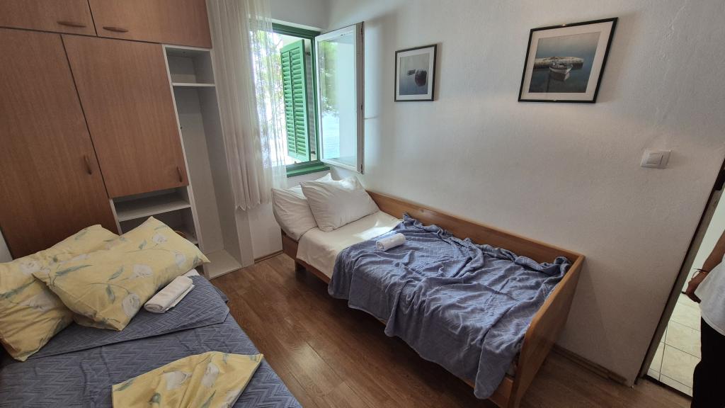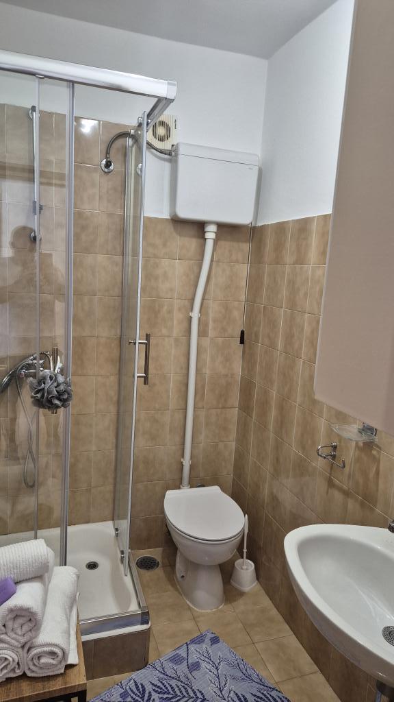 Apartamentele Arpina sunt situate într-o pădure deasă de pini, la primul rând la mare. În imediata apropiere a apartamentului se află mai multe plaje cu pietriș, în timp ce în fața casei se află o plajă de piatră la doar 10 metri. Unitatea de cazare are o curte amenajată cu șezlonguri și mese pentru oaspeți, cu vedere deschisă la mare. Parcarea și utilizarea grătarului sunt disponibile pentru oaspeți, iar la cerere, este disponibilă utilizarea unei mașini de spălat și a unui pătuț. Cazarea este formata dintr-un total de 5 apartamente, cu o capacitate totala de pana la 18 persoane. Toate apartamentele au vedere la mare, sunt dotate cu aer condiționat și bucătărie, iar internetul WI-FI este disponibil în întreaga clădire.