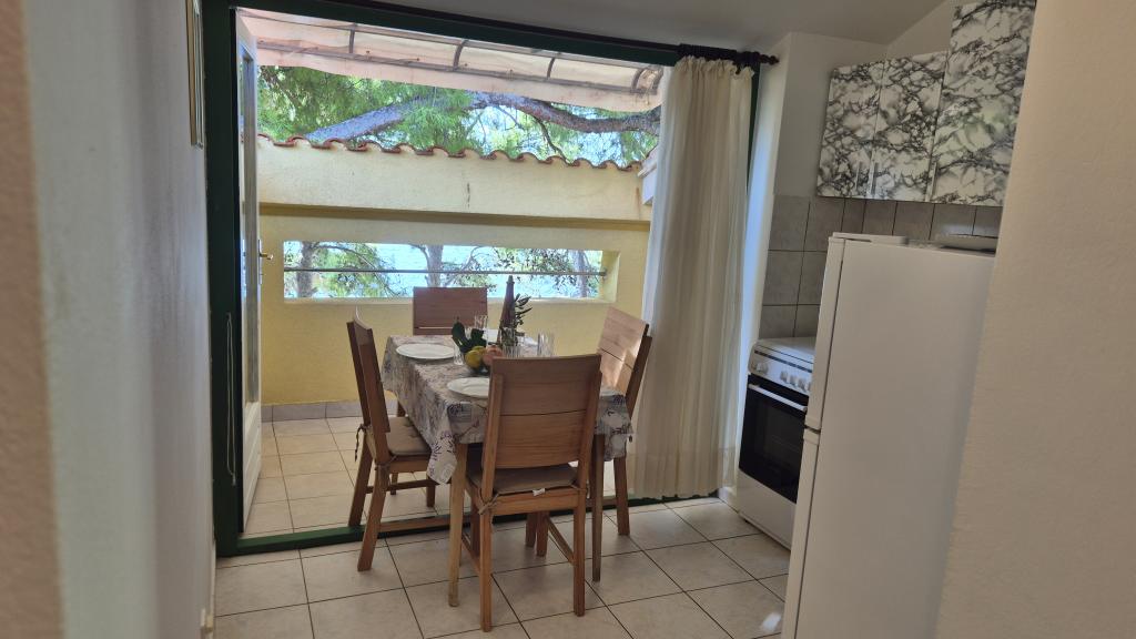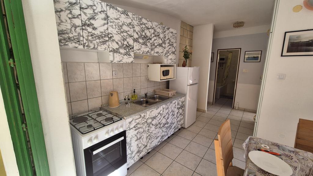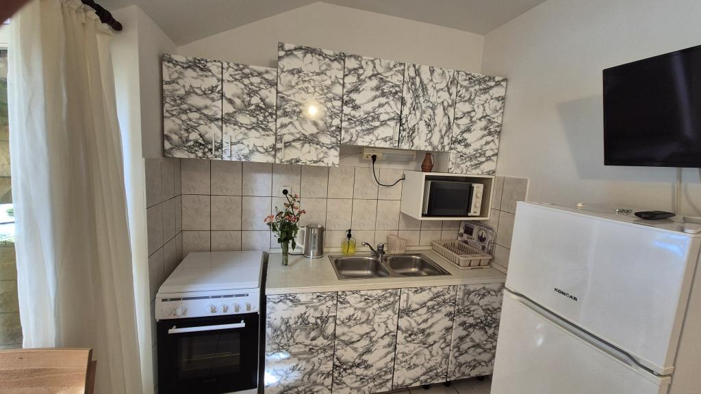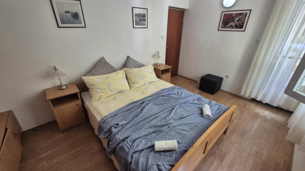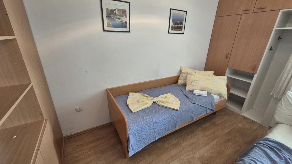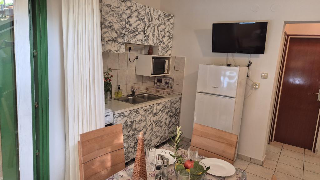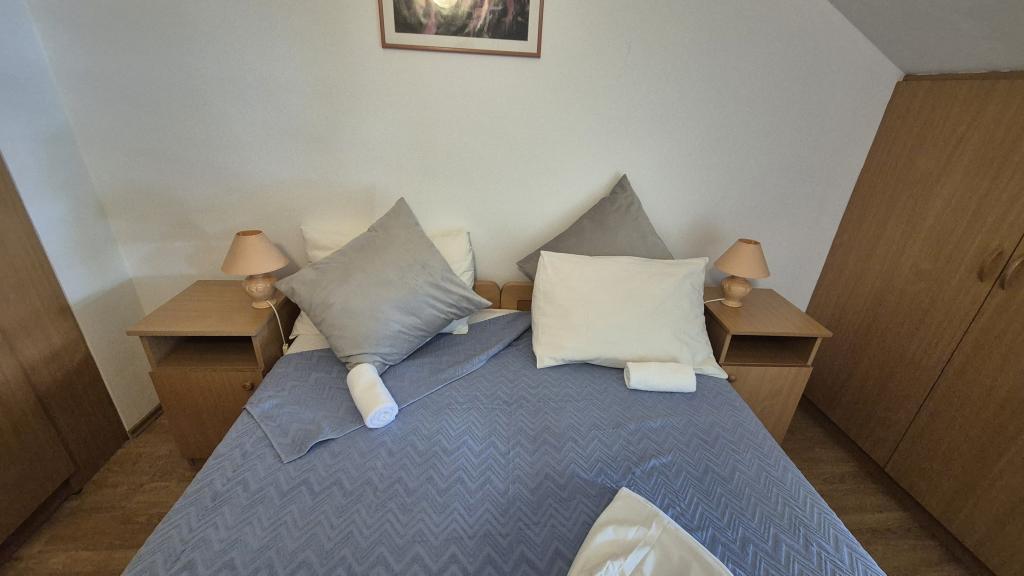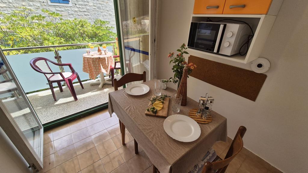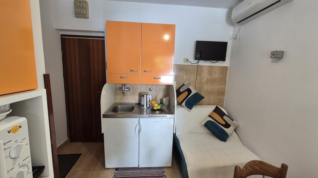 Apartamentele Arpina sunt situate într-o pădure deasă de pini, la primul rând la mare. În imediata apropiere a apartamentului se află mai multe plaje cu pietriș, în timp ce în fața casei se află o plajă de piatră la doar 10 metri. Unitatea de cazare are o curte amenajată cu șezlonguri și mese pentru oaspeți, cu vedere deschisă la mare. Parcarea și utilizarea grătarului sunt disponibile pentru oaspeți, iar la cerere, este disponibilă utilizarea unei mașini de spălat și a unui pătuț. Cazarea este formata dintr-un total de 5 apartamente, cu o capacitate totala de pana la 18 persoane. Toate apartamentele au vedere la mare, sunt dotate cu aer condiționat și bucătărie, iar internetul WI-FI este disponibil în întreaga clădire.