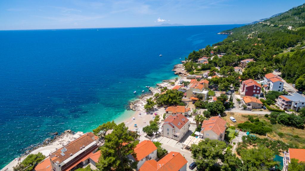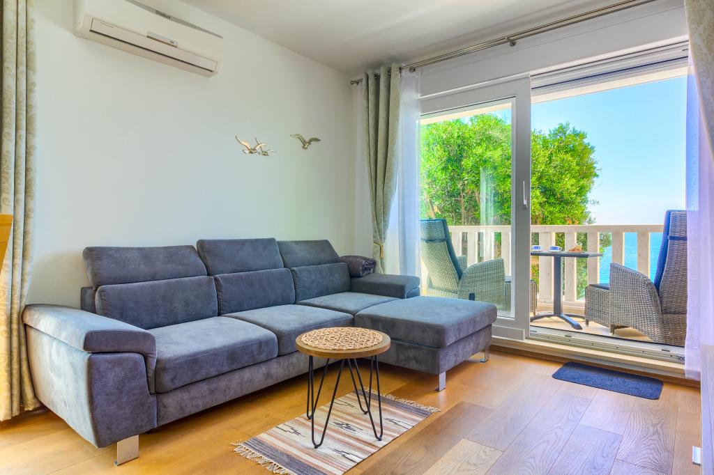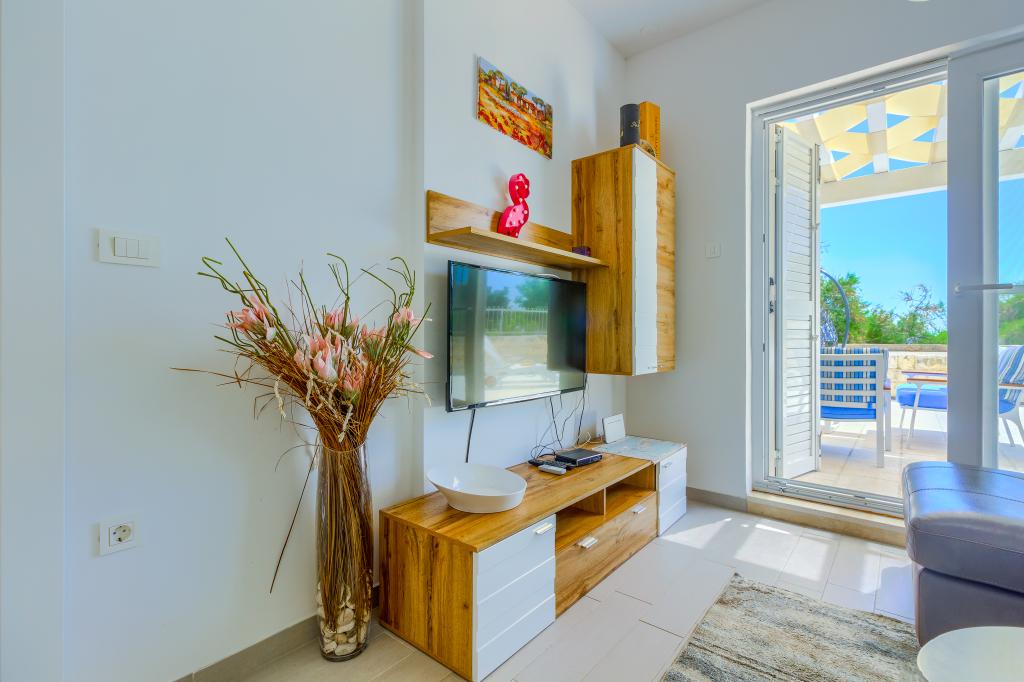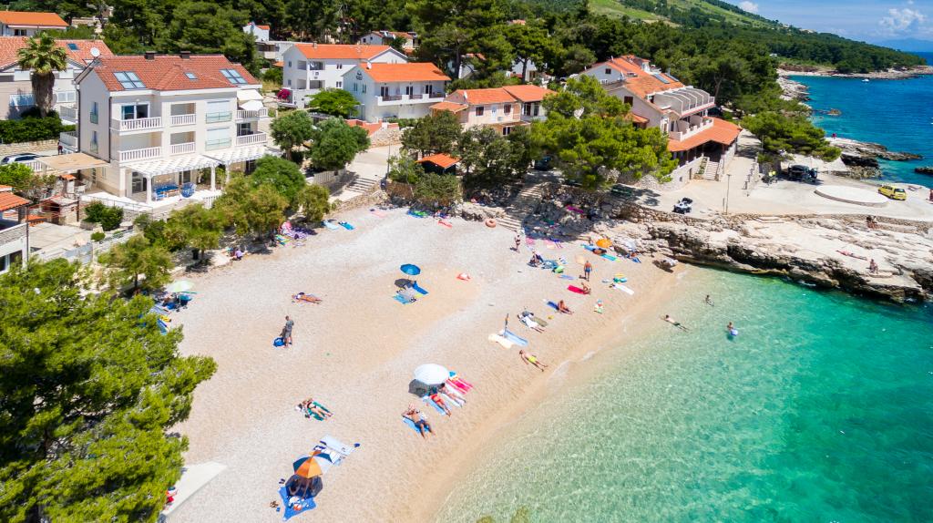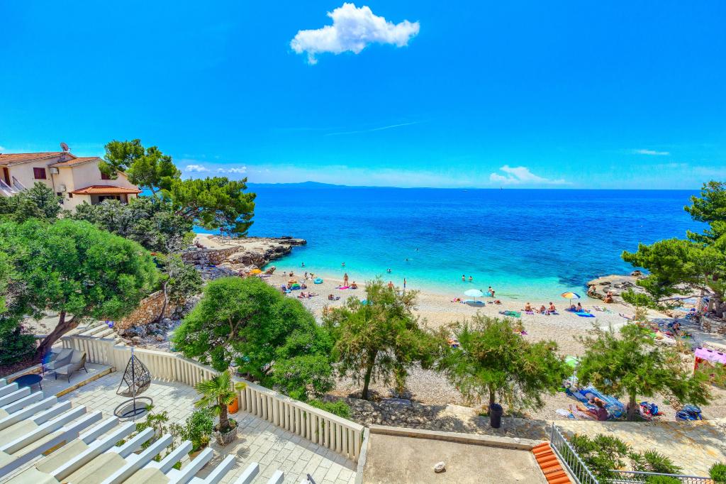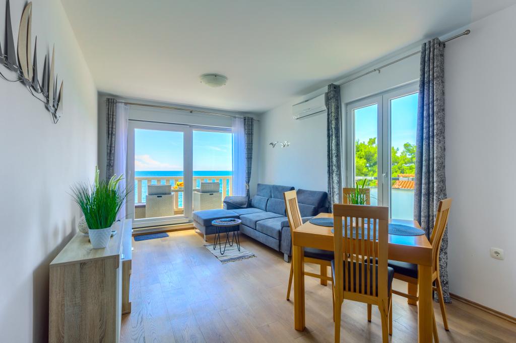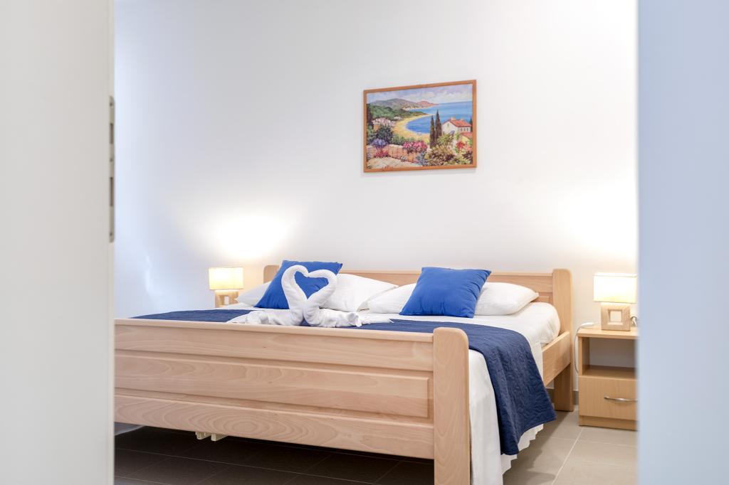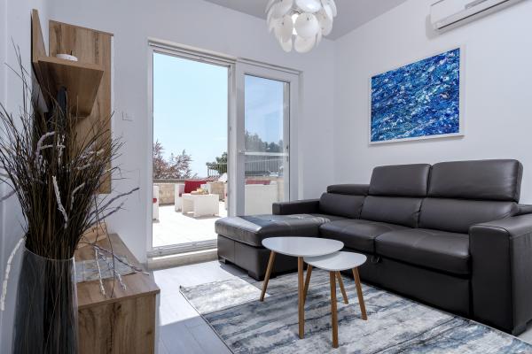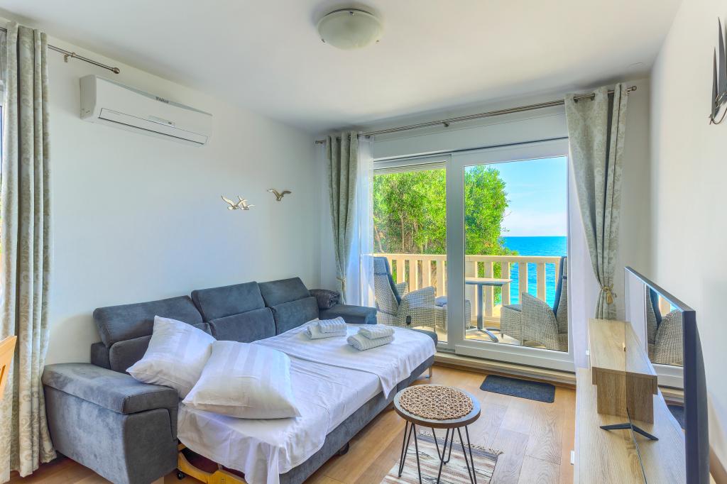 Apartamentele nou construite și echipate modern sunt situate chiar lângă plajă, în orașul liniștit Ivan Dolac. Apartamentele Unit 1 și Unit 6 sunt pentru 4 persoane, sunt compuse dintr-un dormitor cu pat dublu 160 x 200, o baie cu duș, o bucătărie și o sufragerie și un living cu SAT-TV și o canapea extensibilă, si o terasa cu o frumoasa vedere la plaja, mare si insule. Apartamentele P1 și P2 sunt pentru 8 persoane, sunt formate din 3 dormitoare și o canapea extensibilă în living, 2 băi, o bucătărie complet utilată cu mașină de spălat vase, o sufragerie și o masă pe terasa mare din față cu vedere. de la mare. Apartamentul P2 are o suprafață mai mare decât P1, deoarece are un dormitor întreg și o baie la etaj. Un restaurant și cafenele sunt la numai 20 de metri, iar un magazin la 100 de metri de apartament. Deși casa este situată chiar în centrul acestui mic oraș turistic, oferă liniște și intimitate completă, deoarece oaspeții sunt în mare parte familii cu copii mici care se bucură de plajele frumoase și de marea limpede.