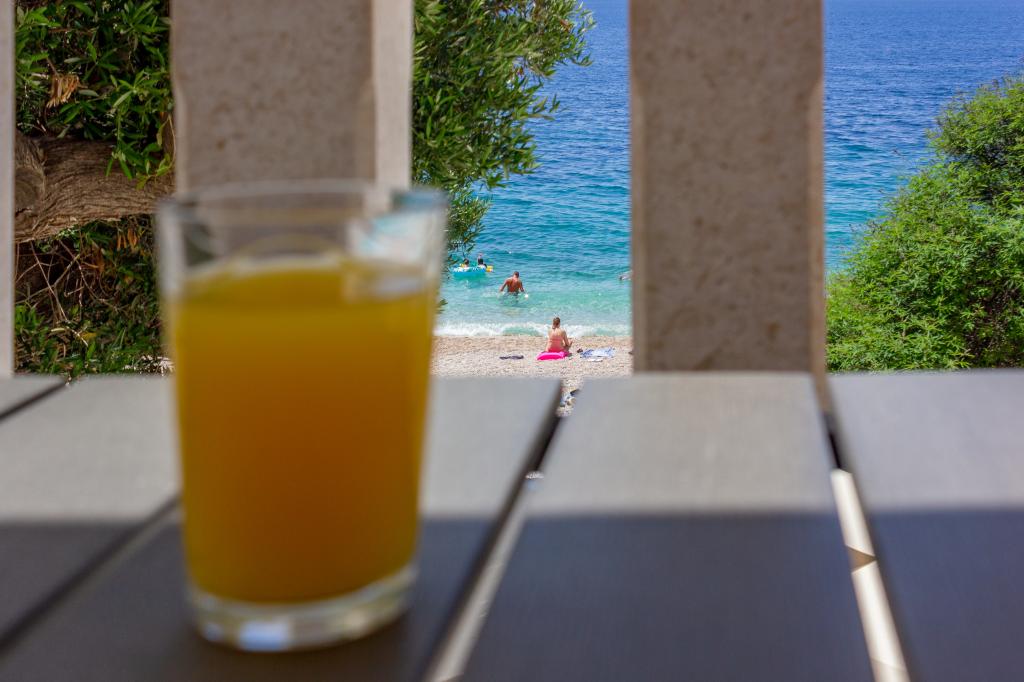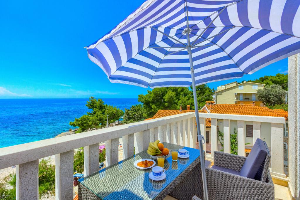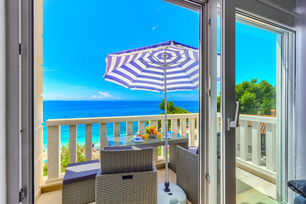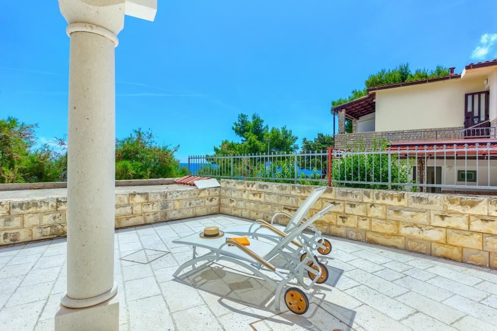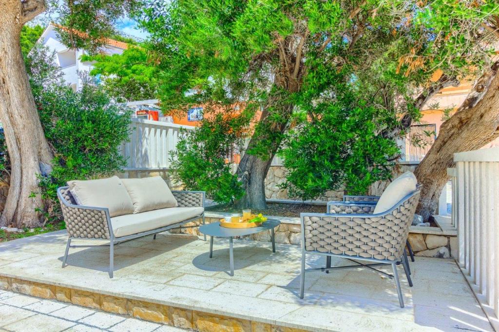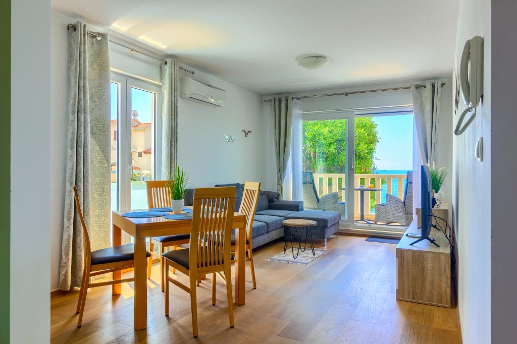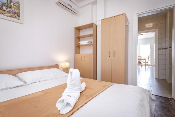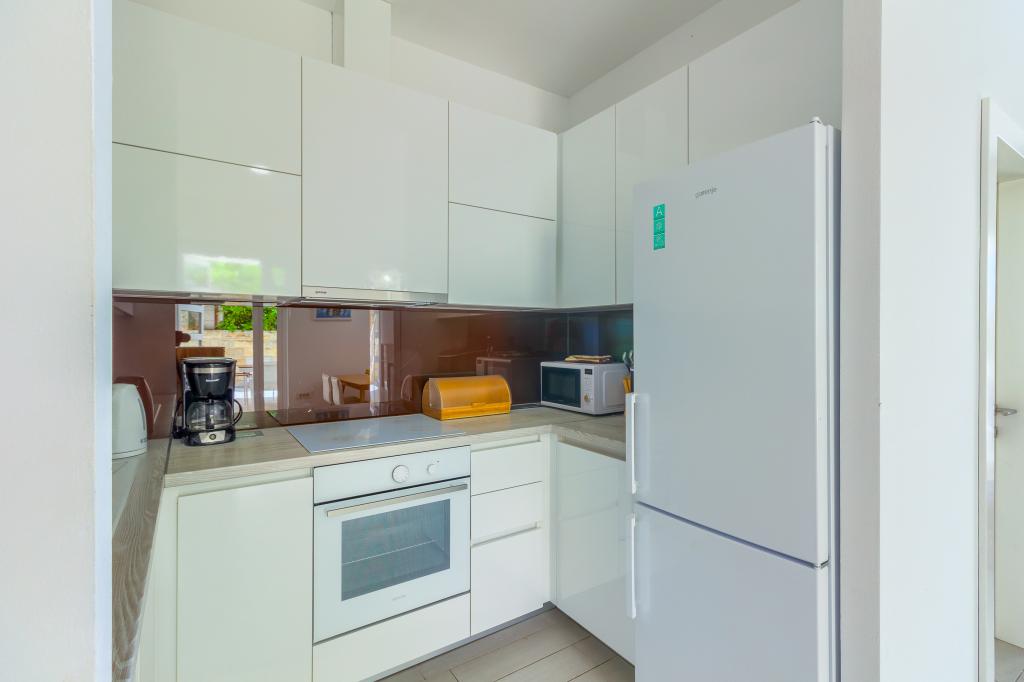 Apartamentele nou construite și echipate modern sunt situate chiar lângă plajă, în orașul liniștit Ivan Dolac. Apartamentele Unit 1 și Unit 6 sunt pentru 4 persoane, sunt compuse dintr-un dormitor cu pat dublu 160 x 200, o baie cu duș, o bucătărie și o sufragerie și un living cu SAT-TV și o canapea extensibilă, si o terasa cu o frumoasa vedere la plaja, mare si insule. Apartamentele P1 și P2 sunt pentru 8 persoane, sunt formate din 3 dormitoare și o canapea extensibilă în living, 2 băi, o bucătărie complet utilată cu mașină de spălat vase, o sufragerie și o masă pe terasa mare din față cu vedere. de la mare. Apartamentul P2 are o suprafață mai mare decât P1, deoarece are un dormitor întreg și o baie la etaj. Un restaurant și cafenele sunt la numai 20 de metri, iar un magazin la 100 de metri de apartament. Deși casa este situată chiar în centrul acestui mic oraș turistic, oferă liniște și intimitate completă, deoarece oaspeții sunt în mare parte familii cu copii mici care se bucură de plajele frumoase și de marea limpede.