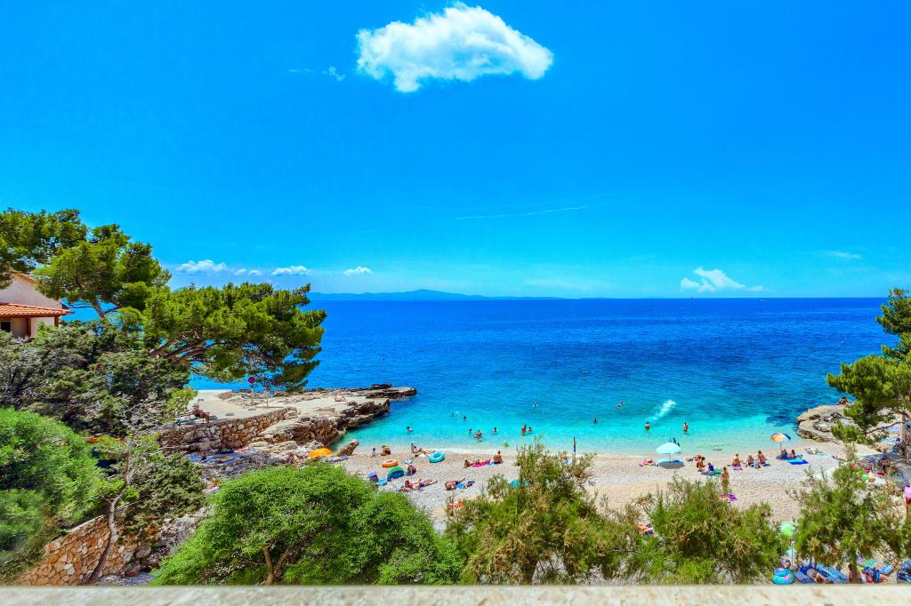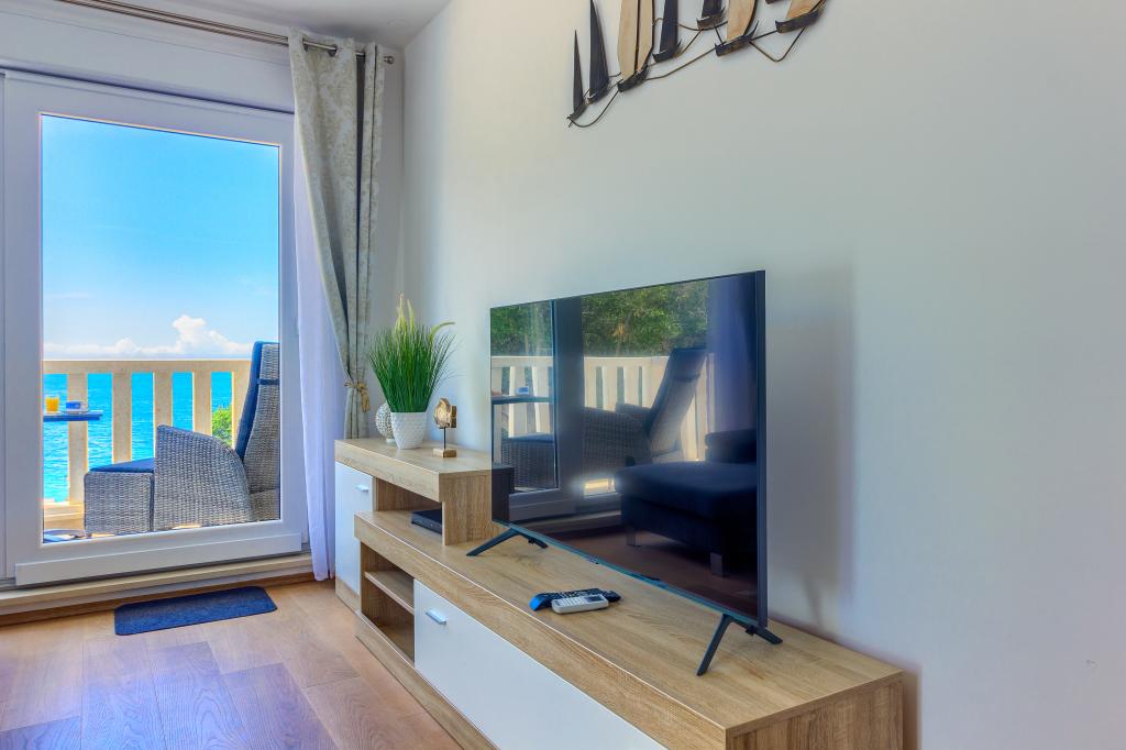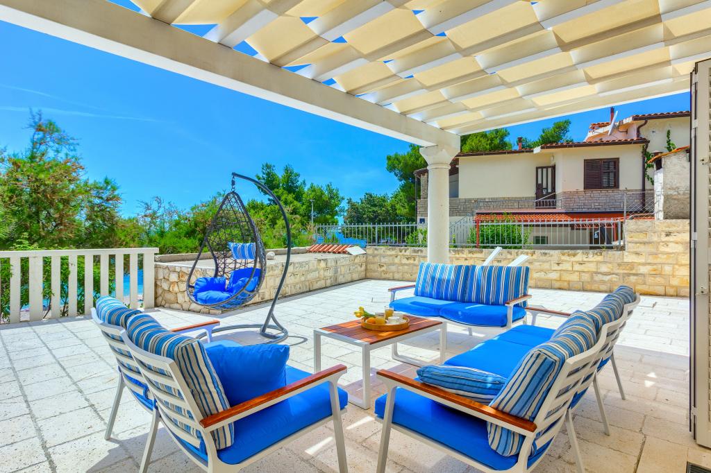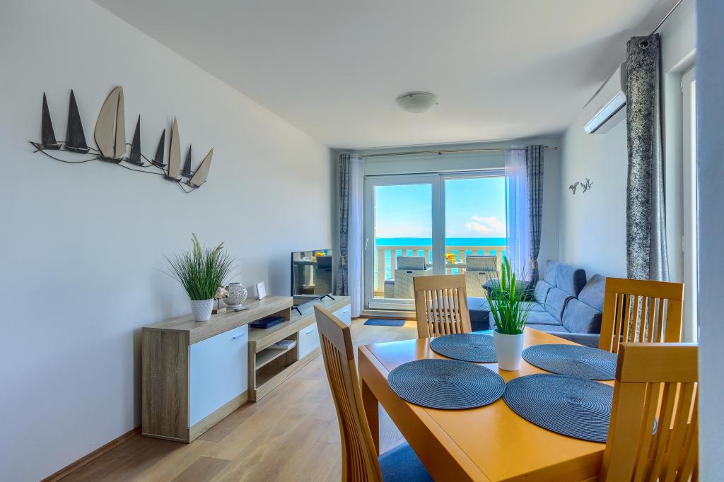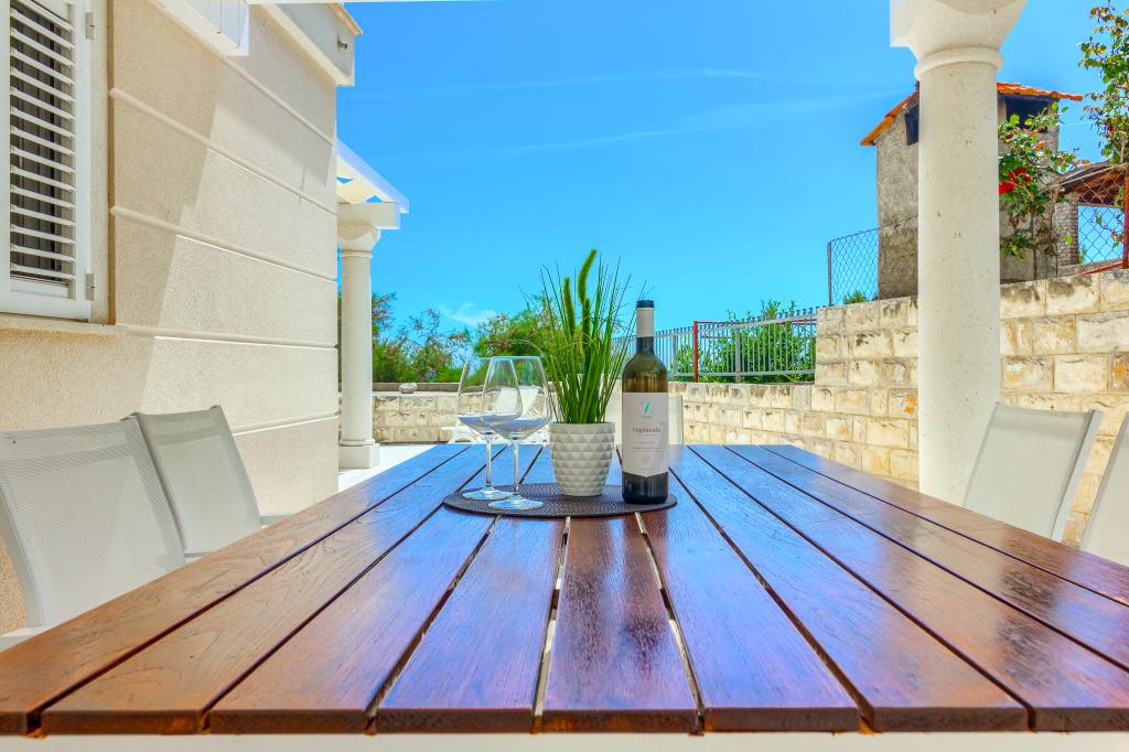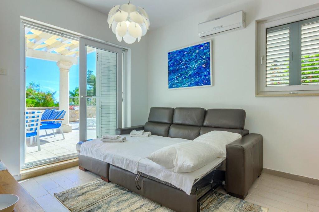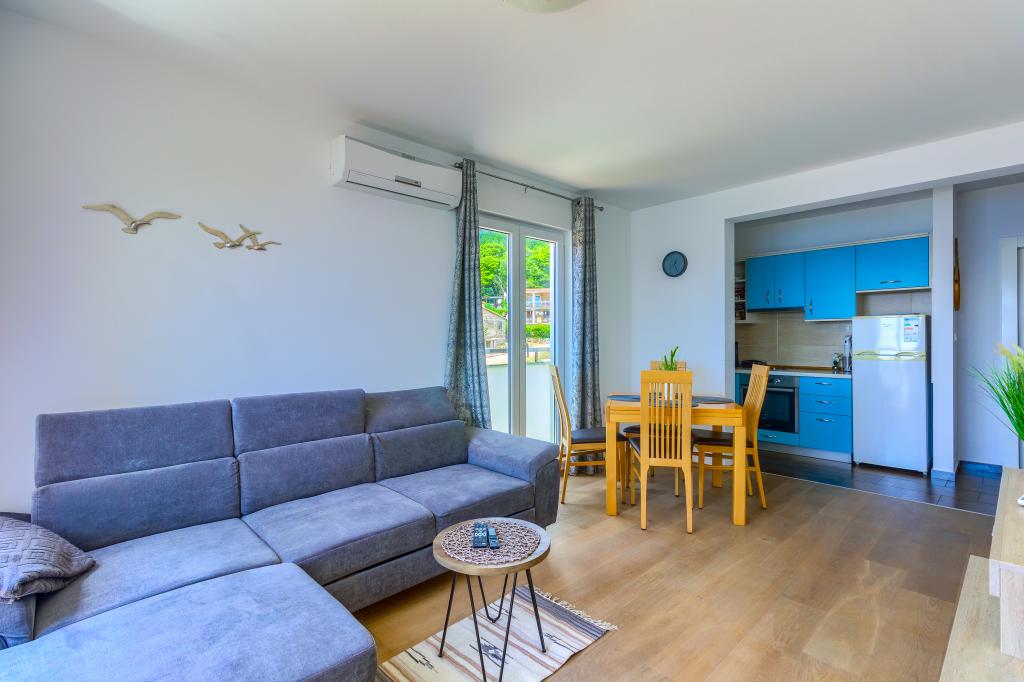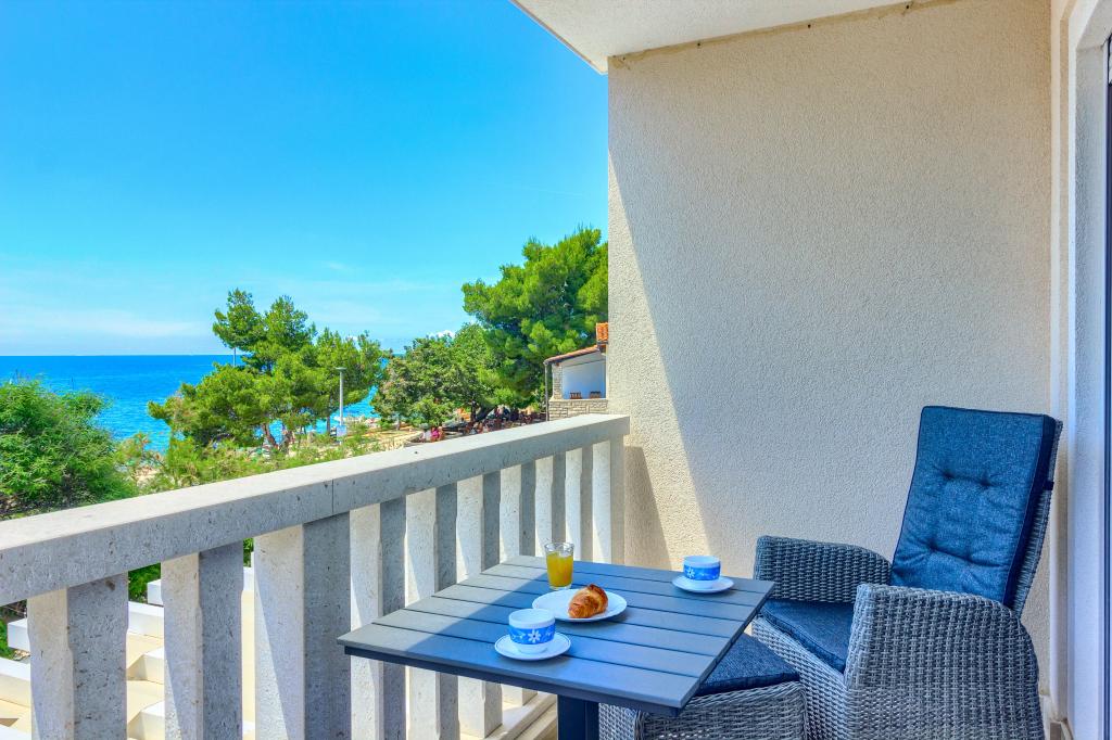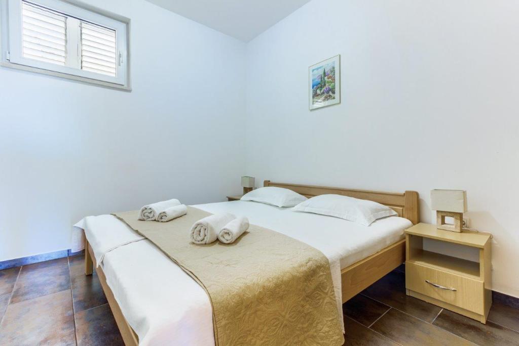 Apartamentele nou construite și echipate modern sunt situate chiar lângă plajă, în orașul liniștit Ivan Dolac. Apartamentele Unit 1 și Unit 6 sunt pentru 4 persoane, sunt compuse dintr-un dormitor cu pat dublu 160 x 200, o baie cu duș, o bucătărie și o sufragerie și un living cu SAT-TV și o canapea extensibilă, si o terasa cu o frumoasa vedere la plaja, mare si insule. Apartamentele P1 și P2 sunt pentru 8 persoane, sunt formate din 3 dormitoare și o canapea extensibilă în living, 2 băi, o bucătărie complet utilată cu mașină de spălat vase, o sufragerie și o masă pe terasa mare din față cu vedere. de la mare. Apartamentul P2 are o suprafață mai mare decât P1, deoarece are un dormitor întreg și o baie la etaj. Un restaurant și cafenele sunt la numai 20 de metri, iar un magazin la 100 de metri de apartament. Deși casa este situată chiar în centrul acestui mic oraș turistic, oferă liniște și intimitate completă, deoarece oaspeții sunt în mare parte familii cu copii mici care se bucură de plajele frumoase și de marea limpede.
