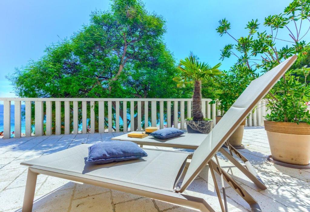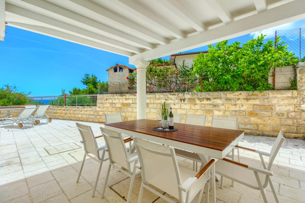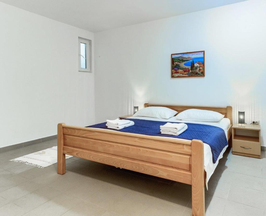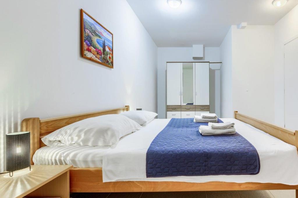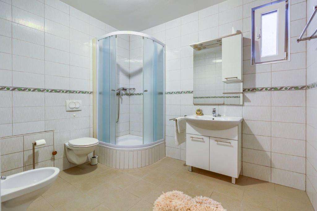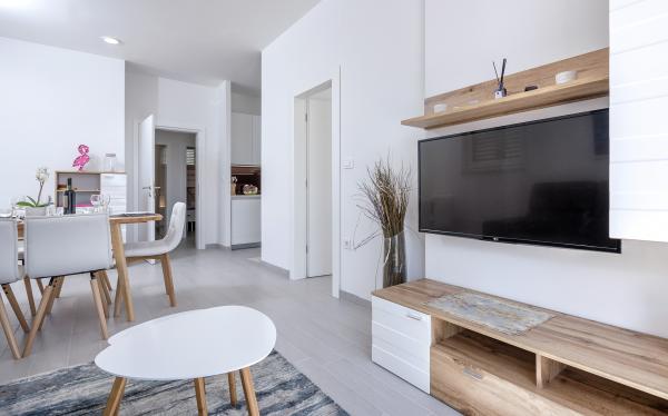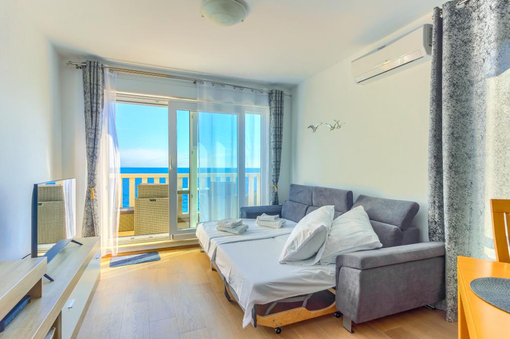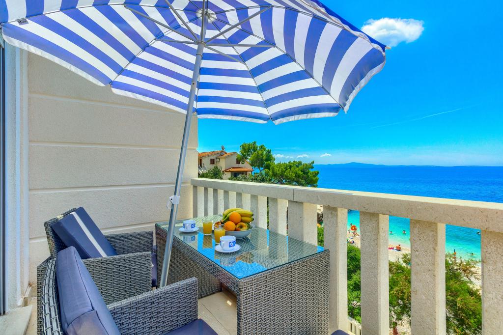 Apartamentele nou construite și echipate modern sunt situate chiar lângă plajă, în orașul liniștit Ivan Dolac. Apartamentele Unit 1 și Unit 6 sunt pentru 4 persoane, sunt compuse dintr-un dormitor cu pat dublu 160 x 200, o baie cu duș, o bucătărie și o sufragerie și un living cu SAT-TV și o canapea extensibilă, si o terasa cu o frumoasa vedere la plaja, mare si insule. Apartamentele P1 și P2 sunt pentru 8 persoane, sunt formate din 3 dormitoare și o canapea extensibilă în living, 2 băi, o bucătărie complet utilată cu mașină de spălat vase, o sufragerie și o masă pe terasa mare din față cu vedere. de la mare. Apartamentul P2 are o suprafață mai mare decât P1, deoarece are un dormitor întreg și o baie la etaj. Un restaurant și cafenele sunt la numai 20 de metri, iar un magazin la 100 de metri de apartament. Deși casa este situată chiar în centrul acestui mic oraș turistic, oferă liniște și intimitate completă, deoarece oaspeții sunt în mare parte familii cu copii mici care se bucură de plajele frumoase și de marea limpede.