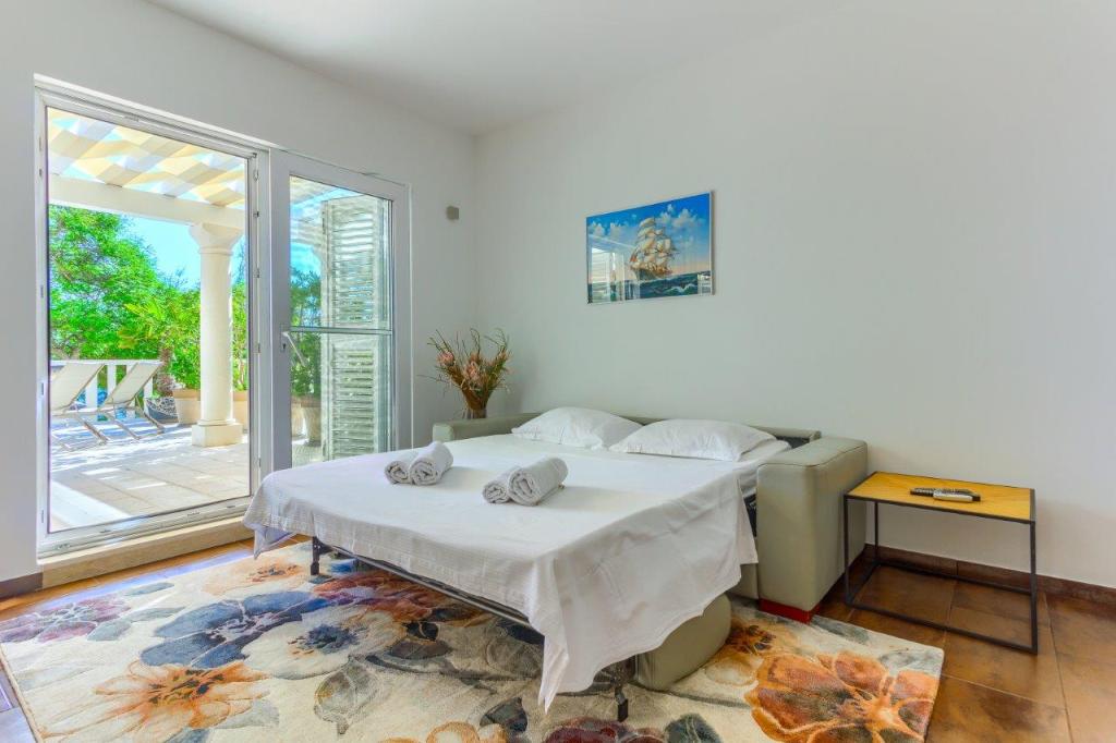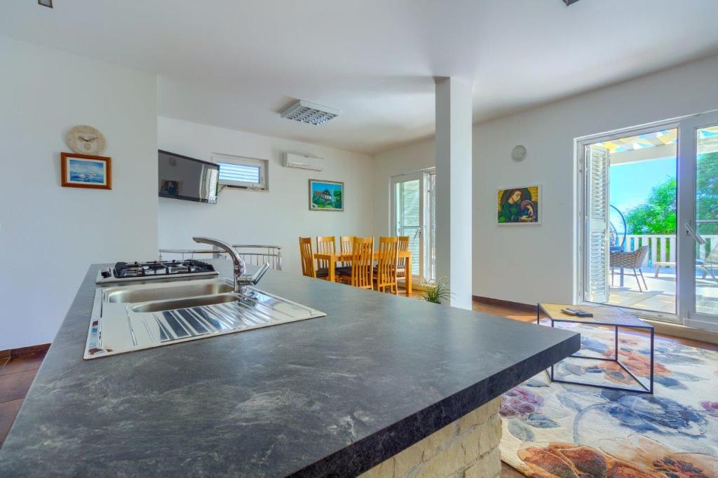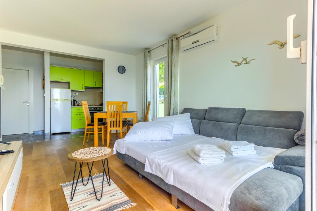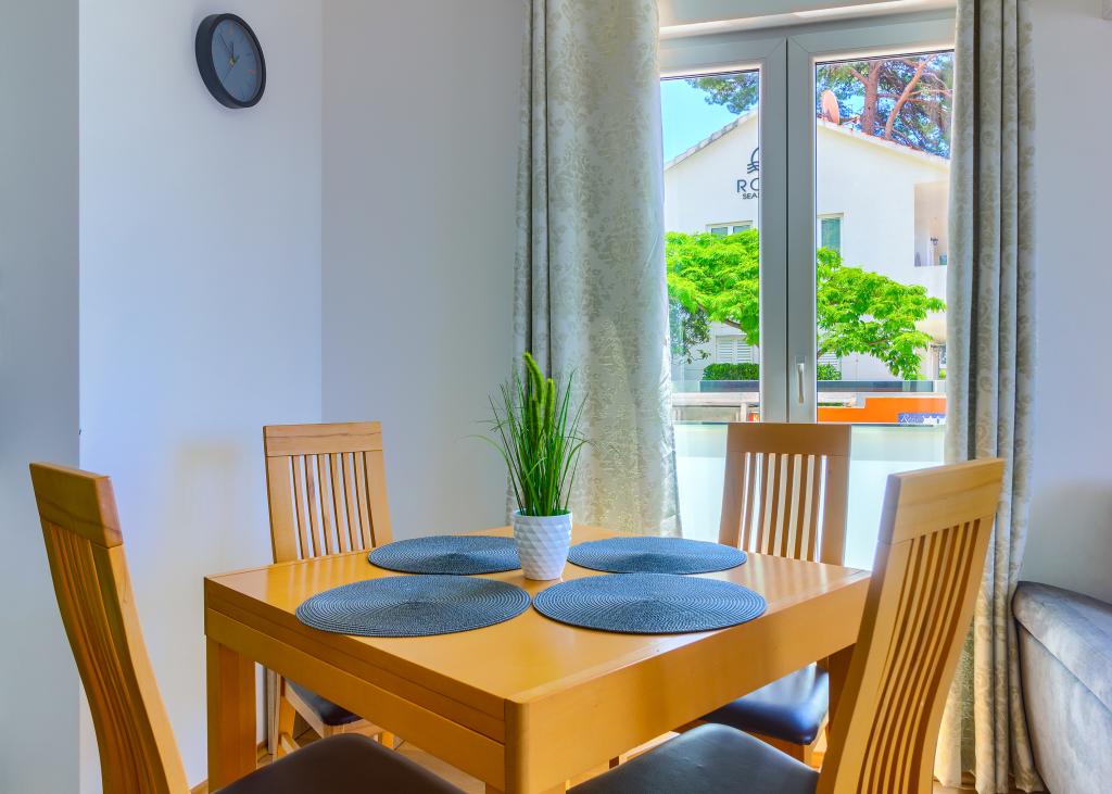 Taxa de rezidenta este inclusa in pret.Echipamente și dispozitive suplimentare incluse în preț: - internet, TV prin satelit, aer condiționat, fier de călcat, bucătărie complet utilată (mașină de spălat vase), mașina de spălat vase este în baie, parcare privată este asigurată - lenjeria de pat se schimbă o dată pe săptămână, prosoapele de două ori pe săptămână saptamana daca este necesar si mai des Posibilitatea de excursii cu barca cu motor cu skipper si transport catre insulele, insulitele si golfurile ascunse din apropiere. Preț accesibil.