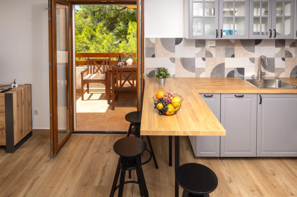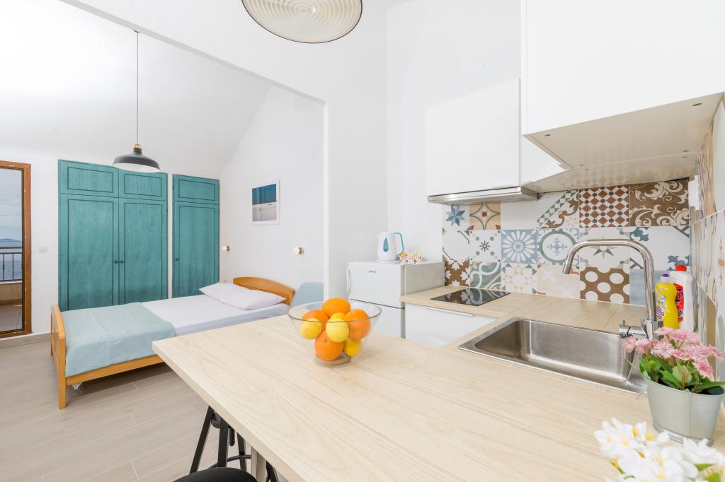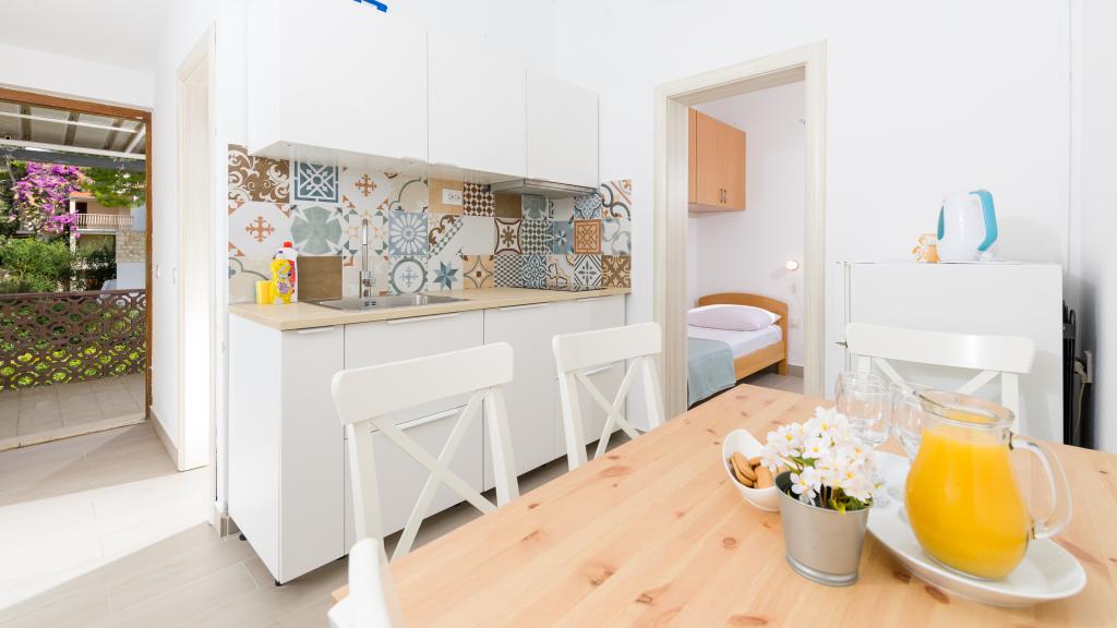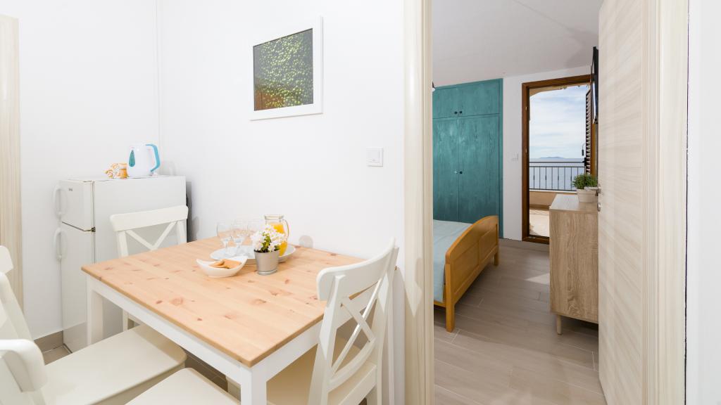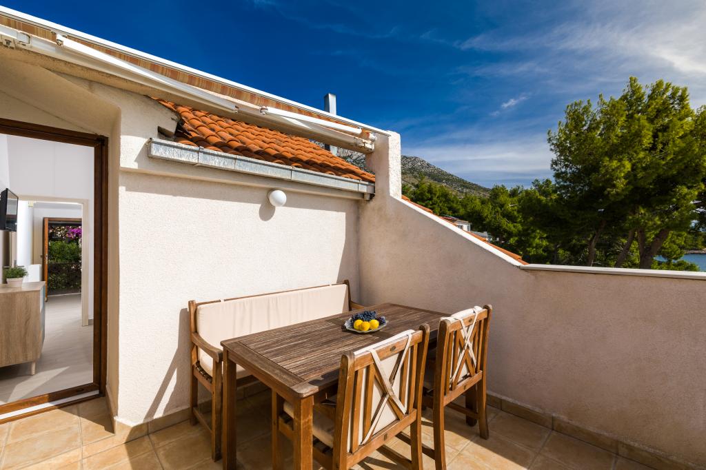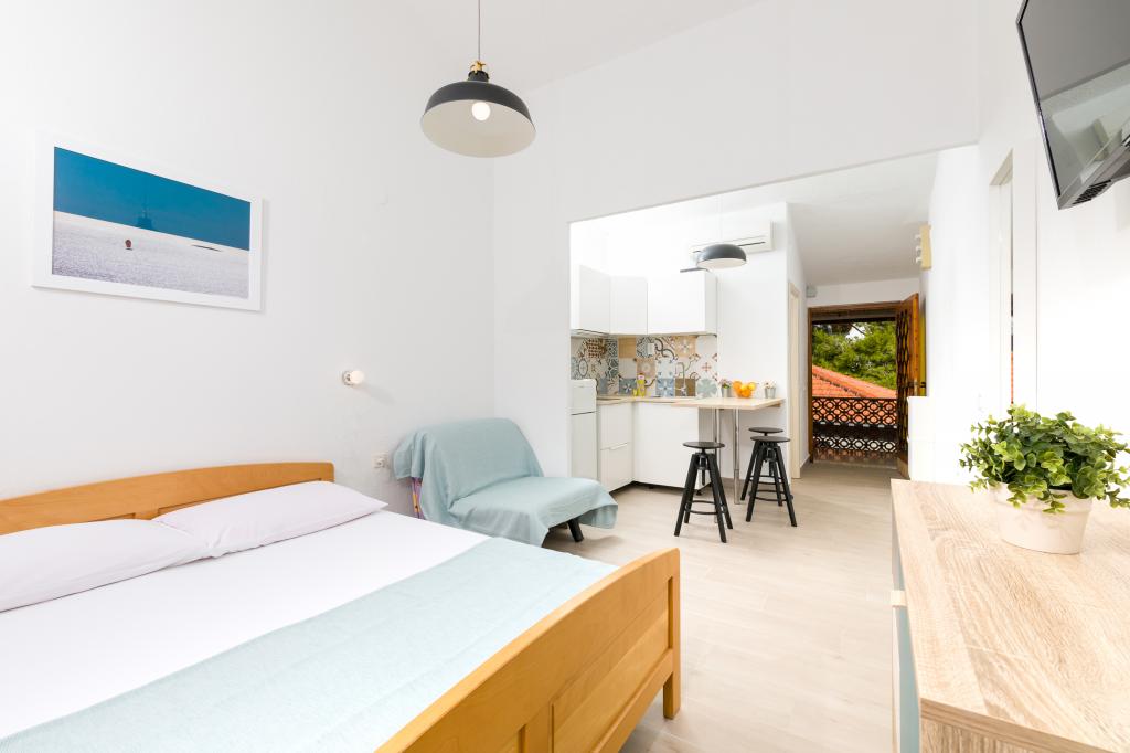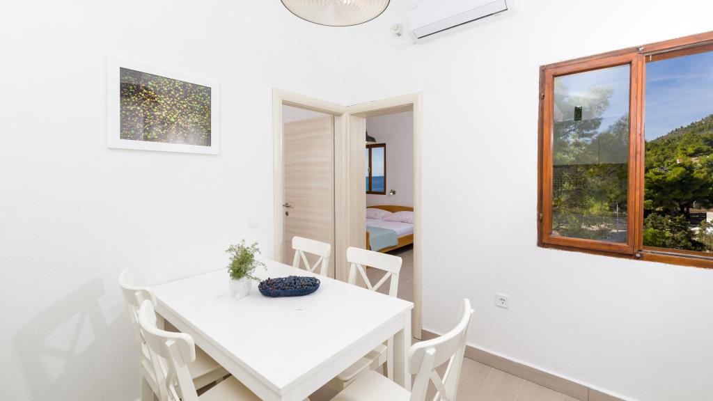 Slavinka Apartamentele sunt situate în centrul de Ivan Dolac, oraș însorit mic pe latura de sud a insulei. Acestea sunt situate în principal de-a lungul coastei și departe de frumoasa plajă de nisip la mai puțin de 10 de metri. Avem un total de opt apartamente de dimensiuni diferite (studio, 1-dormitor, 2 dormitoare), ajustate la diferite grupuri de persoane. Din fiecare apartament oferă o vedere magnifică a mării și insulele Scedro, Korcula și Vis. Apartamentele sunt situate la primul etaj și mansarda casei. La parter se află un restaurant liniștit, cu o cafenea pe terasa mare, unde vă puteți relaxa cu cafeaua de dimineata sau o gustare băutură după înot și să încercați o varietate de mâncăruri locale și internaționale, în timp ce se bucură de vedere frumoasă la mare.