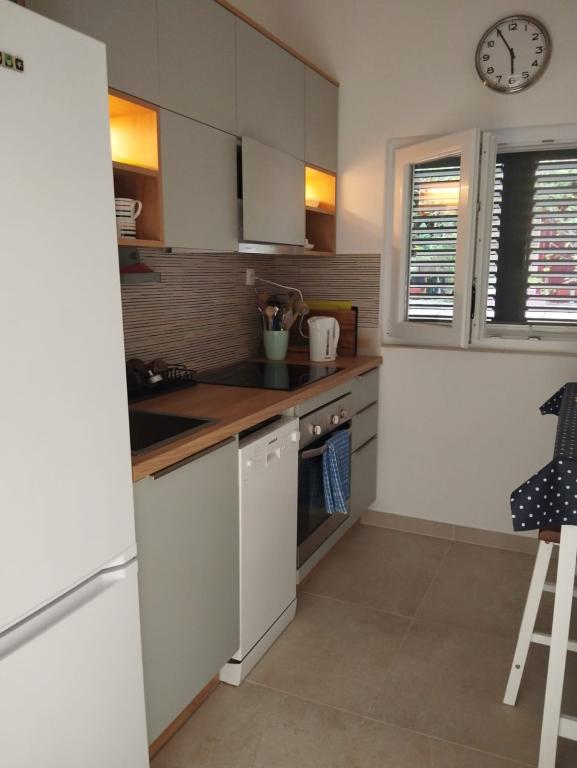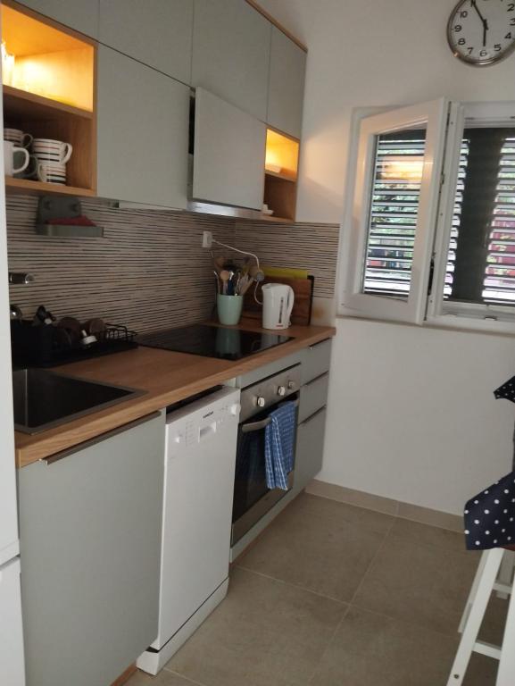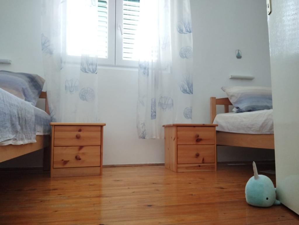 Bine ați venit la Tom, o căsuță fermecătoare pe malul mării din Ivan Dolac, Hvar, Croația. Situat la doar 70 de metri de plajă, Toma oferă un refugiu liniștit, cu o vedere frumoasă la mare și multă umbră naturală de la copacii din jur. Casa are doua dormitoare, unul cu un pat mare si celalalt cu doua paturi de o persoana. Bucurați-vă de confortul modern al Wi-Fi, două aparate de aer condiționat pentru o ședere plăcută și o bucătărie mică, bine utilată, cu toate cele necesare. Pășiți pe terasa mare și lăsați-vă fermecat de vederea panoramică la mare. Experimentați ce este mai bun din insula Hvar, cu restaurante, magazine și oportunități nesfârșite de explorat. Rezervă-ți astăzi șederea în Toma pentru o vacanță de neuitat la mare.