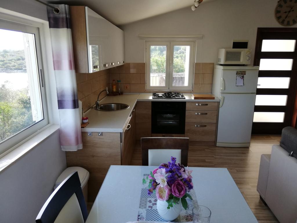 Apartamentele Helen sunt situate pe Mali Iž, foarte aproape de mare, în golful Bršanj. Casa are grătar și parcare. Două terase, cu vedere la mare, sunt împărțite pe 2 etaje. Etaj inferior: 1 cameră cu 1 pat (90 cm, lungime 200 cm), 1 pat mare (160 cm, lungime 200 cm). Bucătărie (aragaz, cuptor, congelator). Living, baie. Etaj superior: (scări exterioare) living/sufragerie 35m2 cu TV prin satelit, receptor și Wi-Fi. 1 cameră cu un pat mare (160 cm, lungime 200 cm și un pat suplimentar de 90cmx 200cm). A doua cameră cu 1 pat mare (160cm, lungime 200 cm), bucătărie (4 plite, cuptor, congelator), baie. Animalele de companie sunt permise.