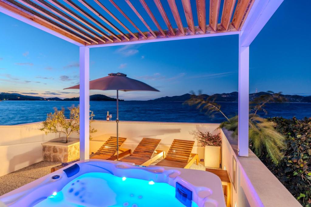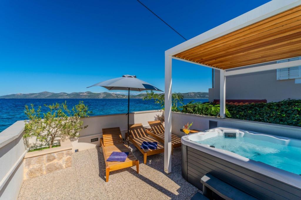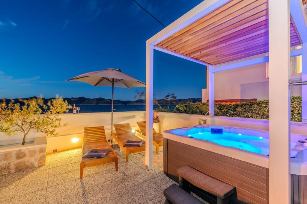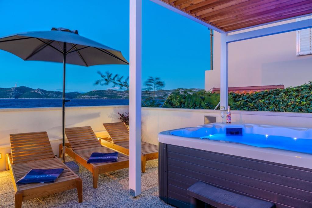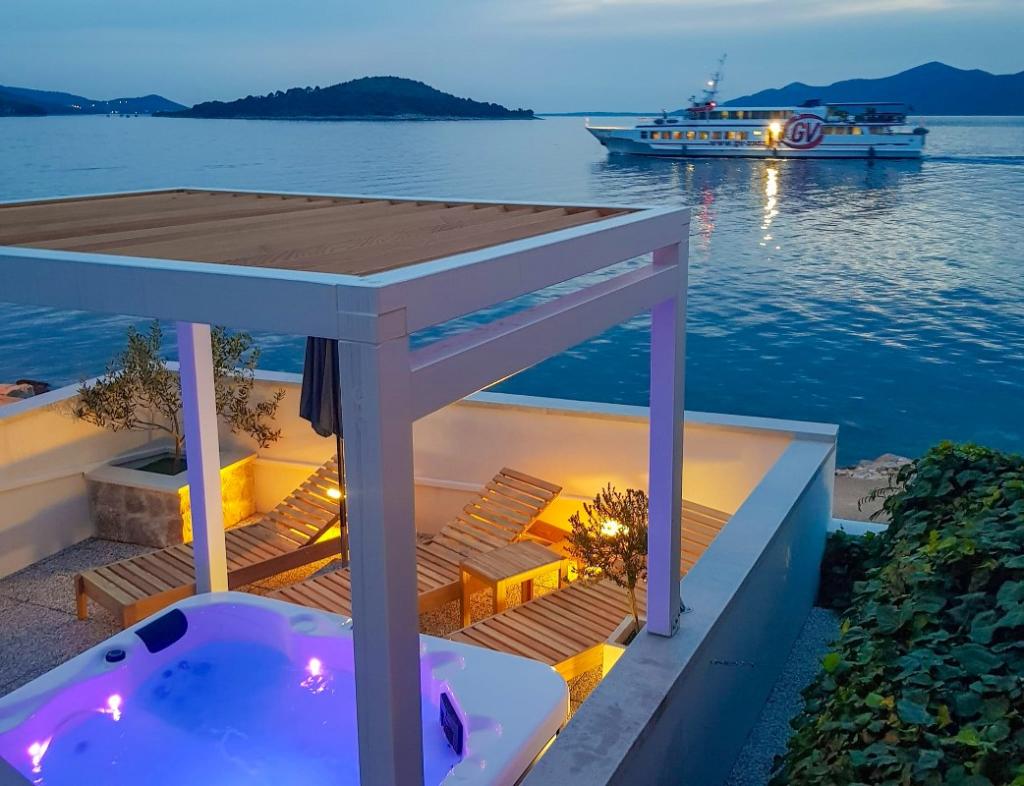 Cele două apartamente noastre recent renovate cu jacuzzi (200x200 - pentru 5 persoane) sunt situate într-o locație ideală (primul rând până la mare) pentru toți iubitorii de pace, liniște mării, verdeață de coastă și natură curată. Pe lângă o plajă privată, naturală în fața clădirii, cu umbrele și șezlonguri și scări pentru un acces mai bun la mare, unele apartamente au balcon cu vedere la mare, iar unele au o terasă mare cu grătar. În fiecare dintre cele 2 apartamente există o bucătărie complet utilată cu un living, o baie și un dormitor A1 cu balcon (3 1), A2 cu terasă (3 1). Apartamentele au un farmec al simplității și al casualității verii care vă va relaxa la început. O potecă de-a lungul mării duce de la clădire la o piață din apropiere și un restaurant cu aspect Robison și mâncăruri gourmet dalmate adevărate. Veli Iž este la doar câteva minute de mers cu mașina. Acolo puteți găsi un oficiu poștal, un port de agrement, restaurante și o piață. Pe toată insula, chiar și în fața apartamentului, poți descoperi magia pescuitului. Liniste si bucurie garantata!