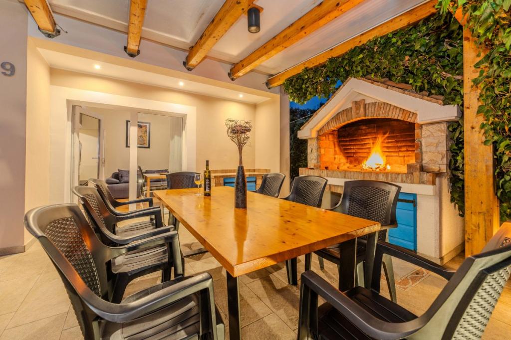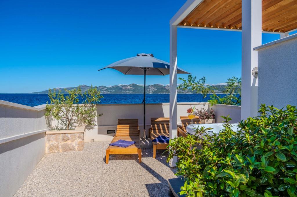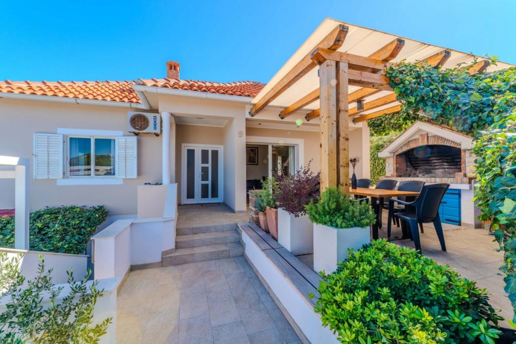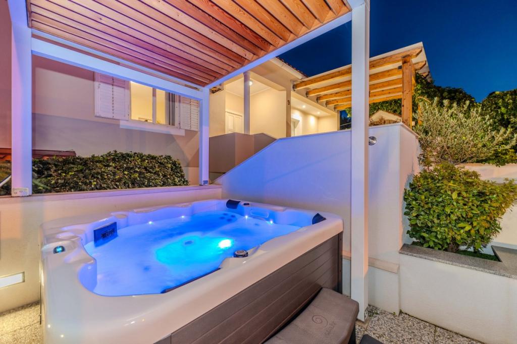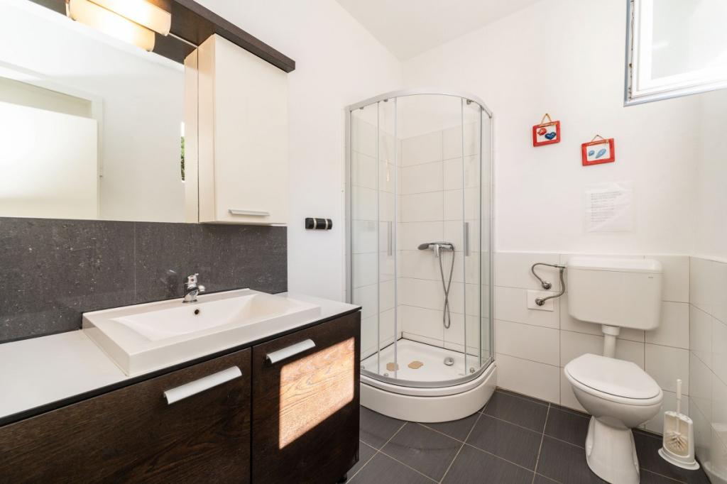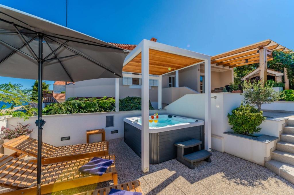 Cele două apartamente noastre recent renovate cu jacuzzi (200x200 - pentru 5 persoane) sunt situate într-o locație ideală (primul rând până la mare) pentru toți iubitorii de pace, liniște mării, verdeață de coastă și natură curată. Pe lângă o plajă privată, naturală în fața clădirii, cu umbrele și șezlonguri și scări pentru un acces mai bun la mare, unele apartamente au balcon cu vedere la mare, iar unele au o terasă mare cu grătar. În fiecare dintre cele 2 apartamente există o bucătărie complet utilată cu un living, o baie și un dormitor A1 cu balcon (3 1), A2 cu terasă (3 1). Apartamentele au un farmec al simplității și al casualității verii care vă va relaxa la început. O potecă de-a lungul mării duce de la clădire la o piață din apropiere și un restaurant cu aspect Robison și mâncăruri gourmet dalmate adevărate. Veli Iž este la doar câteva minute de mers cu mașina. Acolo puteți găsi un oficiu poștal, un port de agrement, restaurante și o piață. Pe toată insula, chiar și în fața apartamentului, poți descoperi magia pescuitului. Liniste si bucurie garantata!