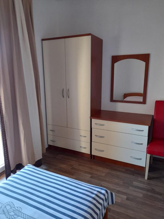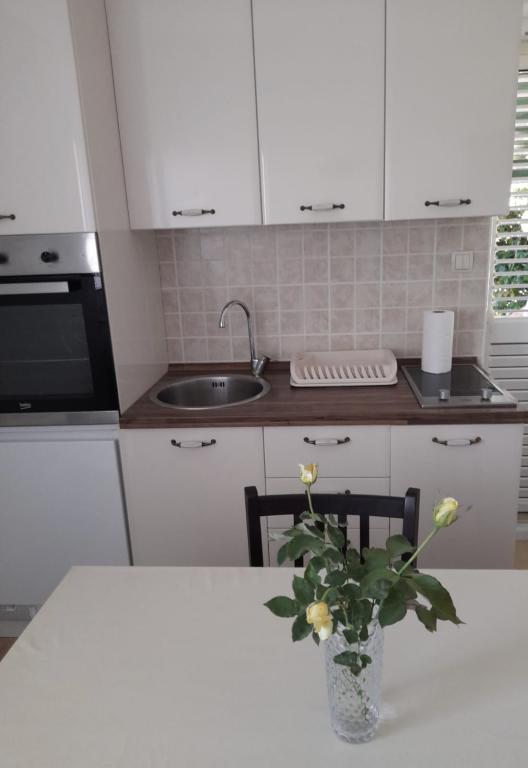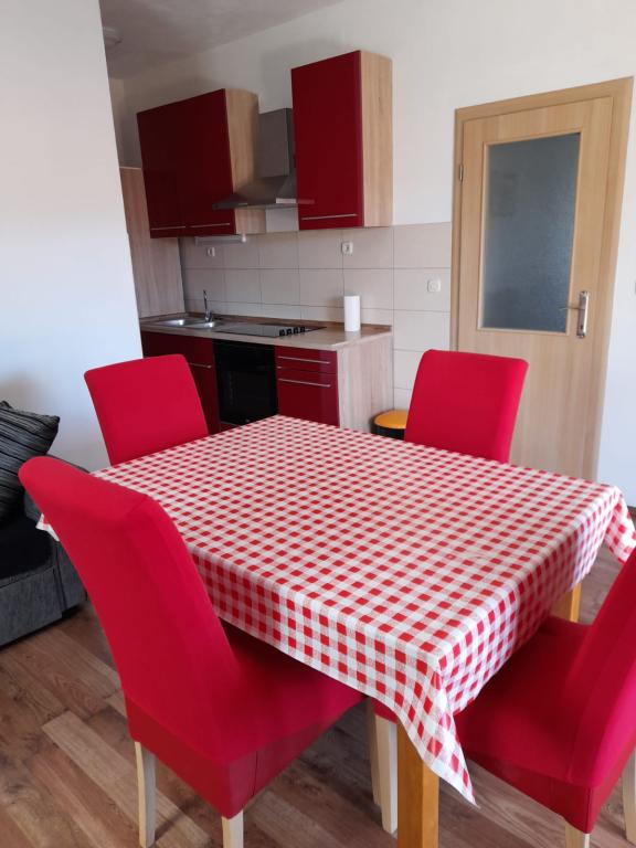 Locația noastră este Veli Iž, o insulă frumoasă situată lângă Zadar. Dacă doriți o vacanță departe de aglomerația orașului, plajele aglomerate, zgomotul și stresul, aceasta este destinația potrivită pentru dvs. Dimineața, când vă treziți, veți simți mirosul și prospețimea Mării Adriatice curate în aer, care se află la 5 minute de mers pe jos. Locul este mic, dar special. Este împodobit cu multe străzi vechi, natură, mare, o biserică cu clopotele ei sunând, astfel încât să nu fie nevoie să vă uitați la ceas, 2 magazine cu alimente și provizii, câteva cafenele pentru răcorire cu diverse băuturi și restaurante unde vă puteți răsfăța cu specialități insulare și alte preparate delicioase. Apartamentele sunt confortabile, potrivite atât pentru familii cu copii, cât și pentru cupluri. Acestea conțin tot ce aveți nevoie pentru o vacanță de calitate. Totul este la îndemâna dvs. Centrul este la 7 minute de mers pe jos. Puteți folosi grătarul care face parte din unitate pentru prepararea peștelui și a cărnii. Parcarea este disponibilă în fața casei. Fiecare apartament are o terasă pentru relaxare. Vino la Veli Iž și bucură-te de magia insulei. Suntem disponibili pentru toate întrebările dumneavoastră
