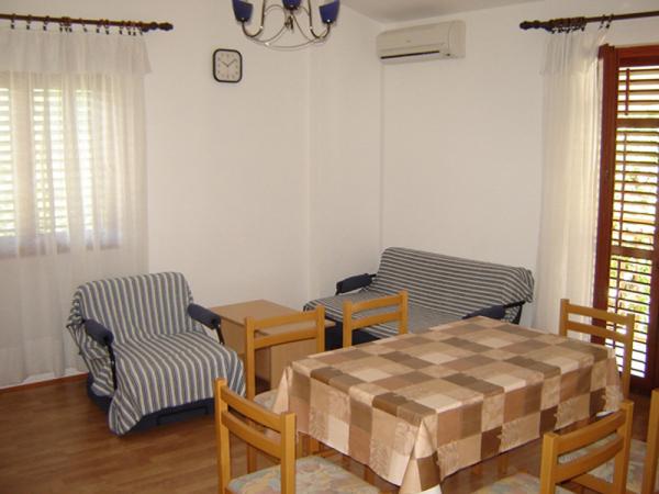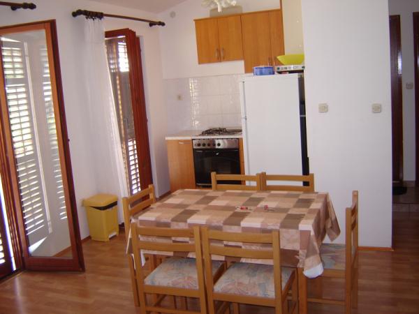 Casa este situată într-un loc liniștit și retras, la numai 150 de metri distanță de mare, centru și magazin. Pe ușa casei se află accesul cu mașina și se oferă parcare în curte. Apartamente moderne dotate cu toate facilitățile necesare pentru o ședere plăcută și o vacanță plăcută. Există trei apartamente separate și o companie mai mare. Cele două apartamente au două camere cu bucătărie și cameră de zi (A-1 și A-2), în timp ce al treilea (A-3) apartament cu trei paturi. Pentru parcarea gratuită a autovehiculului dvs. în curte.
