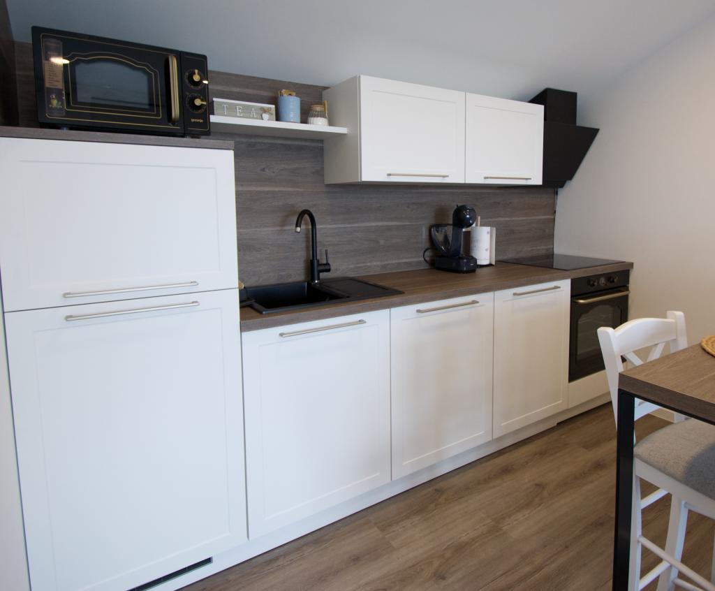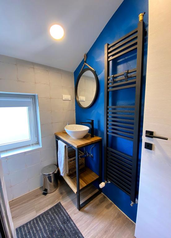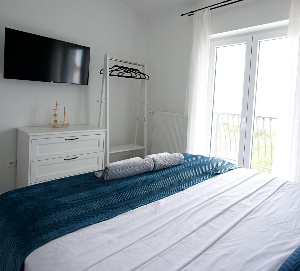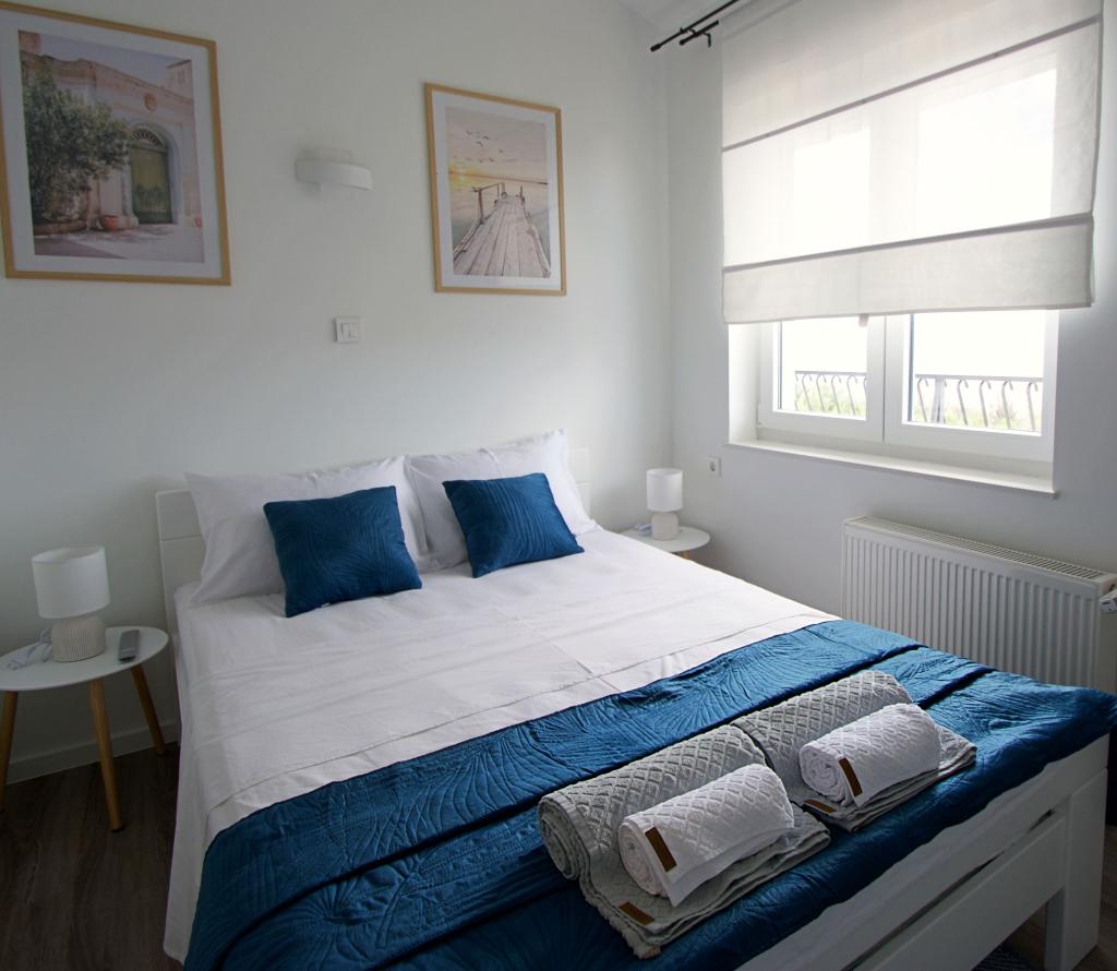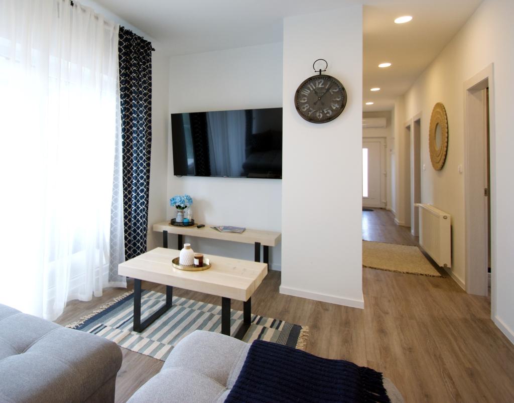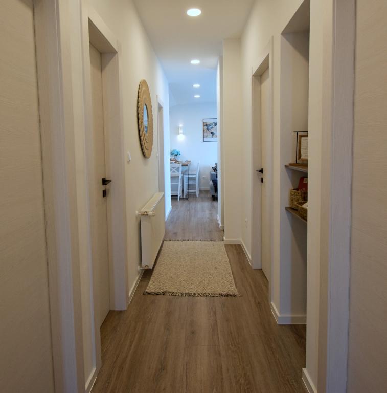 Bine ați venit la apartamentul nostru Blue Horizon. Interiorul este atent proiectat cu detalii moderne completate de elemente calde, naturale, creând un sentiment de lux armonios. Livingul spațios vă invită să vă relaxați pe canapeaua confortabilă, bucurându-vă, în același timp, de priveliștea albastrului nesfârșit al Mării Adriatice. Bucătăria noastră complet utilată vă oferă posibilitatea de a vă pregăti singuri mesele cu cele mai noi aparate și accesorii. Dormitoarele sunt oaze de liniște și confort, cu paturi confortabile și lenjerie de pat proaspătă pentru a asigura un somn liniștit după o zi lungă de explorare a plajelor și atracțiilor din apropiere. Apartamentul nostru are, de asemenea, un balcon spațios, unde vă puteți bucura de cafeaua de dimineață sau de o băutură relaxată de seară cu apusul soarelui. Prima plajă este la 300 m, restaurantul la 100 m, iar magazinul la 400 m Bucurați-vă de fiecare clipă petrecută în apartamentul nostru lângă mare, unde confortul, luxul și frumusețea naturii se unesc pentru a vă oferi o vacanță de neuitat.