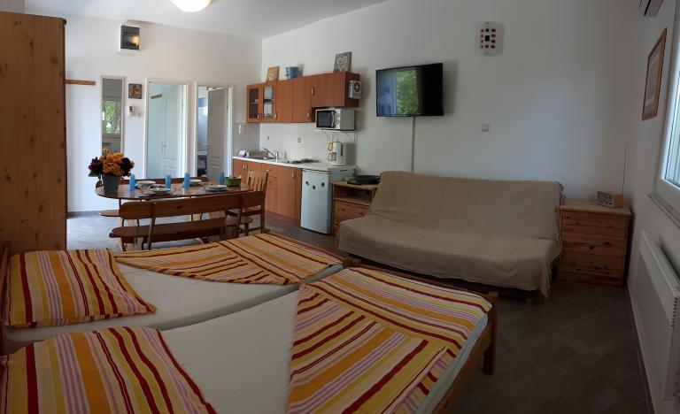Citește mai mult Unități de cazareUtilizarea aerului condiționat se percepe un cost suplimentar de 5 € pe zi. Utilizarea unei mașini de spălat comune se percepe un cost suplimentar de 4 € per spălare. Reducere pentru sejururi mai lungi (sejur de 14 zile - reducere de 10%). Nu acceptăm animale de companie în cazare. La plecare, apartamentul trebuie să fie funcțional și curat ca în momentul preluării, în caz contrar se va percepe o taxă de curățenie de 40 €. Avansul pentru perioada rezervată este de 30% din suma totală și se plătește direct în contul bancar al proprietarului după confirmarea rezervării. CHECK-IN sosire în ziua rezervării între orele 16:00, CHECK OUT părăsirea cazării - până la ora 10:00.