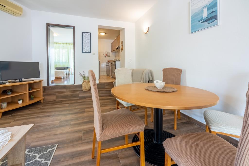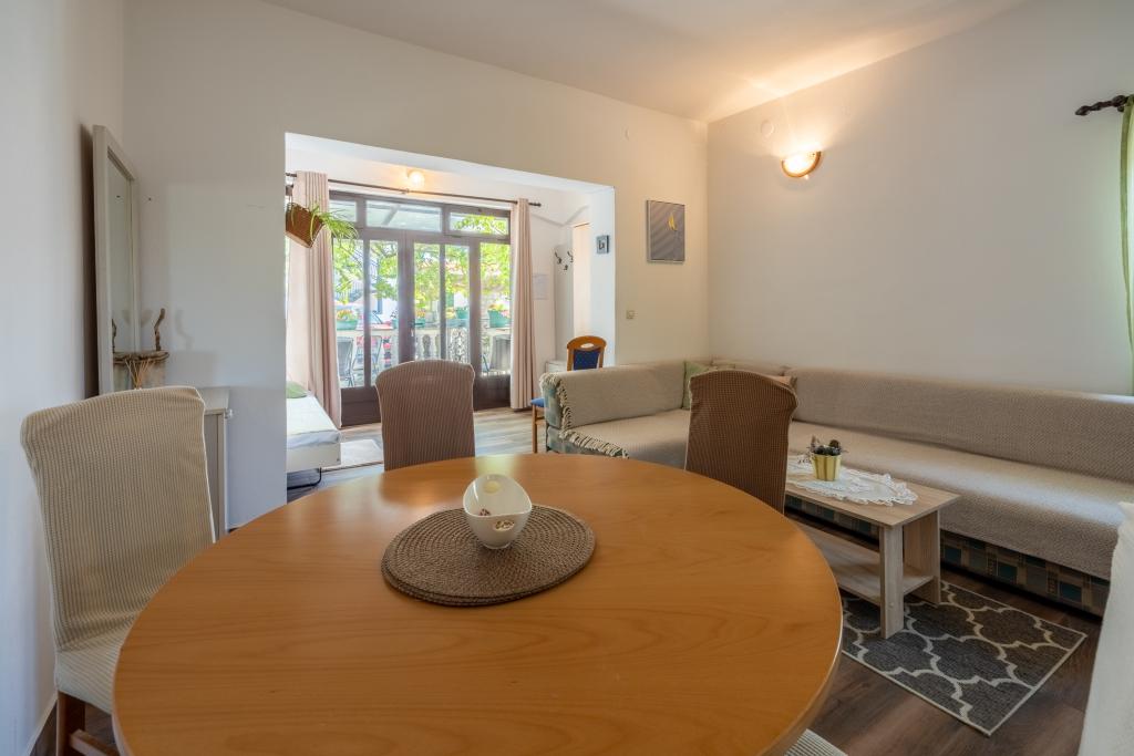 Apartament cu 2 balcoane, cu aer condiționat, într-o stradă retrasă liniștită, situat într-un mic sat de pescari Jadranovo. Apartamentul are o grădină, zonă de grătar, precum și Wi-Fi și parcare. Apartamentul are două balcoane sau terase, 1 dormitor, living, bucătărie și toaletă. Aveți o plimbare de 10 minute până la cea mai apropiată plajă și o plimbare de 15 minute de cealaltă. A doua plajă este accesibilă și cu mașina în 2 minute și aveți parcare gratuită chiar pe plajă.