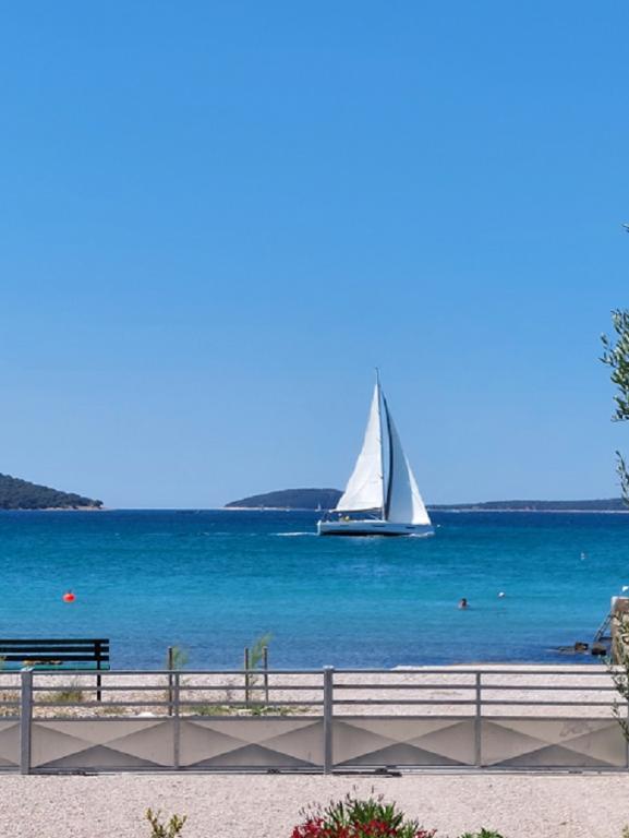 Apartament cu vederi frumoase la mare de pe terasă. Vila e doar un singur apartament și oferă pace și de liniște, condițiile de odihnă adevărat. Situat la capătul plajei, puțini oameni vă dau pace. Un apartament curat, bine echipate, proprietarii de foarte prietenoase. Pentru cei care doresc să exploreze, la 100 de km am Zadar, Split, Trogir și Sibenik cel mai apropiat de unde puteți merge în fiecare seară pentru cafea și vin. Pentru cei care doresc contact cu atmosfera stațiunii și un grup mai mare de turisti pub aproximativ 500 m. În continuare aici Sărbători vrem să-și petreacă.