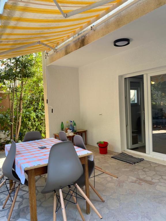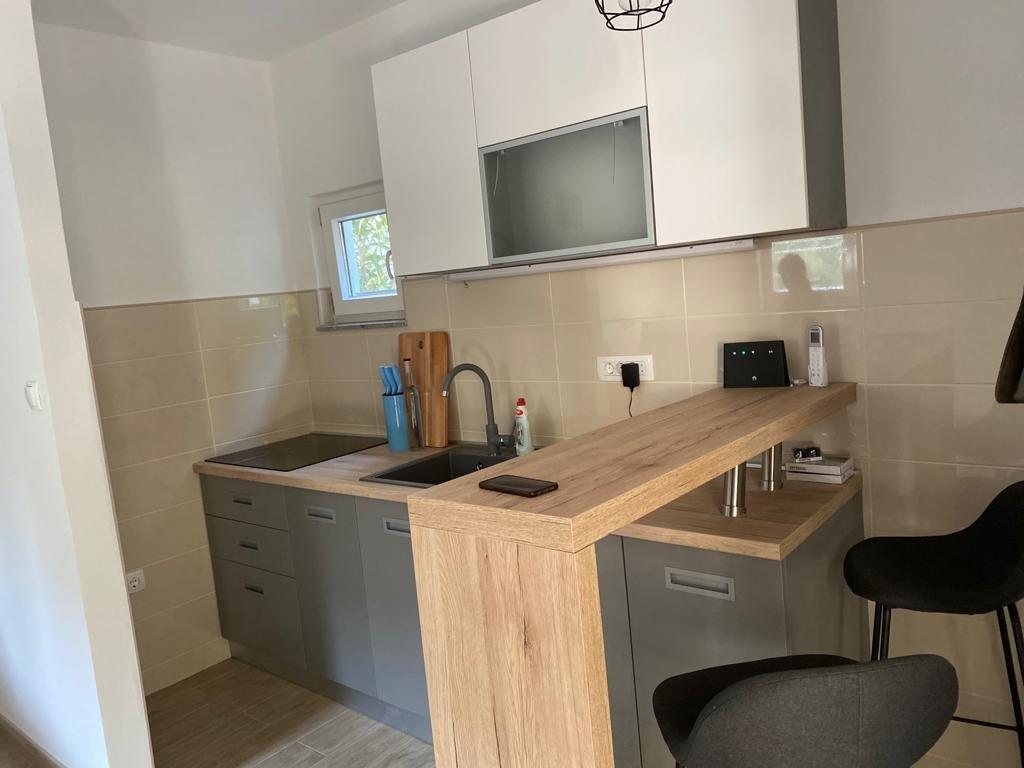 Descrierea apartamentului studio: - suprafața apartamentului 30 m2 + balcon cu vedere la mare + terasă 10m2 - pat dublu + un pat suplimentar - masă cu patru scaune și dulap - bucătărie (aragaz cu 2 arzătoare, frigider) - baie cu duș - TV - internet - aer condiționat - veselă pentru prepararea și servirea mâncării și băuturilor - tacâmuri în cantități corespunzătoare - lenjerie de pat și prosoape în baie incluse - distanță până la mare 15m. Descrierea apartamentului A3+1 - suprafața apartamentului 40 m2 + terasă 30m2 - cameră cu pat dublu - cameră cu pat single - bucătărie (plită cu inducție, mașină de spălat vase, frigider) cu living - baie cu duș și mașină de spălat rufe - TV - internet - aer condiționat - veselă pentru prepararea și servirea mâncării și băuturilor - tacâmuri în cantități corespunzătoare - lenjerie de pat și prosoape în baie incluse - distanță până la mare 15m.