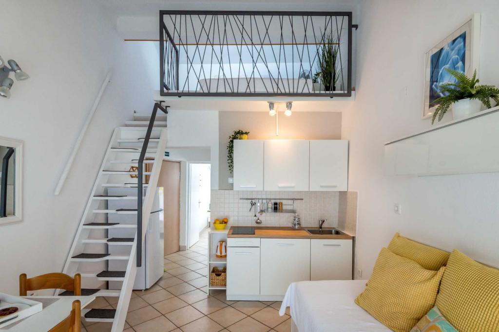 Casa este situată în Jadrija, într-un sat liniștit de weekend lângă Šibenik, înconjurat de o mare limpede, cu vedere la cele două insule frumoase Zlarin și Prvić, un loc perfect pentru o vacanță relaxantă în familie, departe de aglomerație. În timpul verii, Jadrija este conectată la Šibenik cu barca prin Canalul Sfântul Anton, ceea ce vă permite să aveți o excursie plăcută și unică în oraș, fără a vă face griji cu privire la parcare. Casa este situată la doar 300 m de mare și de plaja bine întreținută, care se află la o plimbare plată și plăcută de 5 minute. Sunt disponibile trei apartamente complet echipate, fiecare cu aer condiționat, internet Wi-Fi și TV prin satelit. Două apartamente de la primul etaj au balcon cu vedere parțială la mare, perfect pentru cafeaua de dimineață sau relaxarea de seară. Apartamentul de la parter (notă: înălțimea tavanului 2 metri) are acces la o grădină mediteraneană spațioasă, cu grătar și duș exterior, ceea ce îl face ideal pentru viața în aer liber și întâlniri de vară. Parcarea pentru toate cele trei apartamente este asigurată în fața casei. . locație liniștită . aproape de plajă . parcare privată . ideal pentru familii