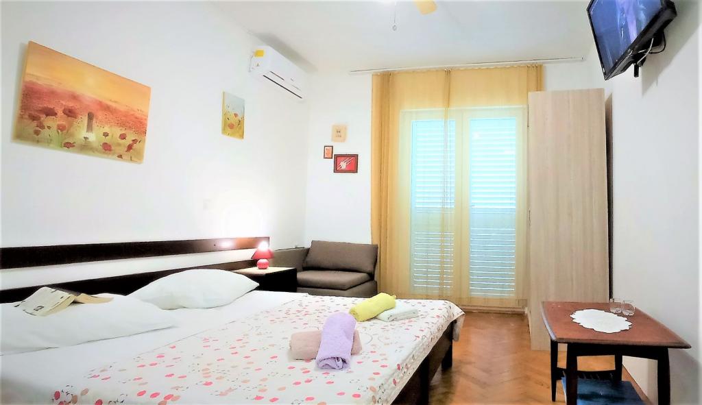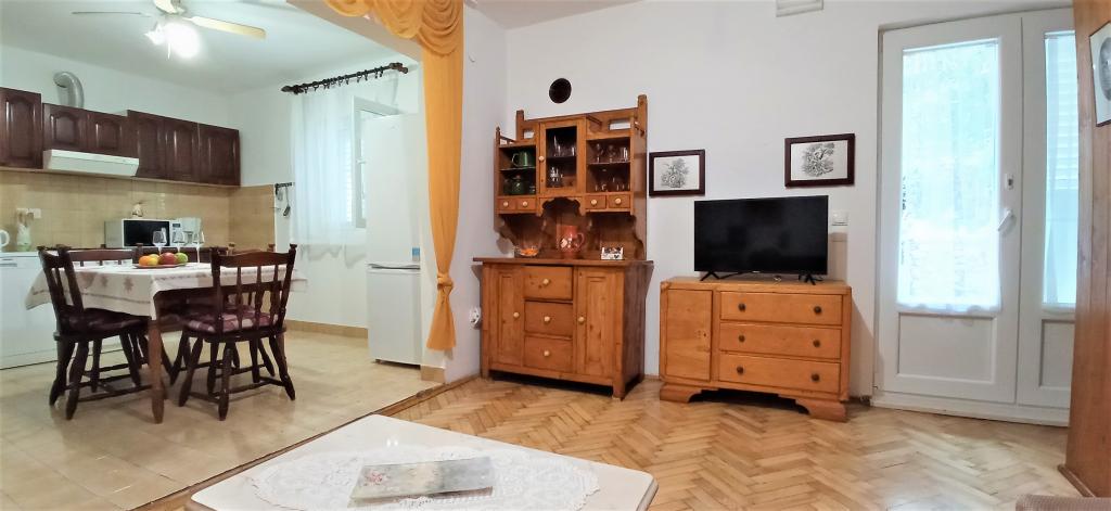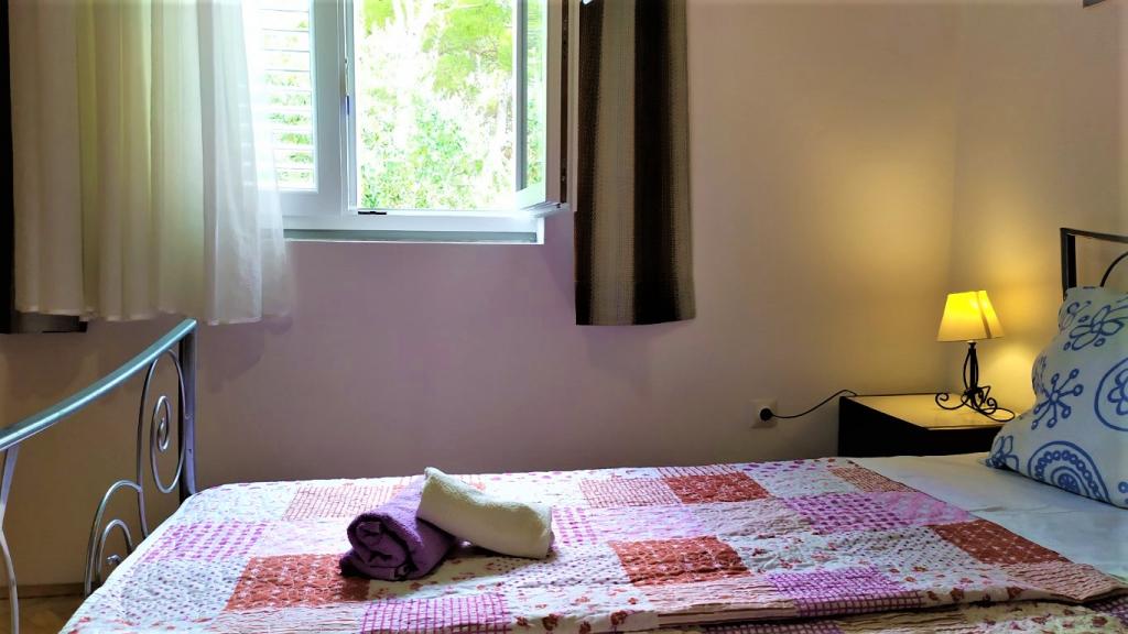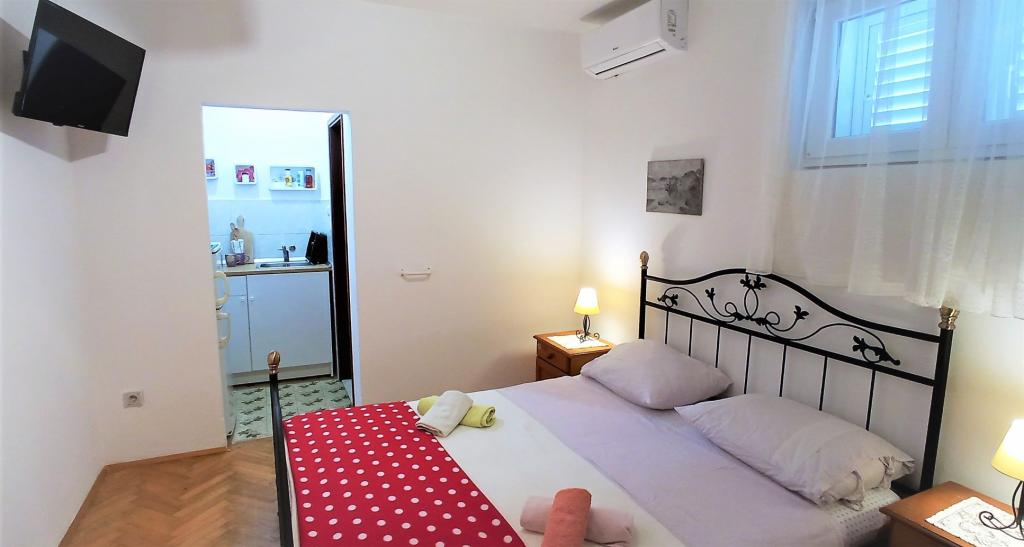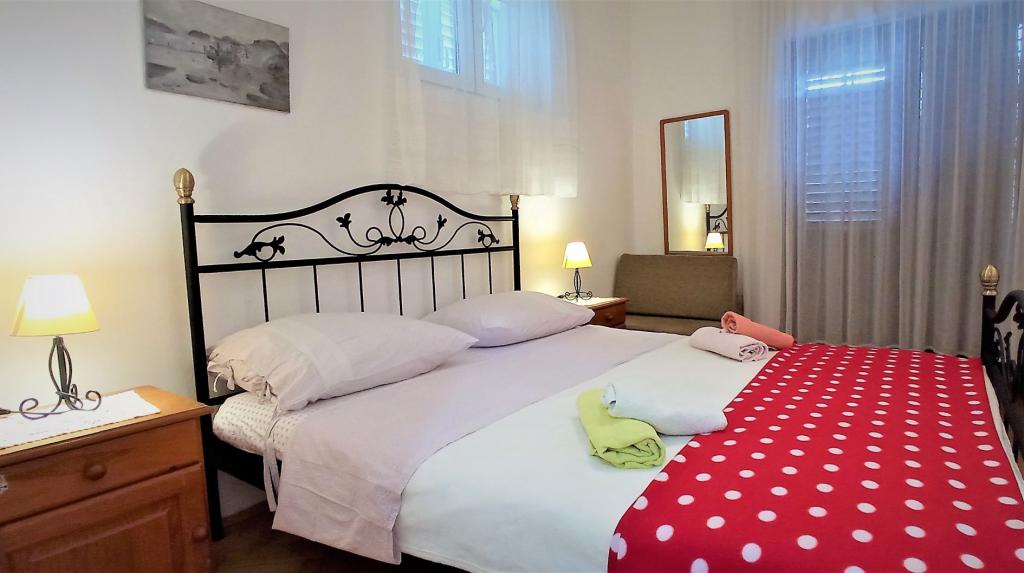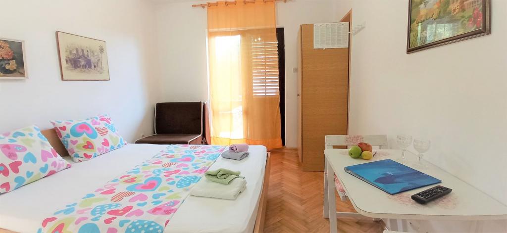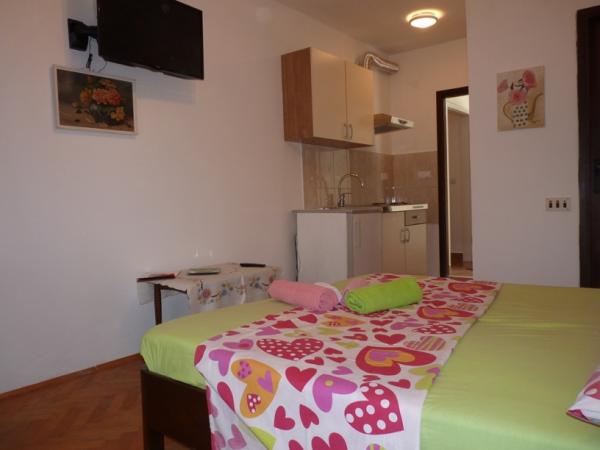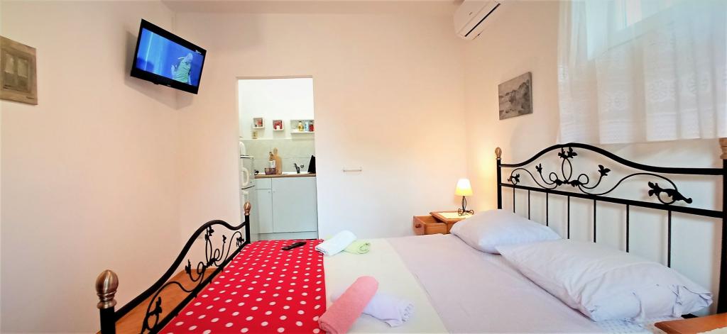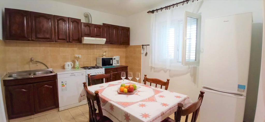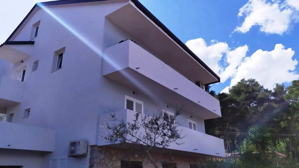 Casa este situată într-o zonă liniștită din Jelsa lângă o pădure de pini și la mare. Mare este de aproximativ 70 m, iar mai multe plaje este la doar câteva minute de acasă. In casa noastra va oferim: 3 apartamente studio. Fiecare apartament are un dormitor, baie și bucătărie, precum și o masă și scaune în fața apartamentului, lângă grădina. Un apartament de studio are o terasă mare. 2 camere. Fiecare are propria sa, WC, bucătărie și balcon cu masă și scaune și o vedere la mare. De asemenea, este posibil de a închiria ambele camere ca un apartament pentru o intrare comună, care este separat de celelalte apartamente. Apartament cu 1 dormitor cu un living, bucatarie, sala de mese, balcon cu vedere la mare și o terasă cu masă și scaune în fața apartamentului. In camera cu balcon și pat suplimentar, o canapea în camera de zi poate fi transformat într-un pat pentru două persoane.