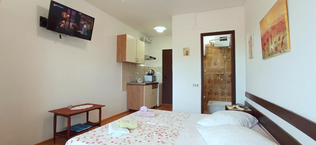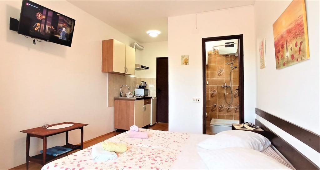 Locație perfectă cu o mulțime de plaje mici la distanță de mers pe jos. 2 camere sunt foarte frumos echipate - standard hotel. Fiecare cameră are TV cu canale mari, baie, balcon și fiecare cameră are chicinetă proprie !!!! Grădini mici în jurul casei, pini, grătar. Nu departe de casă puteți găsi baruri și restaurante. La 5 minute de casă puteți închiria biciclete și barcă. Există, de asemenea, excursii cu barca la insulele din apropiere. Excelent!