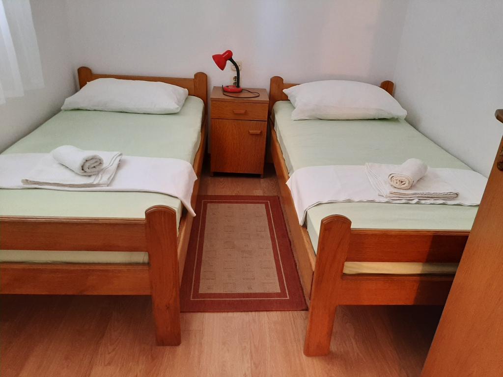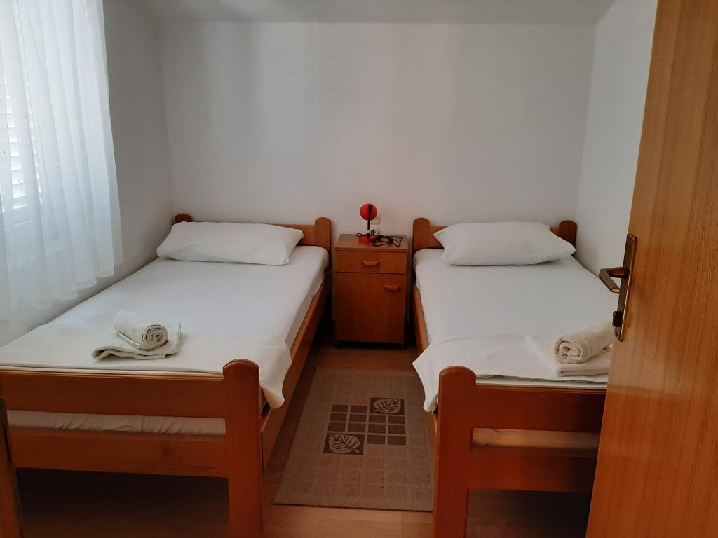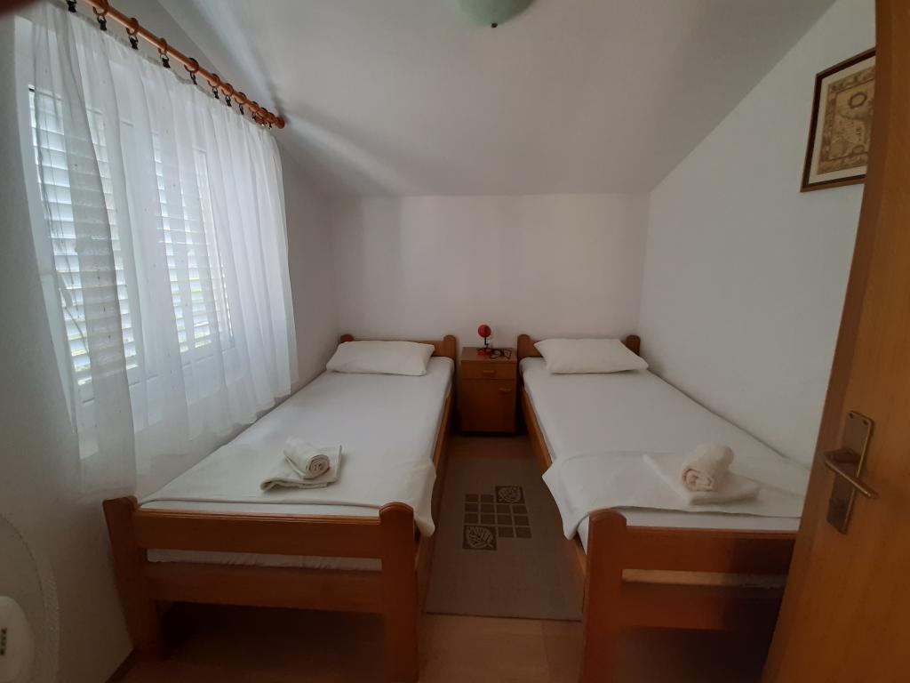 Apartamentele Cvrčak constau din două garsoniere la primul și al doilea etaj. Ambele au aceeași distribuție a camerei și sunt formate din două dormitoare, dintre care unul are un pat dublu, o bucătărie conectată la living și o baie. Intr-o camera se intra de la parter. sufragerie, iar în al doilea de pe scară. Ambele camere de zi se deschid spre terase spațioase cu vedere la mare, oraș și port. In spatele casei se afla o terasa cu gratar disponibil pentru oaspeti. În apropierea apartamentului, există o plajă cu facilități pentru copii, la 3 minute de mers pe jos, un magazin la 10 minute de mers pe jos, în timp ce ACI Marina Jezera și o școală de navigație sunt la 1 minut de mers pe jos. În apropiere sunt mai multe plaje cu pietriș și beton, iar insula are și faimoasa plajă de nisip Slănica. La 10 minute de mers pe jos se află o frumoasă promenadă care leagă Jezera și Tisno, recomandată pentru mers pe jos sau cu bicicleta. În apropierea apartamentului se află parcurile naționale Kornati și Krka. Recomandare de cazare pentru participanții la școala de navigație. Apartamentele sunt complet utilate, iar parcarea este asigurata in fata blocului.