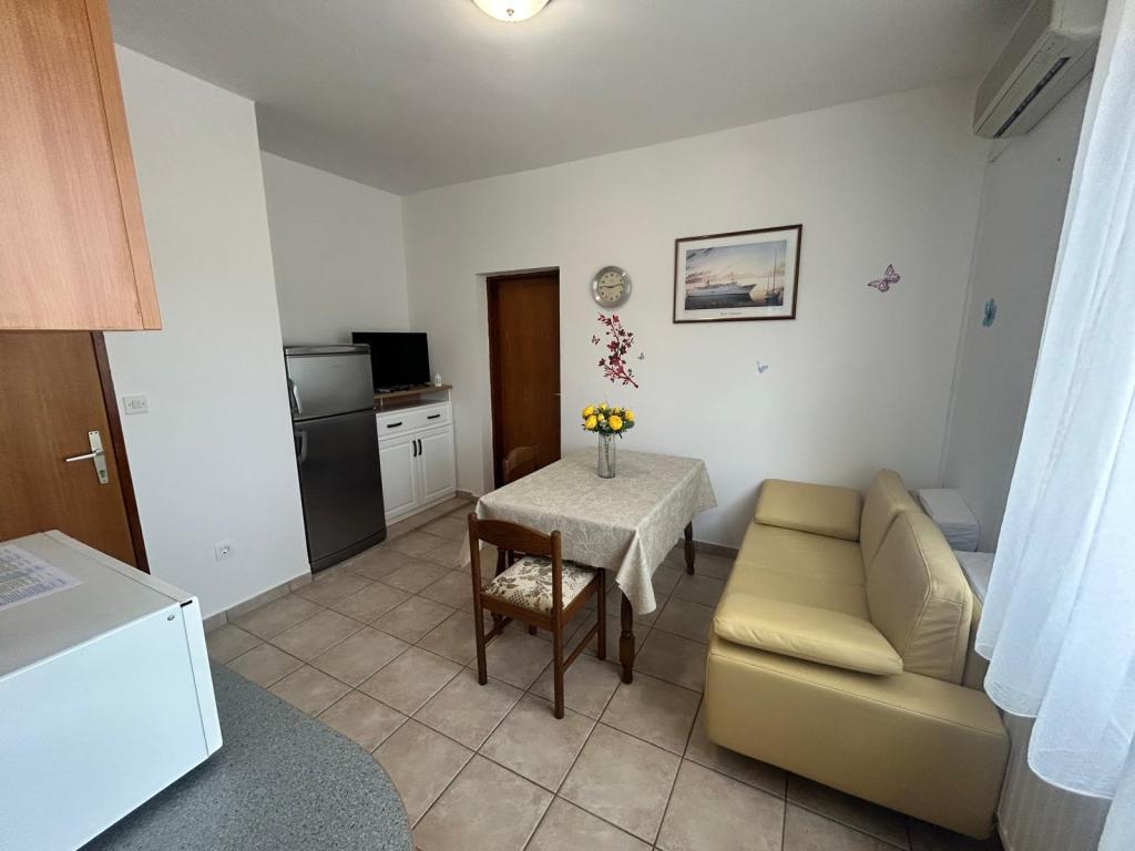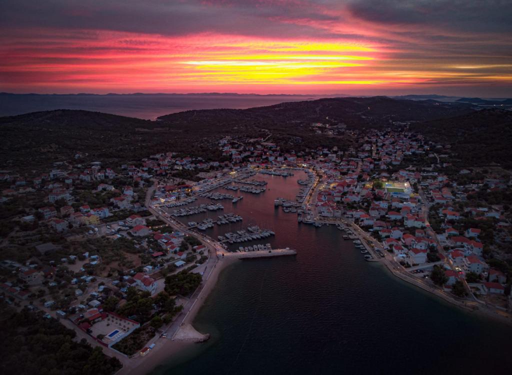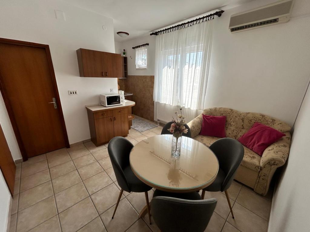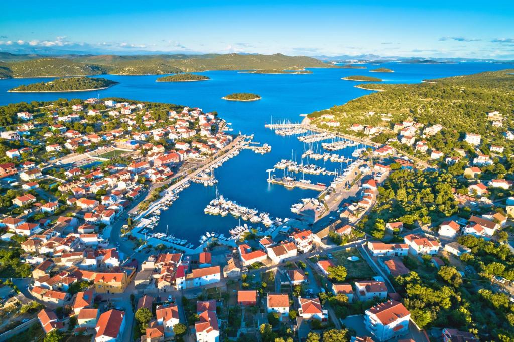 Apartament mobilat în localitatea liniștită Jezera, insula Murter. Plaja frumos decorată, la doar 400 de metri. Complexul este situat la 200 de metri de centrul satului. Facilitatea este o casa decomandata cu doua apartamente la primul etaj, si dispune de o terasa mare cu gratar. Există, de asemenea, o grădină cu flori plantate, o masă și mobilier de grădină pentru relaxare. Imobilul dispune de bucatarie, living (TV, canapea extensibila pentru o persoana), baie si dormitor. Bucătăria este dotată cu electrocasnice de bază (cuptor cu microunde, filtru de cafea, ceainic...). Parcare privată securizată!