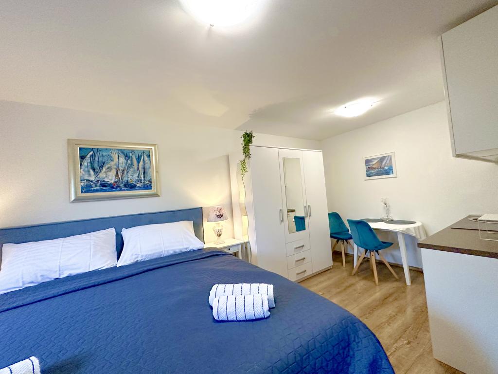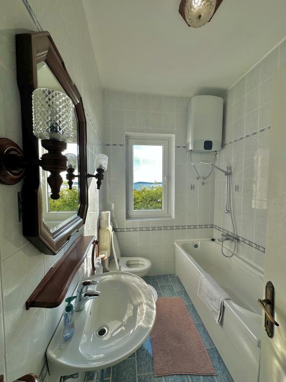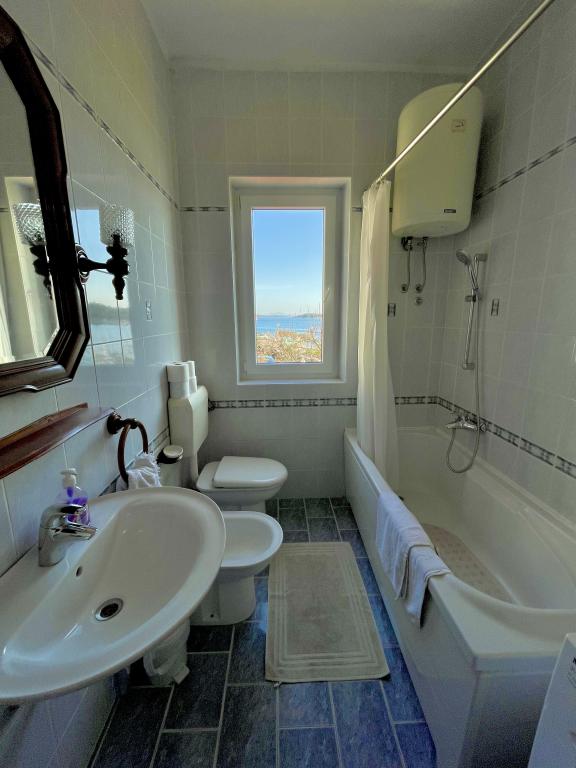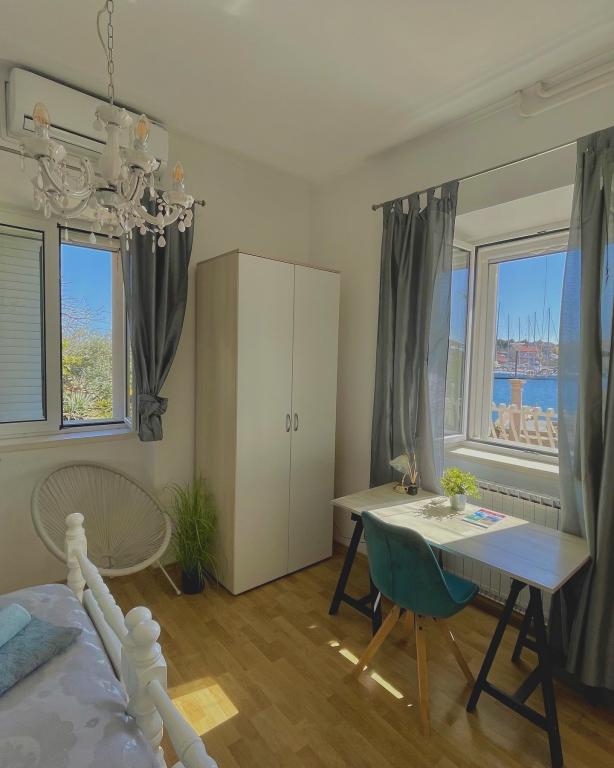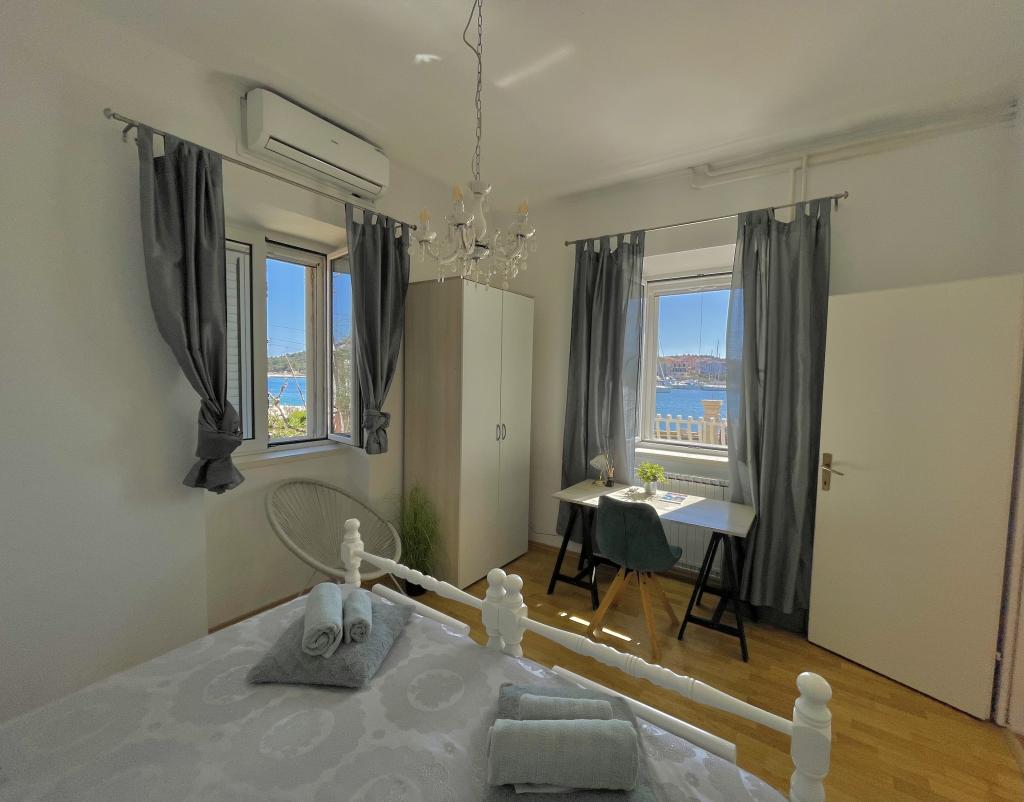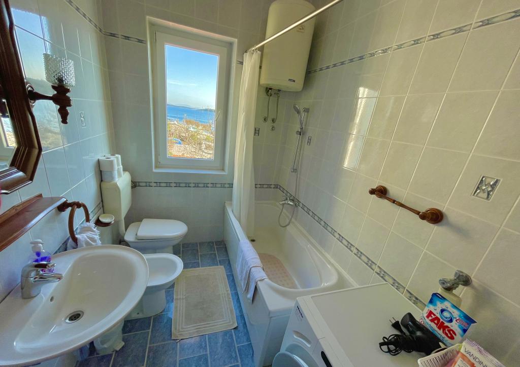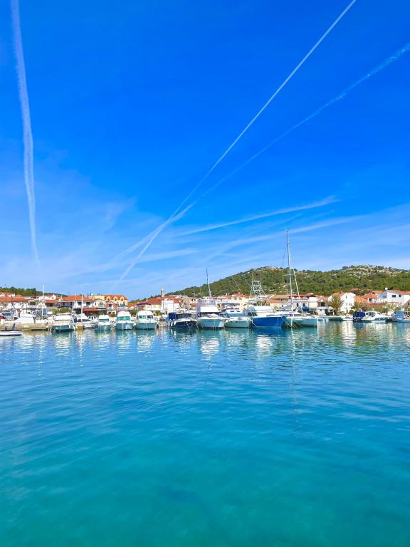 Bucurați-vă de o priveliște frumoasă la mare, vreme bună și apusuri magice într-un apartament situat la doar câțiva metri de mare, într-o casă situată excelent. Un loc pentru a vedea, a mirosi și a simți Dalmația. Apartamentele sunt situate direct pe mare, iar cea mai apropiată plajă este la doar 100 de metri. Va oferim dana pentru barca si parcare gratuita.