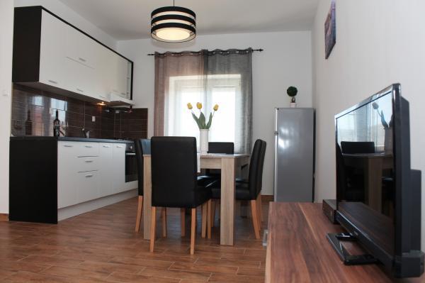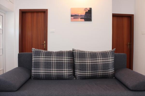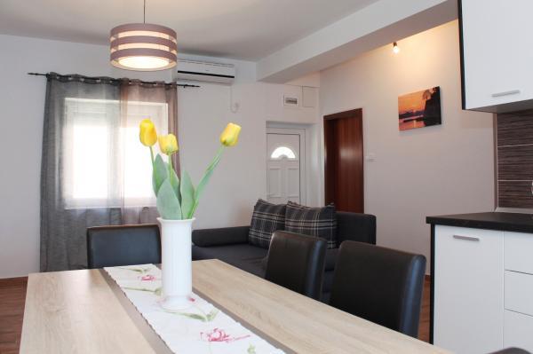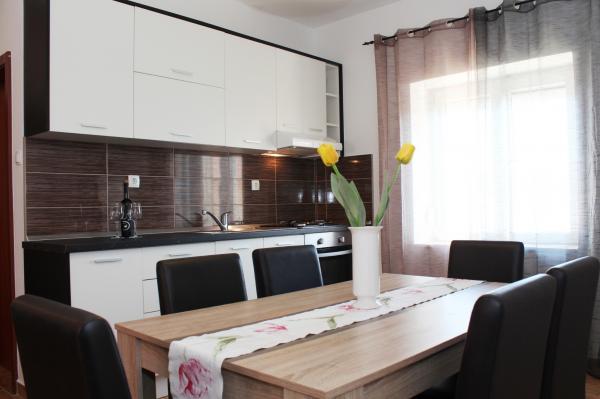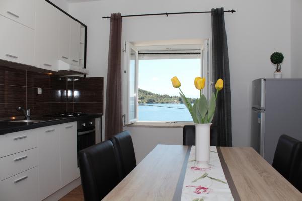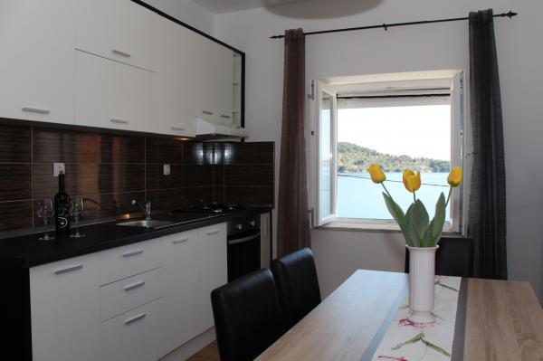 Apartament complet utilat în satul liniștit Kali, situat în primul rând la mare și la 15 minute de mers pe jos de orașul Preko. Există un port de feribot în Preko și puteți ajunge la portul Gaženica cu feribotul în 25 de minute și cu linia de barcă rapidă (aproximativ 15 minute) până în centrul orașului vechi. Interiorul apartamentului (sufragerie, 2 dormitoare și baie) are o suprafață de 50 m2 și dispune suplimentar de 2 balcoane. Balconul principal are 25 m² și oferă vedere la mare. Balconul mai mic are o suprafață de 11 m². Fiecare cameră are propriul aer condiționat. Există un grătar și un loc de parcare sub apartament.