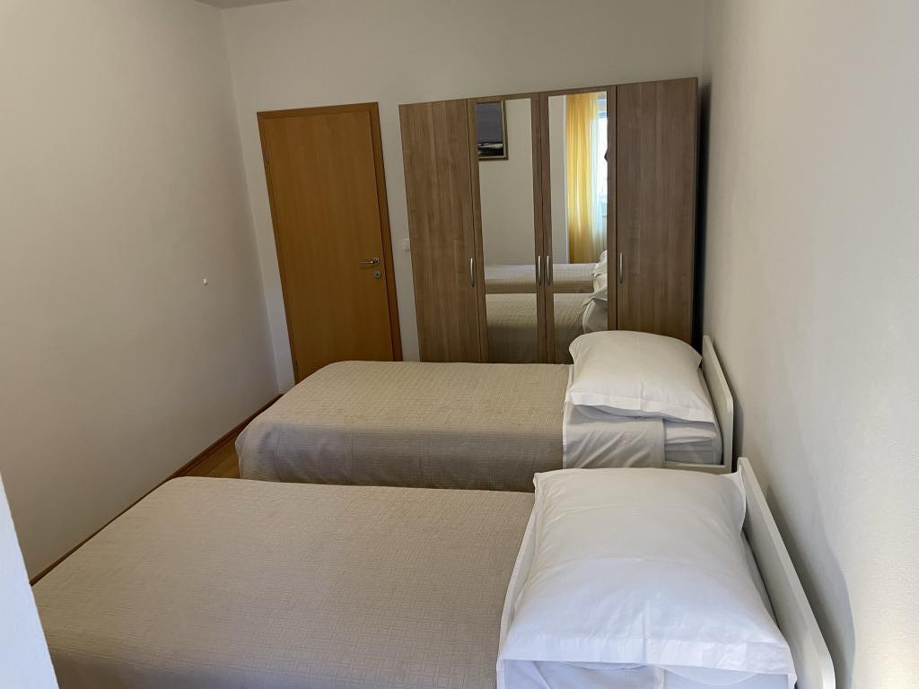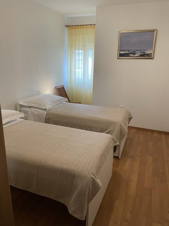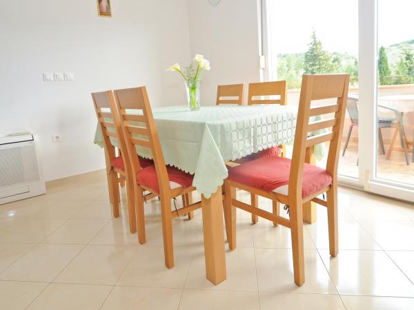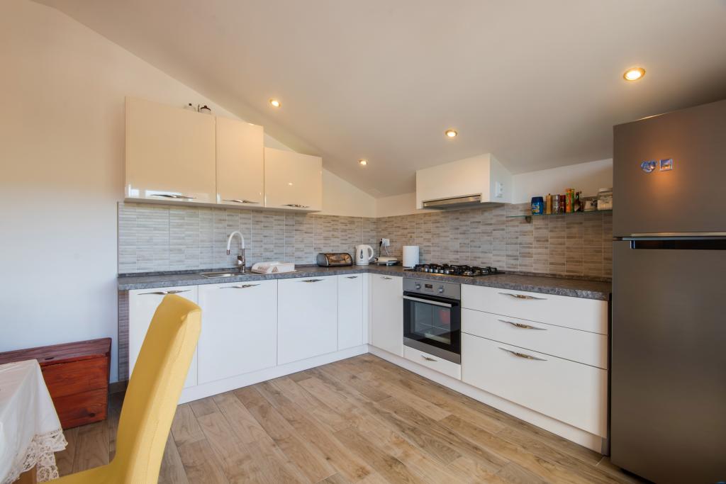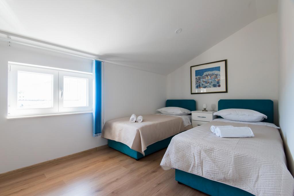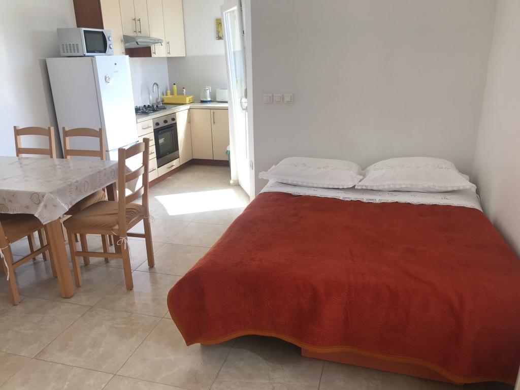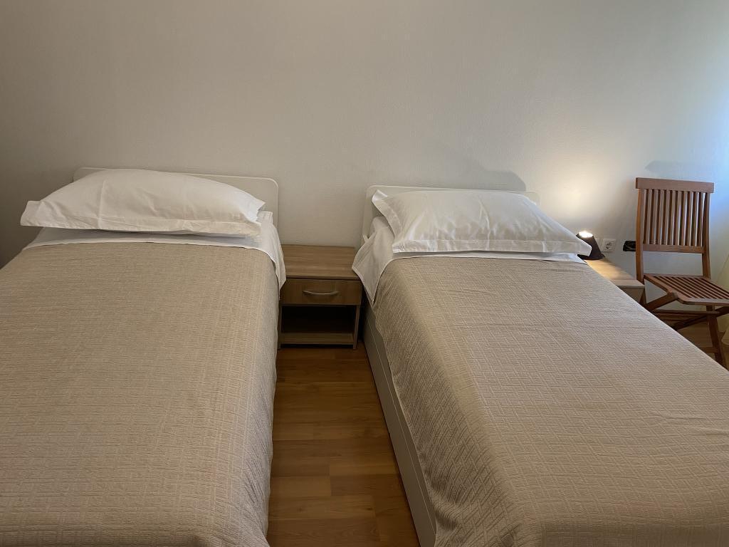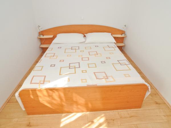 Apartamentele sunt la primul etaj al casei, care se află în Lamjana golf într-un cadru liniștit de la mare, modern si complet mobilat. Apartament 2 are un dormitor cu un pat dublu și o canapea extensibilă mare în bucătărie cu iesire la balcon, în cazul în care mobila, baie cu duș. Casă de vacanță 1 are doua dormitoare si un pat suplimentar în bucătărie, baie cu cabină de duș, pe balconul de mobilier. Centrul orașului este de aproximativ 900 m. In curte este un gratar, care este la dispoziția oaspeților noștri.