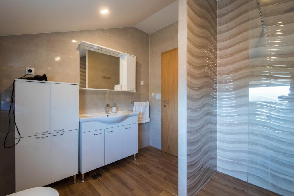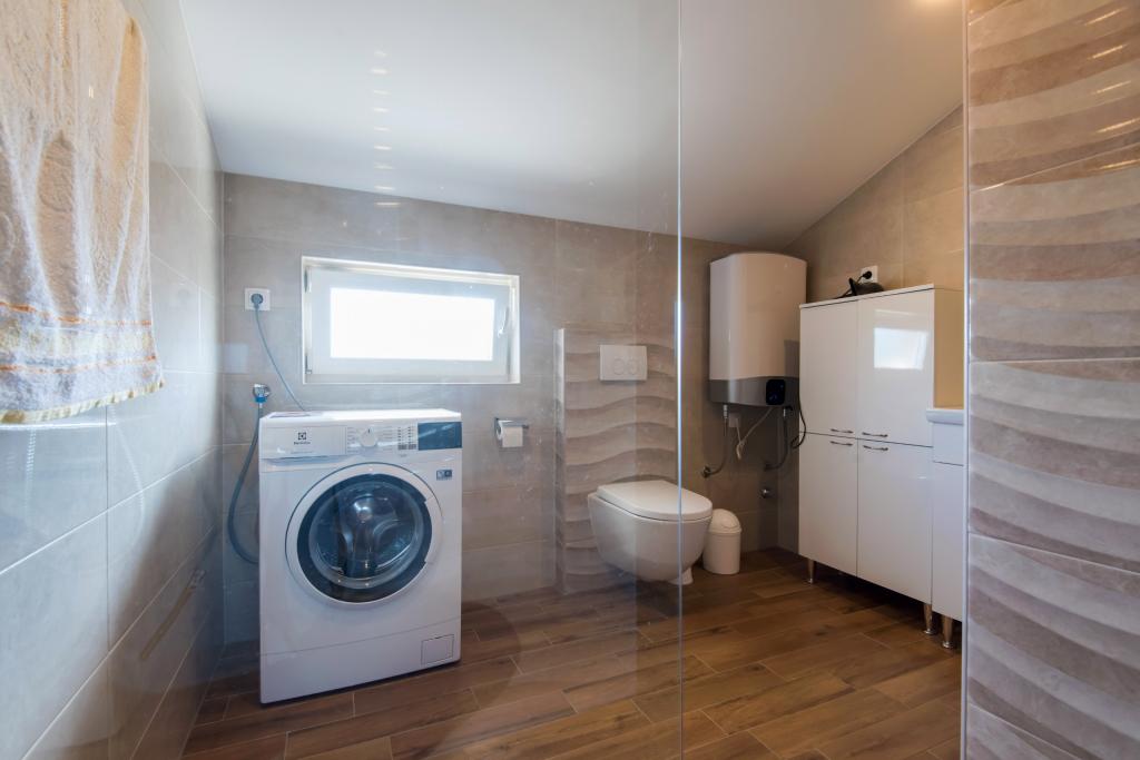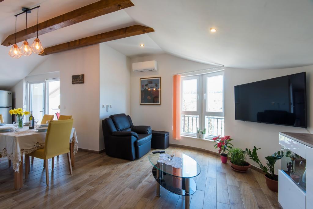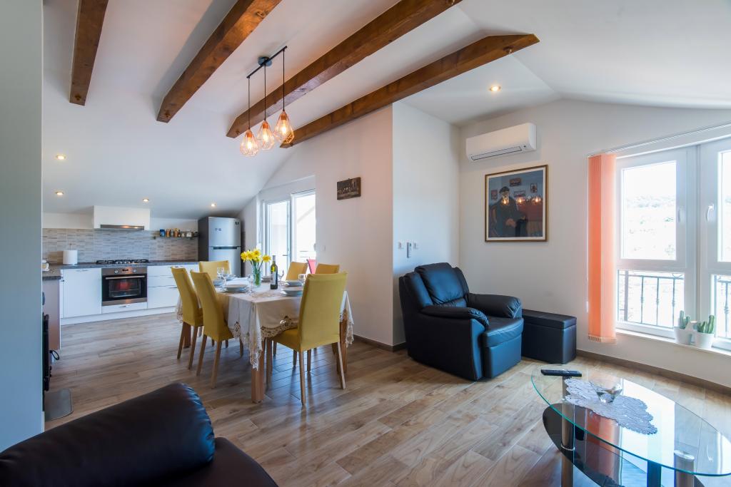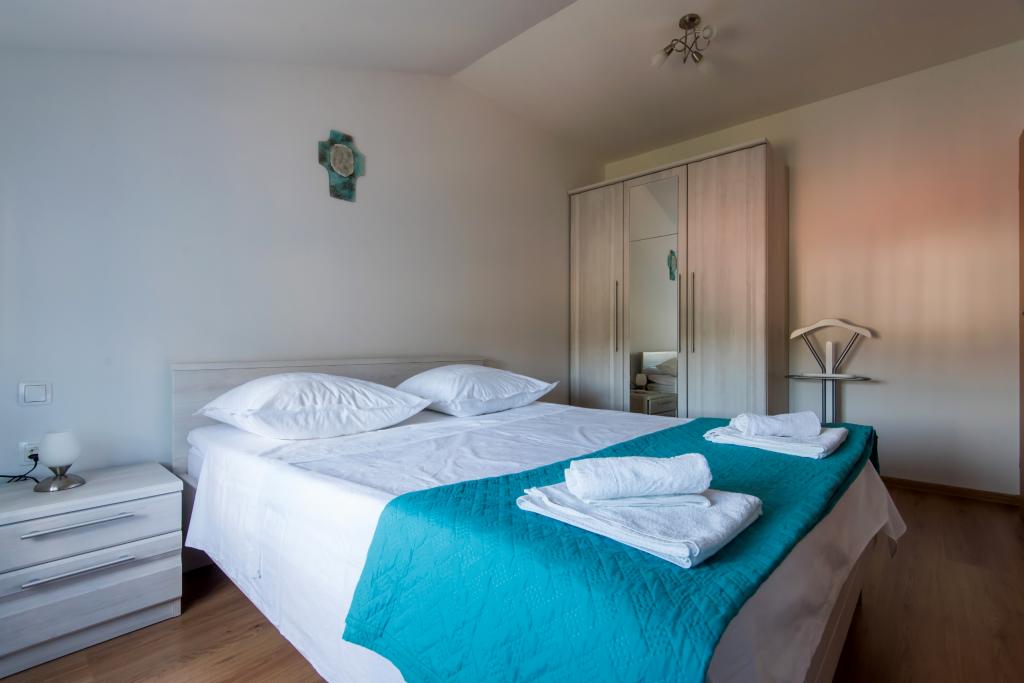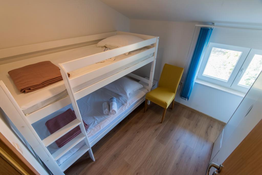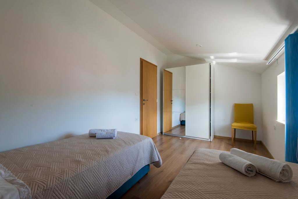 Apartamentele sunt la primul etaj al casei, care se află în Lamjana golf într-un cadru liniștit de la mare, modern si complet mobilat. Apartament 2 are un dormitor cu un pat dublu și o canapea extensibilă mare în bucătărie cu iesire la balcon, în cazul în care mobila, baie cu duș. Casă de vacanță 1 are doua dormitoare si un pat suplimentar în bucătărie, baie cu cabină de duș, pe balconul de mobilier. Centrul orașului este de aproximativ 900 m. In curte este un gratar, care este la dispoziția oaspeților noștri.