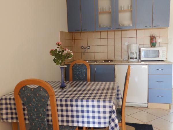Apartamentele sunt situate în micul liniștit Barbat, sat de pescuit de pe insula, situat la 100 m de mare, cu o vedere frumoasă a golfului Veli Mel. Imobilul este de patru locuri Kampor 150 m și la 5 km de orașul vechi Rab. Apartamentele sunt complet echipate, mobilate modern pentru o ședere plăcută. Teren cladirii este decorat cu o mulțime de verdeață și grădini, ceea ce face facilitatea deosebit de atractiv. Oaspeții pot folosi grătar de grădină și parc pentru copii.