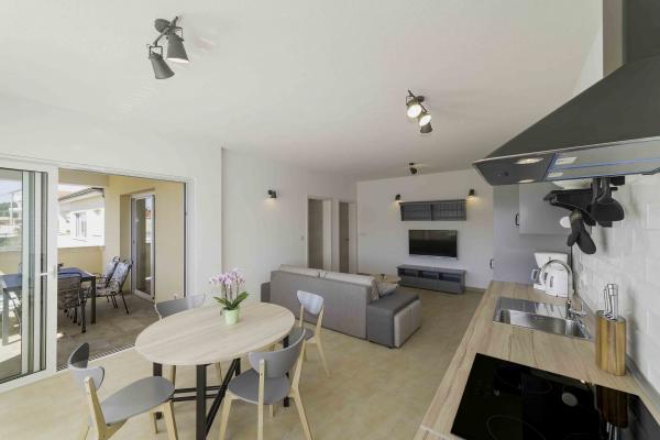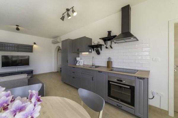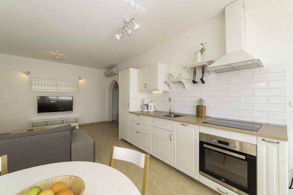 Apartamente cu vedere la mare cu posibilitatea de a folosi un grătar. O opțiune este o acostare a unei bărci cu motor în apropiere. Închirieri de bărci cu motor sunt, de asemenea, disponibile în apropiere (necesită o licență pentru a opera o ambarcațiune). Parcare disponibila langa apartament. Distanța de la mare este de 100 m în zbor, sau 300 m pe jos sau cu mașina. 6 minute pe jos. Un loc de joaca pentru copii cu plaja este si el la 300 m de casa. La mai puțin de 1 km există restaurante, o piață, cafenele și o bază de scufundări. Închirierea de biciclete se poate aranja la serviciul local - magazin de biciclete, iar locația apartamentului este potrivită pentru cei cărora le place să se plimbe sau să alerge în natură.
