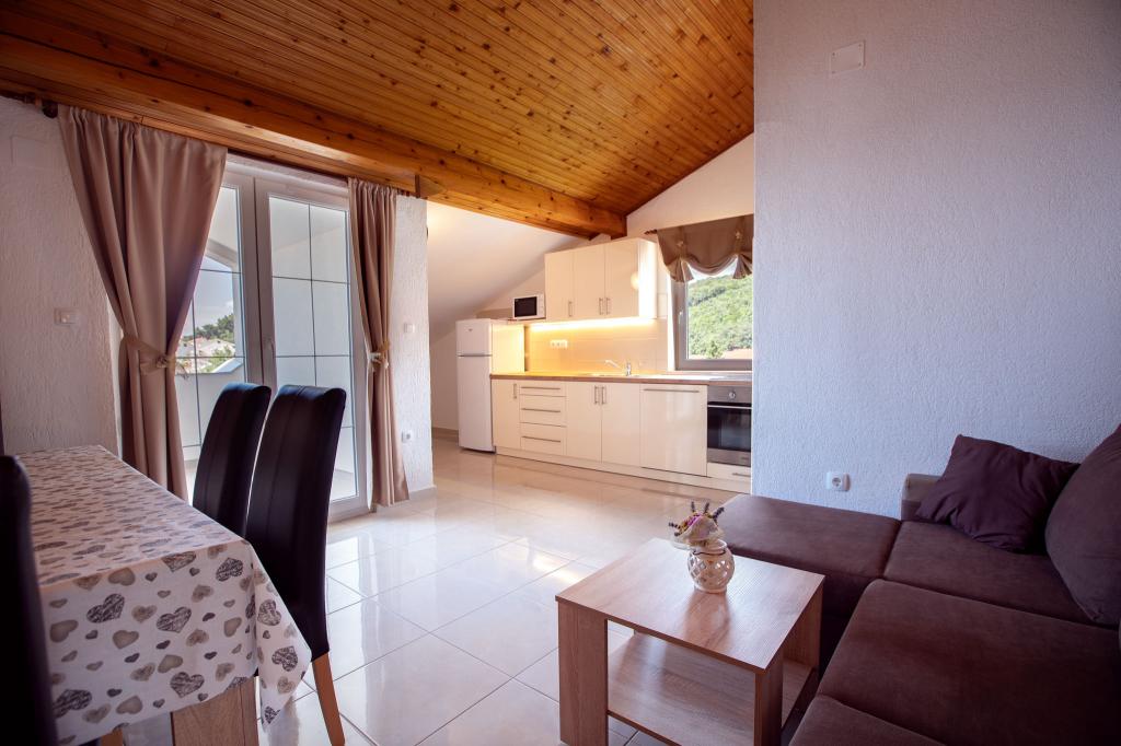 Apartamentele sunt situate într-o casă de familie, la 50 de metri de mare în Kampor - cel mai bine păstrat sat de pescuit din insulă. Există numeroase plaje frumoase în apropiere (recomandarea noastră este Mel Beach din cauza nisipului fin și a apusurilor de soare frumoase situate la 500 m) și a traseelor pentru drumeții și biciclete. Kampor este o combinație între tradiție și modernitate, mâncare ecologică și restaurante rustice.