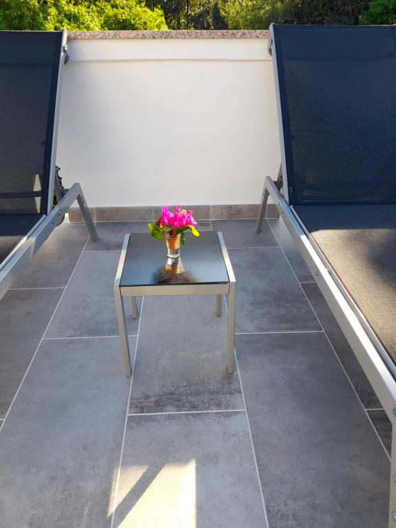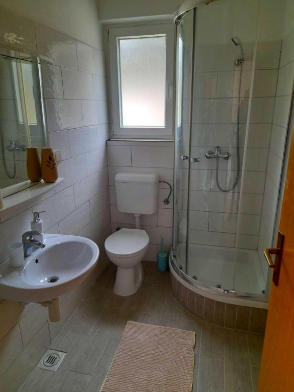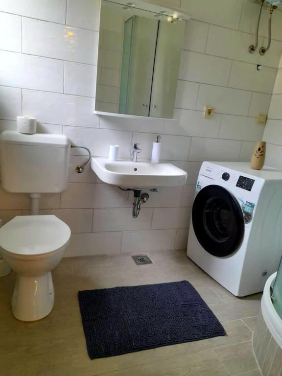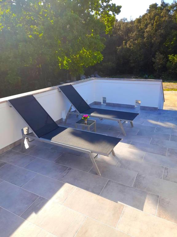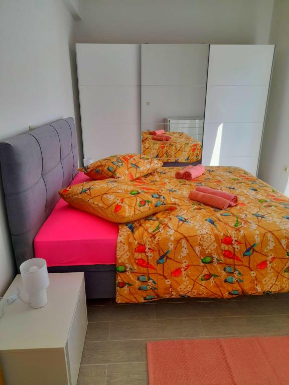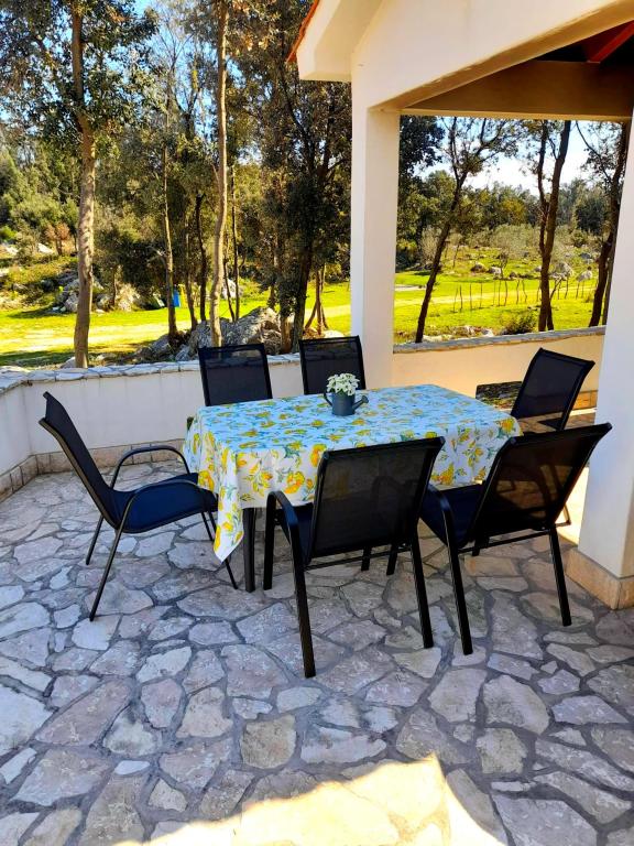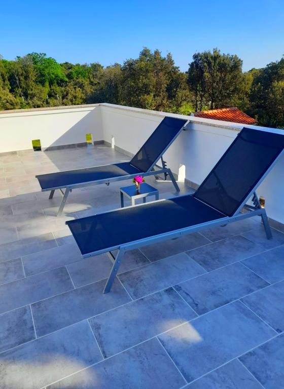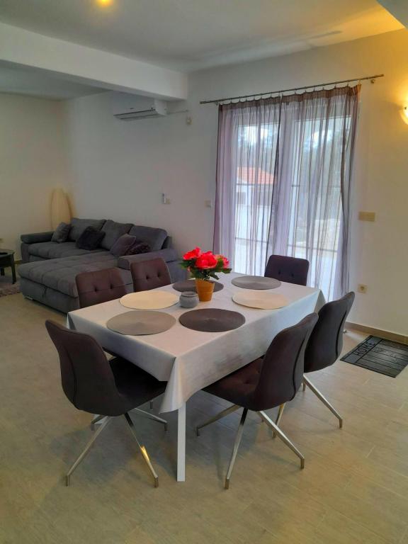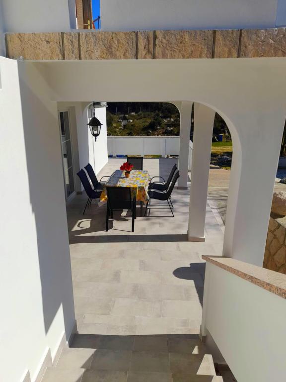 Acest apartament este situat într-o zonă de pădure și în imediata apropiere a plajei și a mării. Este o locație ideală pentru a petrece o vacanță relaxantă în pace și liniște. Apartamentul A4+2 (pana la 6 persoane) este situat la primul etaj și are o suprafață de aproximativ 100 m² și este format din următoarele camere: o bucătărie complet utilată, cu un living cu aer condiționat, un televizor cu ecran plat cu programe prin satelit și o canapea extensibilă pentru două persoane. (unde pot dormi 2 persoane), 2 dormitoare cu paturi duble (latime 1,80 m) si 2 bai cu dus. Apartamentul dispune de balcon, terasa la intrare, terasa pe acoperis, gratar propriu si parcare. Cea mai apropiată plajă se află la aproximativ 700 de metri și se poate ajunge pe jos pentru doar 10 minute (cea mai rapidă este o scurtătură în pădure).