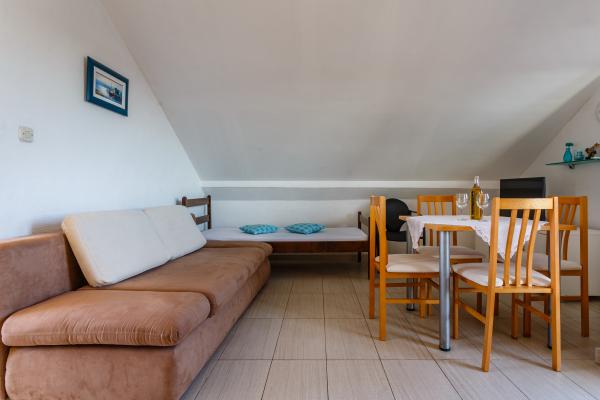 Gazdele sunt extrem de prietenos și de ajutor. Toate descrierile și imaginile sunt corecte; Am fost foarte surprins, pentru că a fost trăi mai bine și mai frumos decât era de așteptat. Apartament mediu și sunt curat și ordonat, foarte bine întreținute. Apartamentul are 2 terase: mai mici este disponibil de dormitoare și vedere la stradă și o vedere puțin din largul mării; A doua terasa este accesibil din sala de mese și are o vedere frumoasă a golfului. Plaja principală este foarte aproape de intrarea este potrivit pentru copii mici și nu au într-adevăr aceeași culoare ca și imaginile. Centrul golfului este nisipos. În imediata apropiere a numelui mai multor alte plaje, nu am încercat. În golful puteți închiria o barcă cu zbaturi și caiac pe mare sunt plasate trambulină și tobogan pentru inflație. De-a lungul plajei există un restaurant și un bistro cu prețuri accesibile, Magazine în Kanica acolo, dar în fiecare dimineață vine dube, în cazul în care puteți cumpăra de bază (pâine, chifle, lapte, etc.). Preturile sunt ok ..