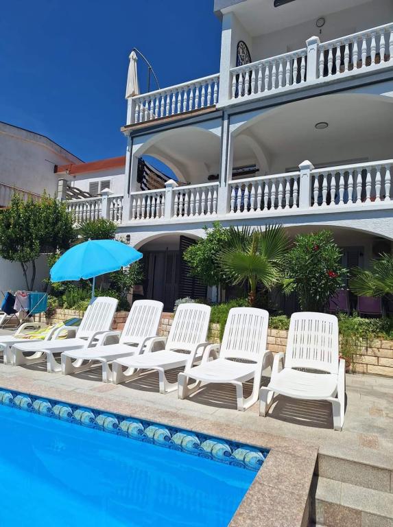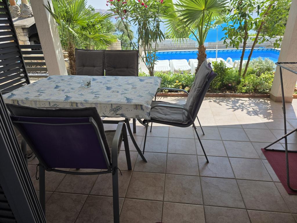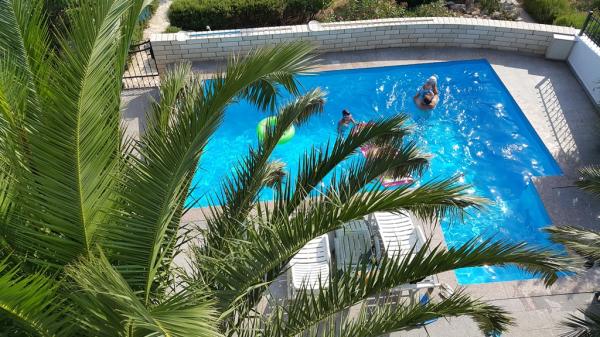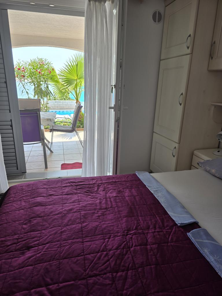 Apartamente foarte frumoase, curate și frumos mobilate, piscină convenabilă, astfel încât copiii se pot distra chiar și în timp ce adulții gătesc, mai ales dacă stați la parter. Marea cu greu putea fi mai aproape, ceea ce este cu adevărat minunat, și foarte curată, fără alge și meduze. Proprietar prietenos și corect. Recomand.